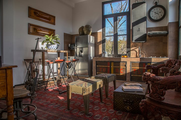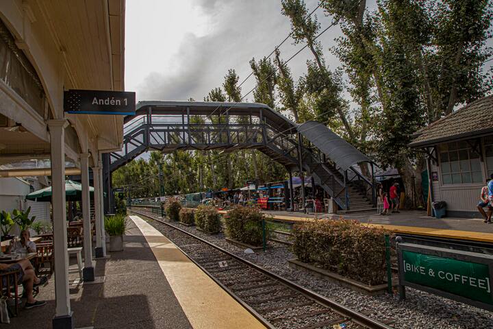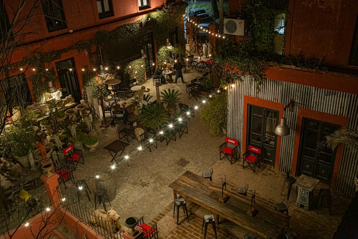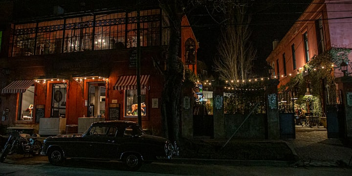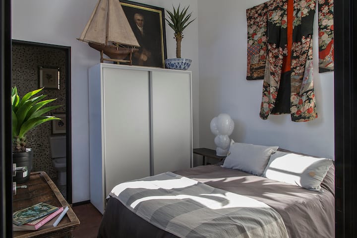 Apartment in a historic house over 120 years in Acassuso. Two rooms overlooking the street and the central courtyard, with a private entrance. Decor features items from the owner’s personal collection, including modern art, classic cars and motorcycles, and antique pieces.