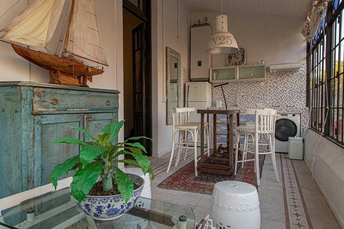 Apartment in a historic house in Acassuso. The unit has two and a half rooms with street-facing windows and a private entrance. The interior is decorated with part of the owner’s personal collection; the property is described as more than 120 years old and set 2,000 metres from an antiques setting.