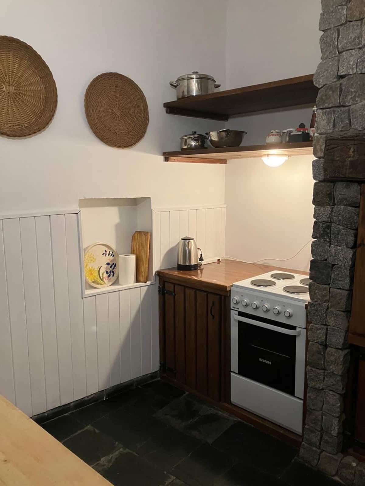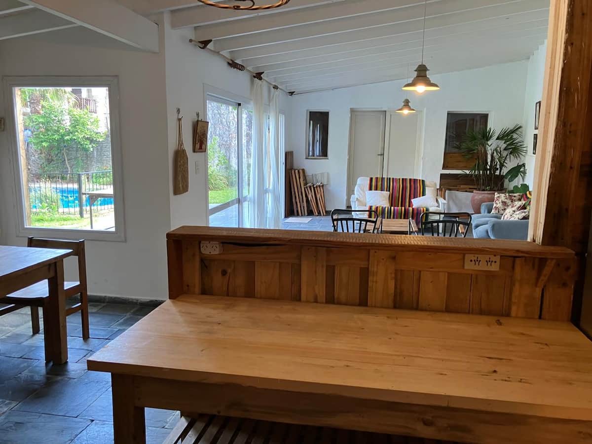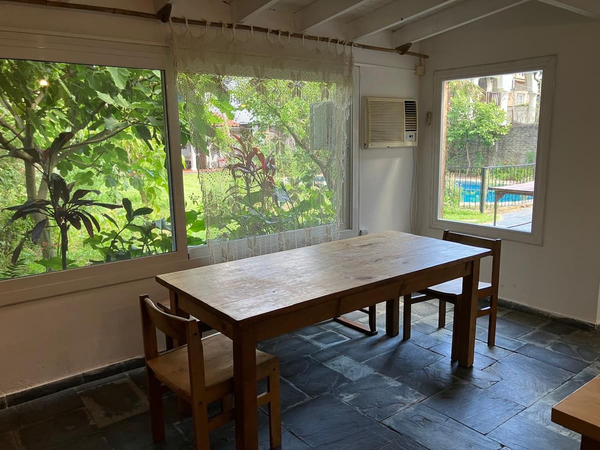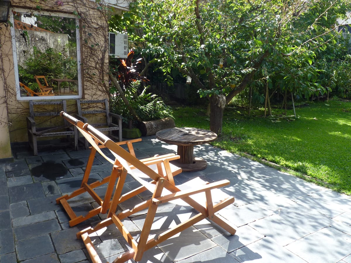 Apartment with 1 bedroom, located at the ground end of the house with a private entrance. Access includes a shared quincho with a microwave, electric hornito, refrigerator, electric stove and an electric griddle, and there is a pool for use on hot days. The property also has a garden with several fruit trees, and availability of fruit and vegetables varies by season.