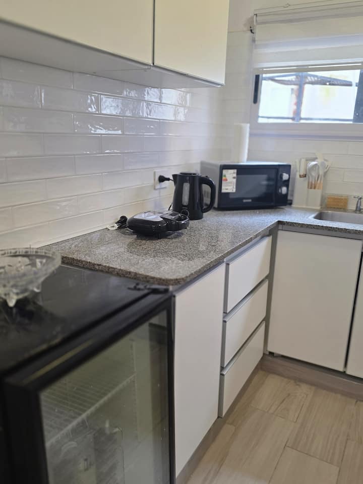 Studio apartment in Agronomía. The unit is described as quiet and suitable for home office use. It is within walking distance of bars and restaurants.