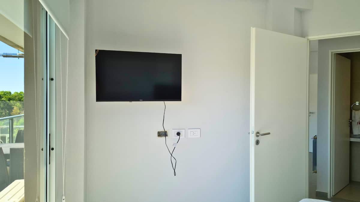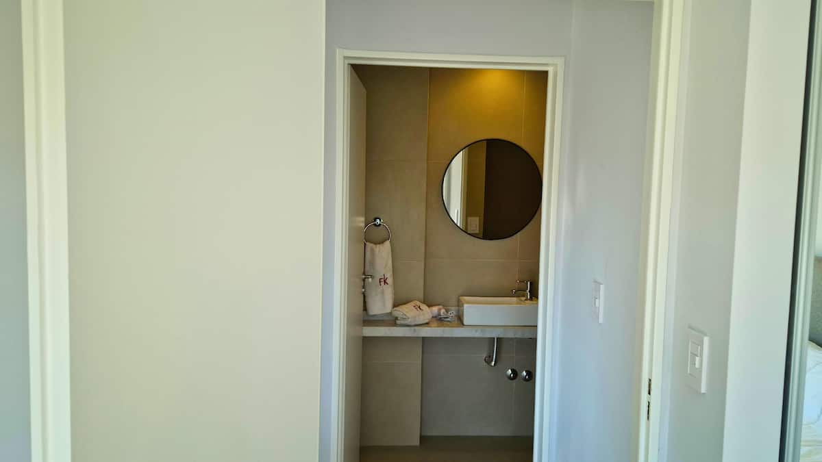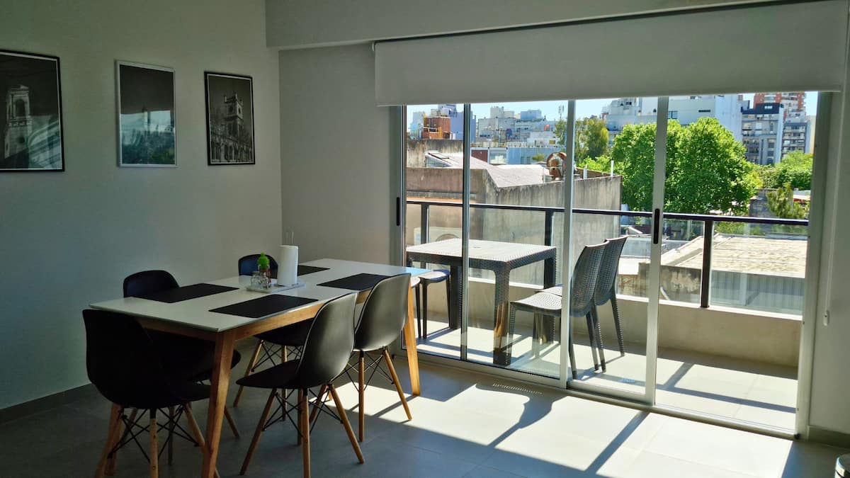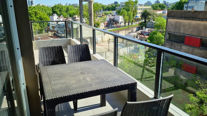 Two-room apartment in Agronomía with a balcony. The bedroom has a queen-size bed, and the living room has a double sofa bed for two other people. Includes a washing machine, full kitchen, smart TV and air conditioning.