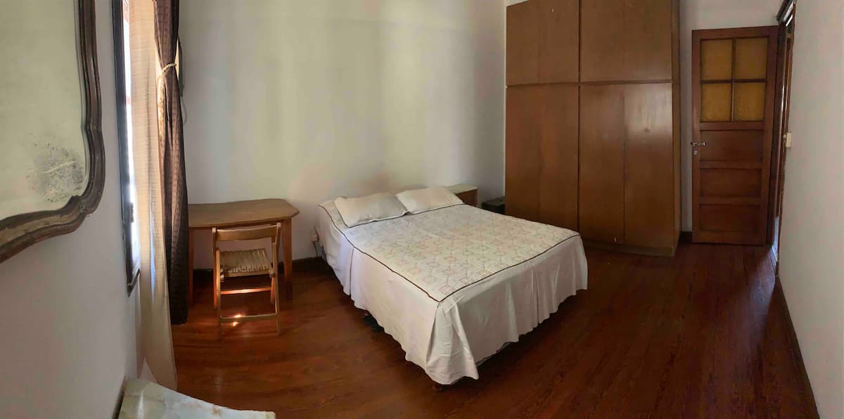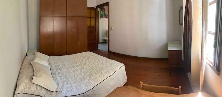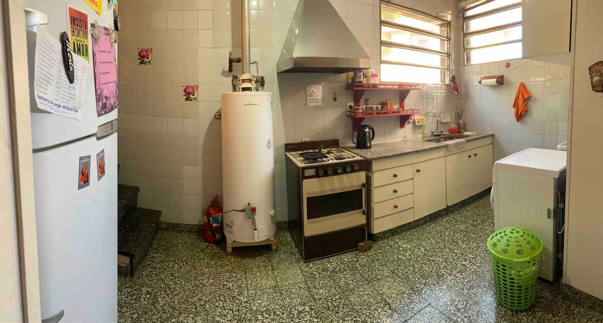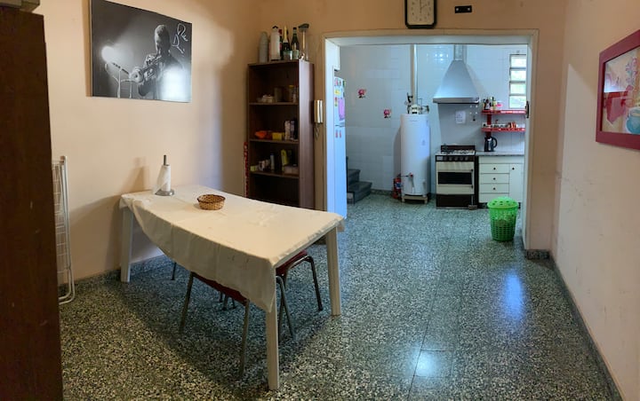 Single room in a shared apartment in the Rawson - Agronomía area. The room has a double bed and storage space, with shared bathroom, and access to a fully equipped kitchen, dining room and living room. Quiet hours run from 10:30pm to 6:30am, with electricity consumption covered up to USD 5 per month; any excess is paid by the guest.