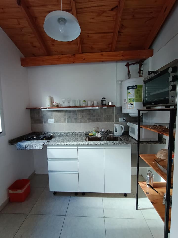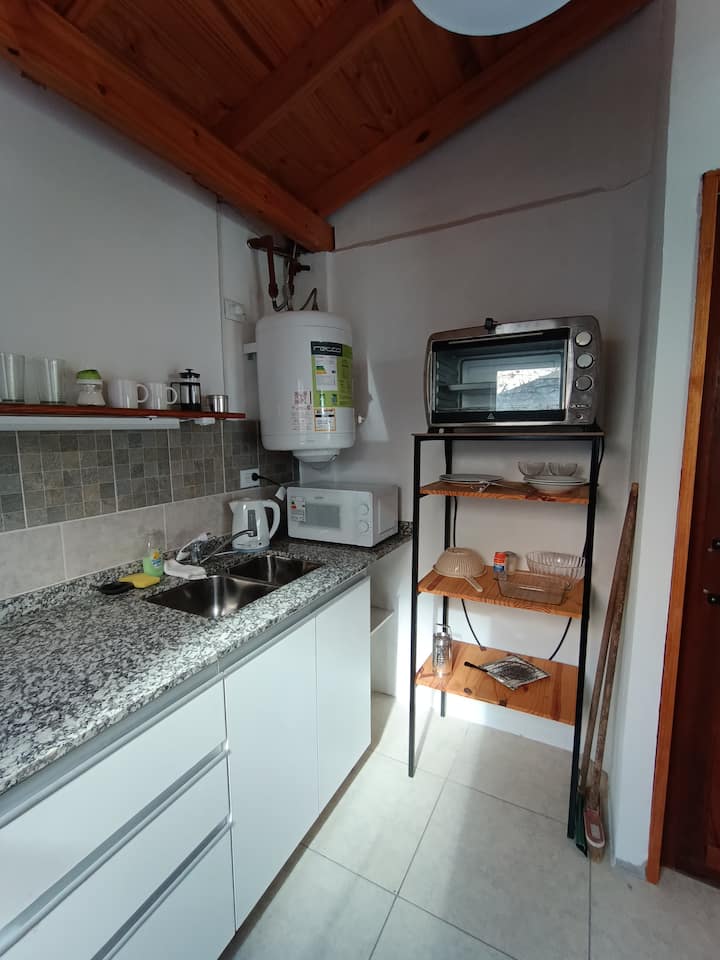 Studio in PH with a separate entrance, balcony, kitchen and full bathroom. Equipped with a sommier bed, large wardrobe, 40" Smart TV, oven and electric hotplate, microwave and refrigerator with freezer. Includes air conditioning, heating and a ceiling fan; bedding and towels are provided.