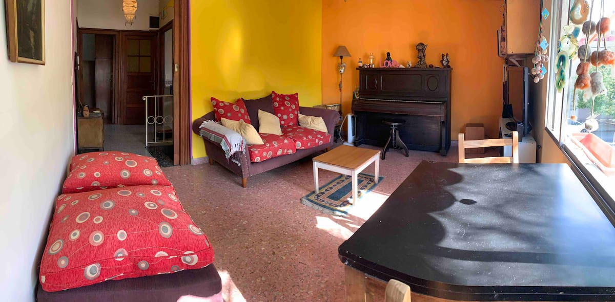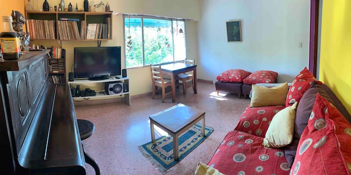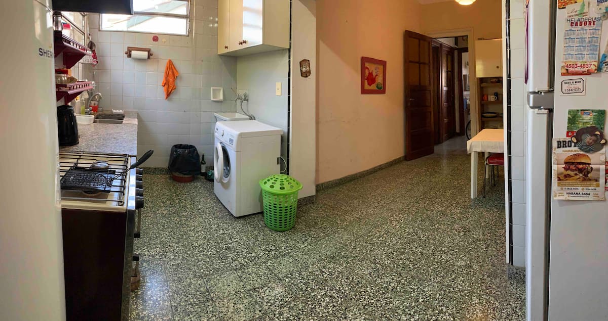 Private room in an apartment in Agronomía. It has a single bed, desk and closet, with access to the kitchen, dining room and living area. The bathroom is shared. Electricity consumption is covered up to 5 USD per month; any excess is charged to the occupant.
