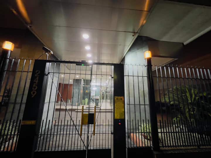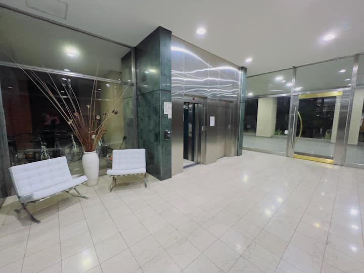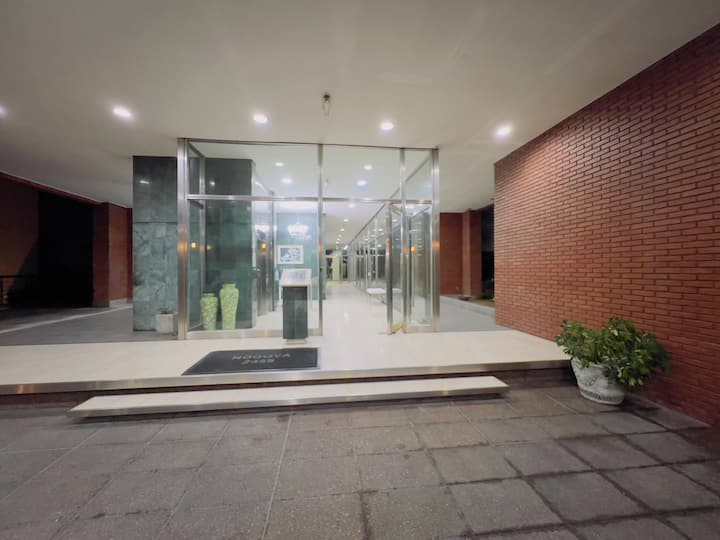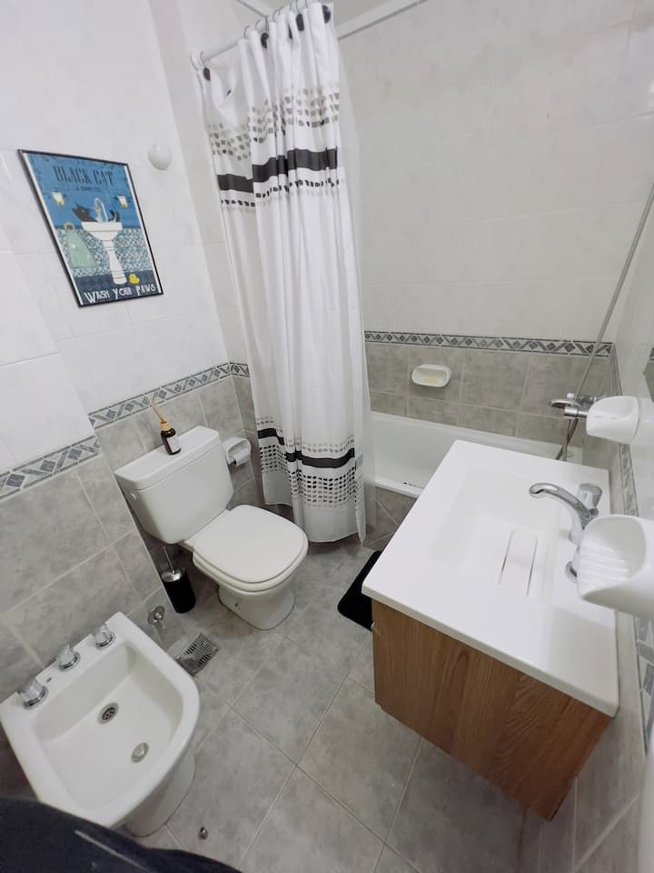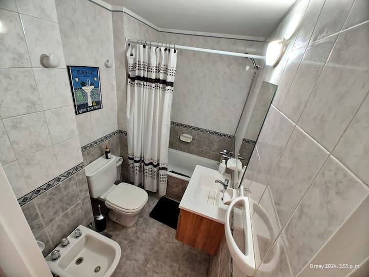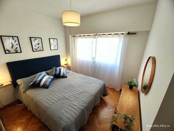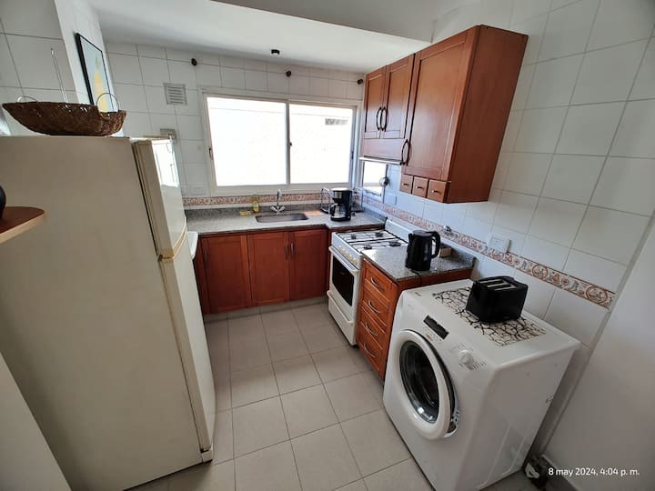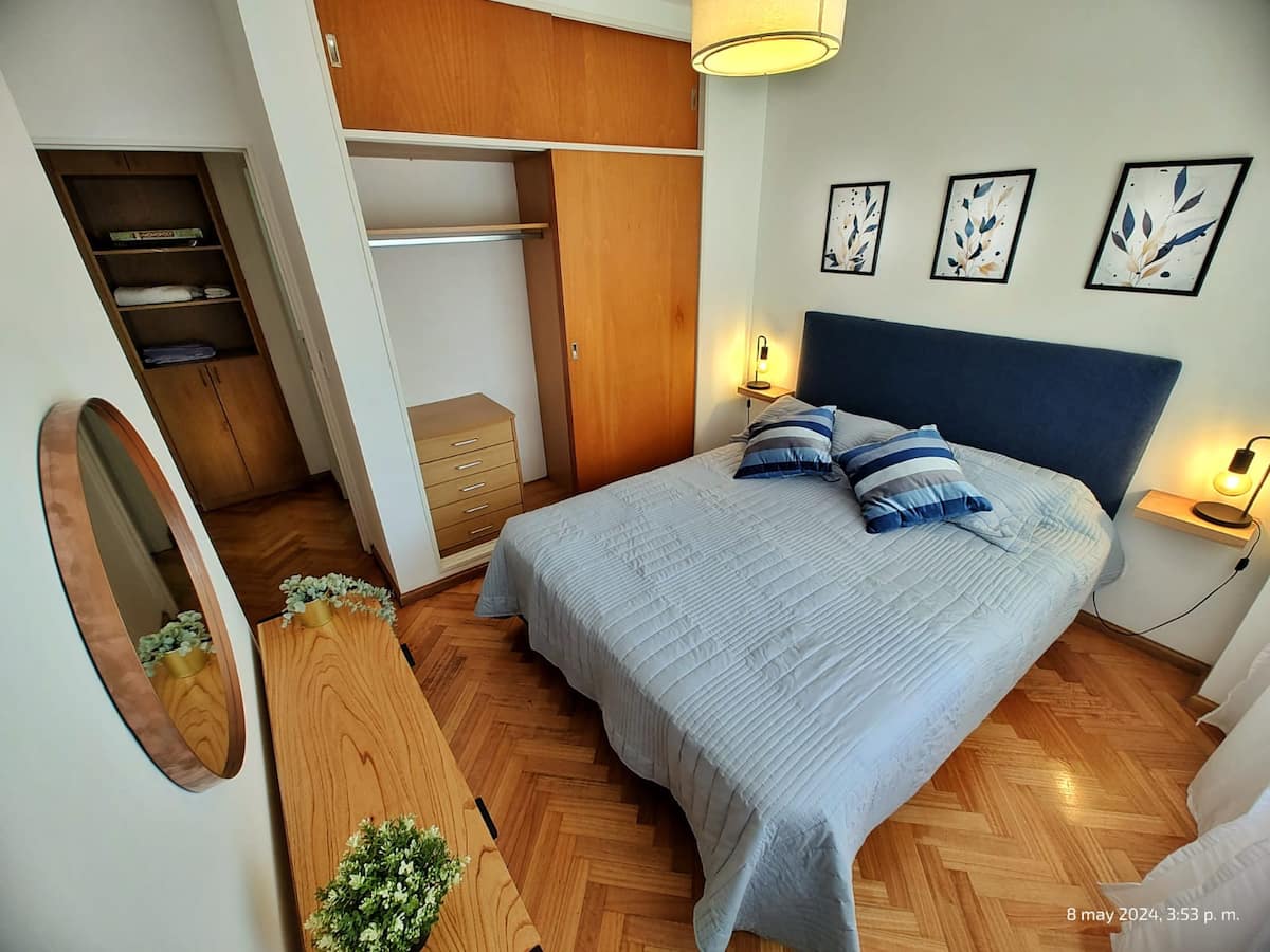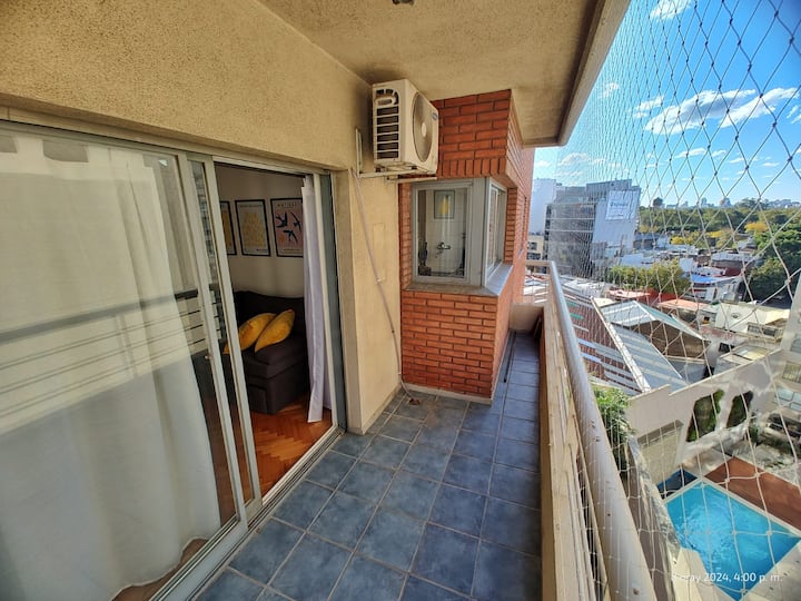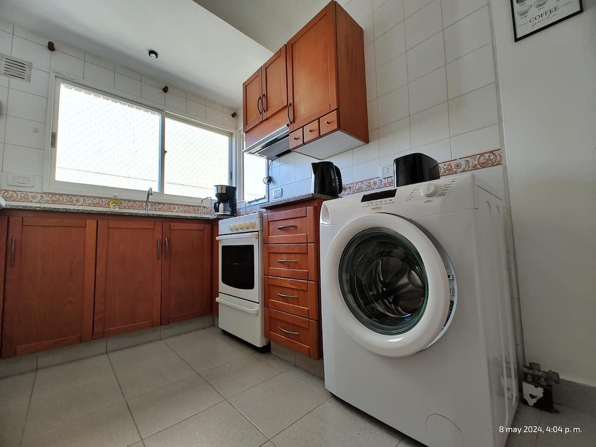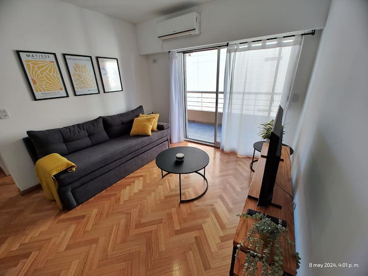 One-bedroom apartment in Agronomía. The living area has a sofa bed, with a double bed in the bedroom. There is a spacious kitchen and a balcony with views. The listing states it can accommodate 2 adults and 2 children or 3 adults, with an extra charge for a fourth adult.