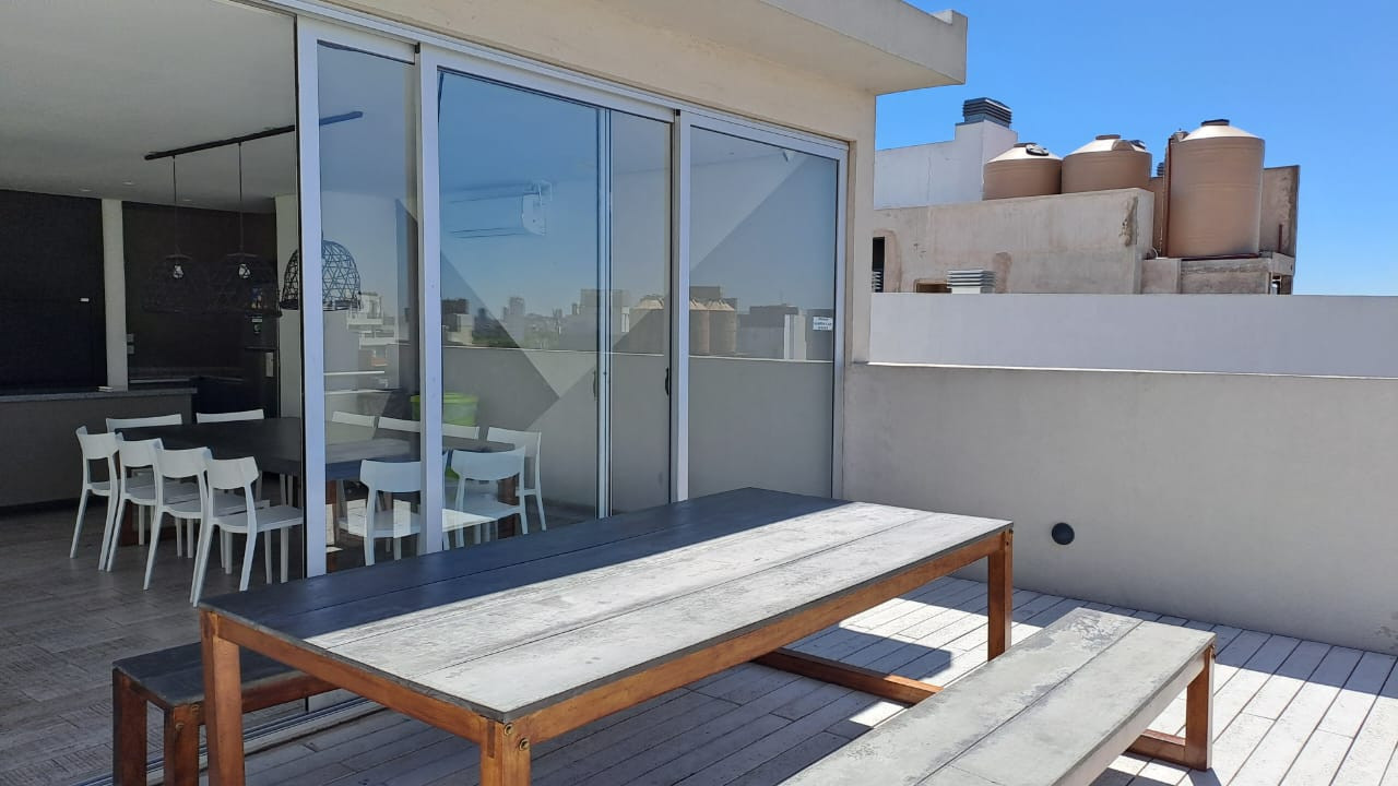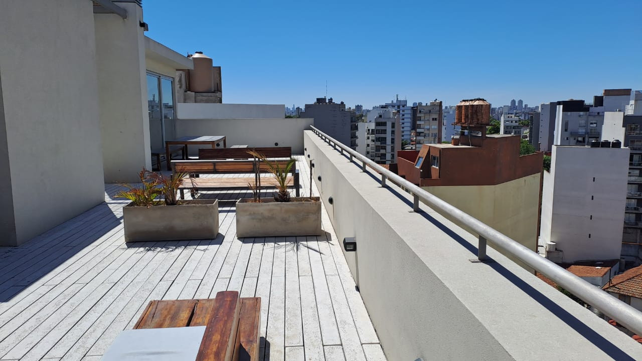 Studio apartment in an “Altos de Agronomía” building, with 37 m² covered and an 8 m² balcony, street-facing with panoramic views. Main room can be separated into living and dining, with 1 full bathroom and a glazed front with metal railing and porcelain tile flooring. Hot water is provided by a shared boiler for the building. Building amenities include a pool with solarium on the 10th floor, a residents’ communal room with kitchen and a terrace, gym, covered grill area, laundry facilities, and 2