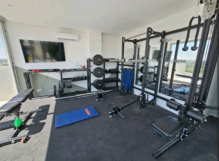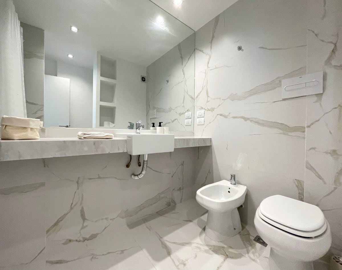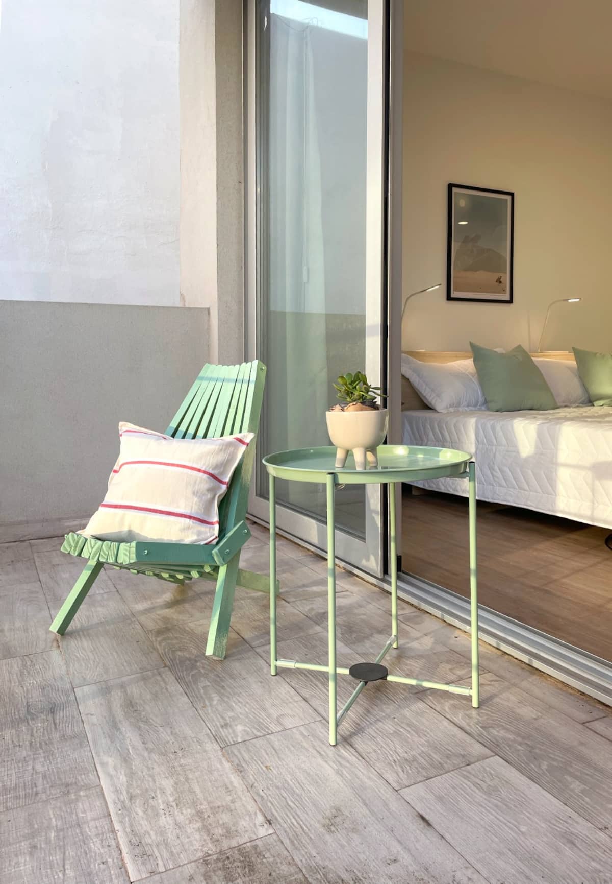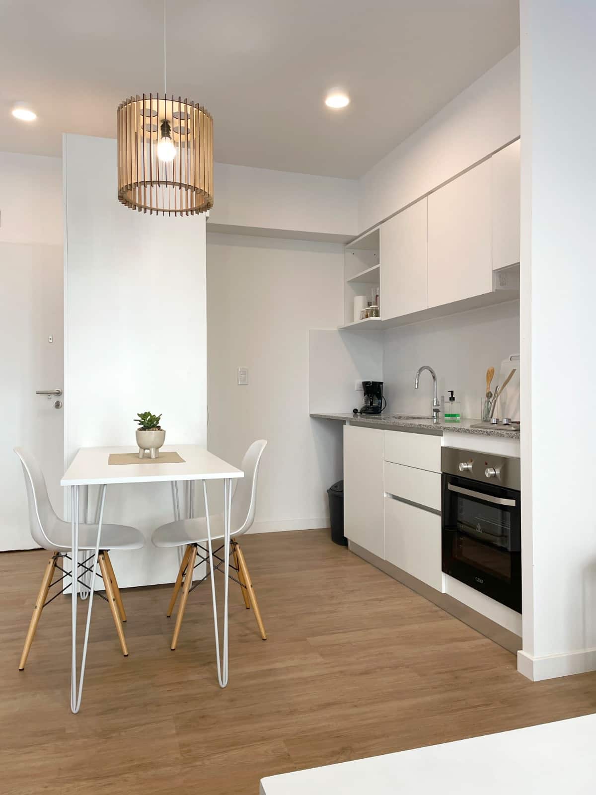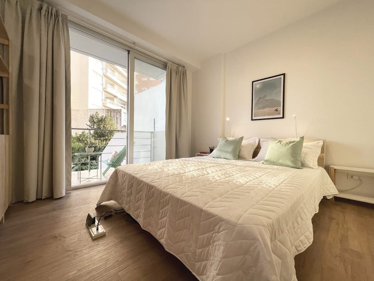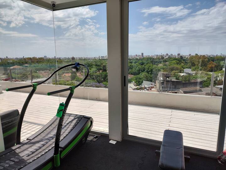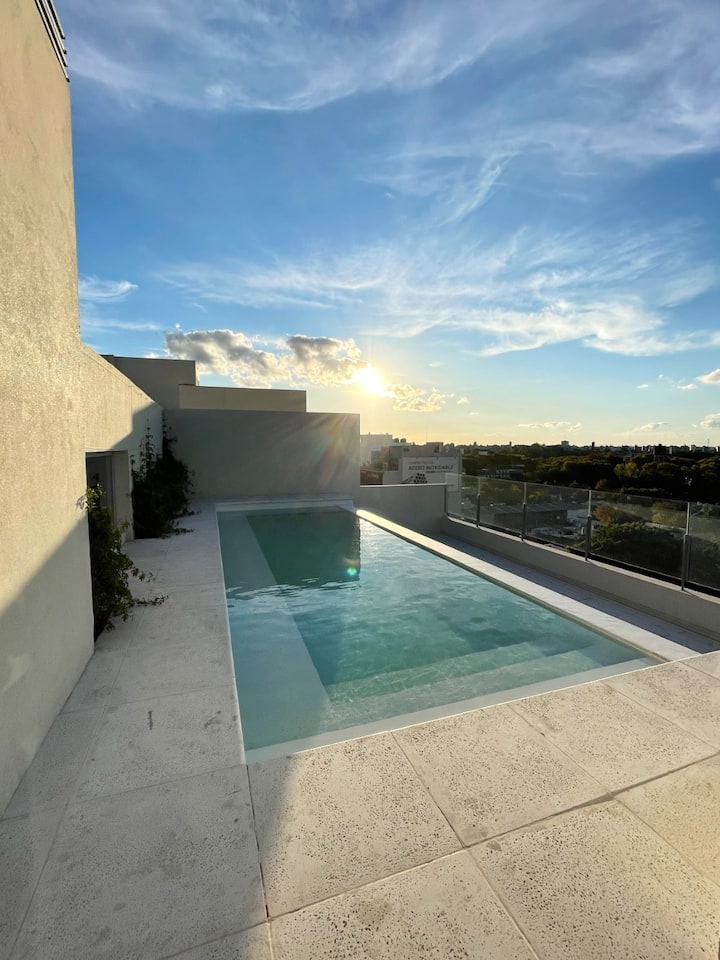 One-bedroom apartment in Agronomía, near Av. Agronomía and Nogoyá street. Building common areas include a rooftop with views, a gym, a swimming pool (seasonal), and a laundry service. WiFi is listed at 100 Mbps, and guests have full apartment access; one laundry item is free per stay.