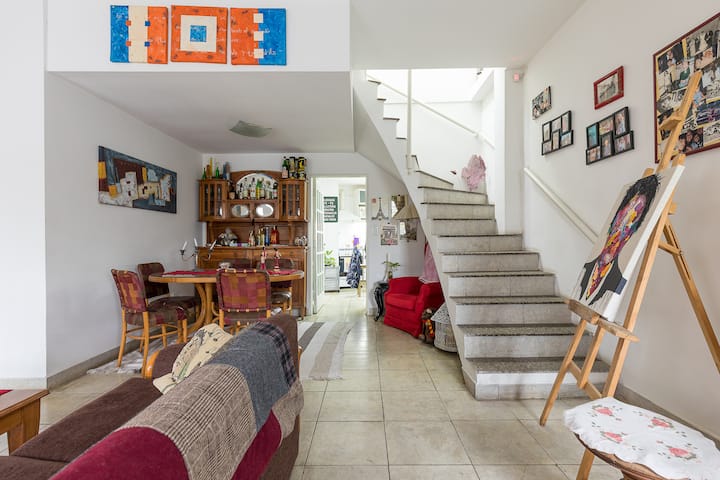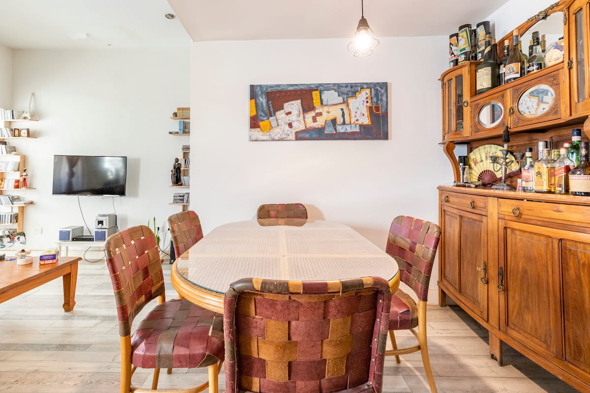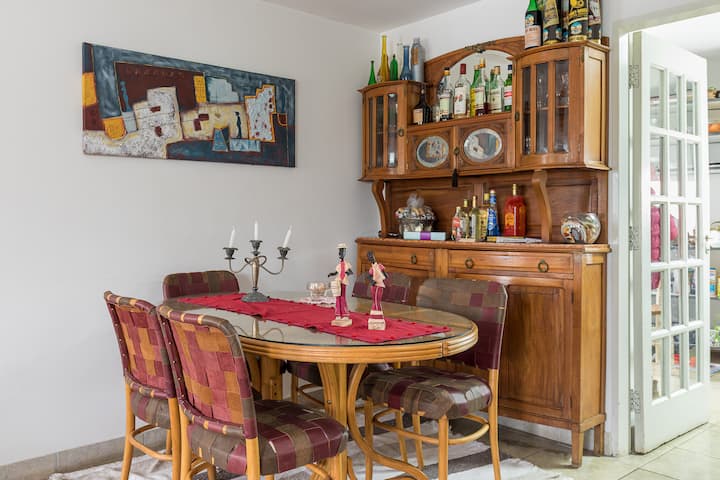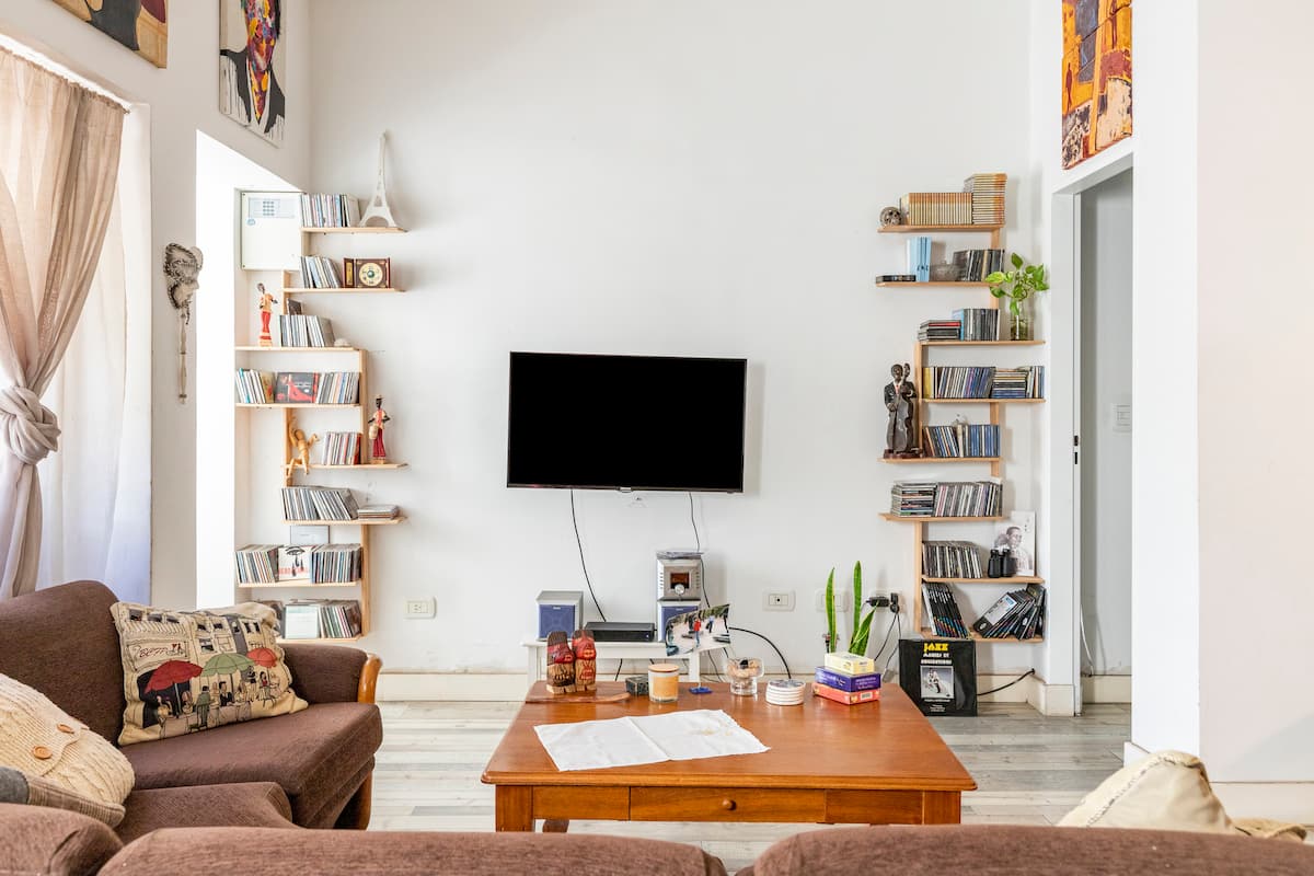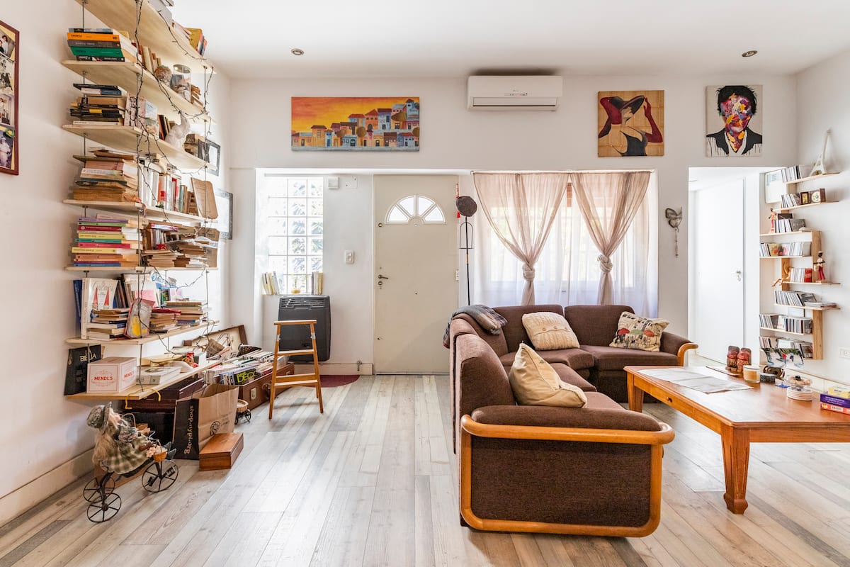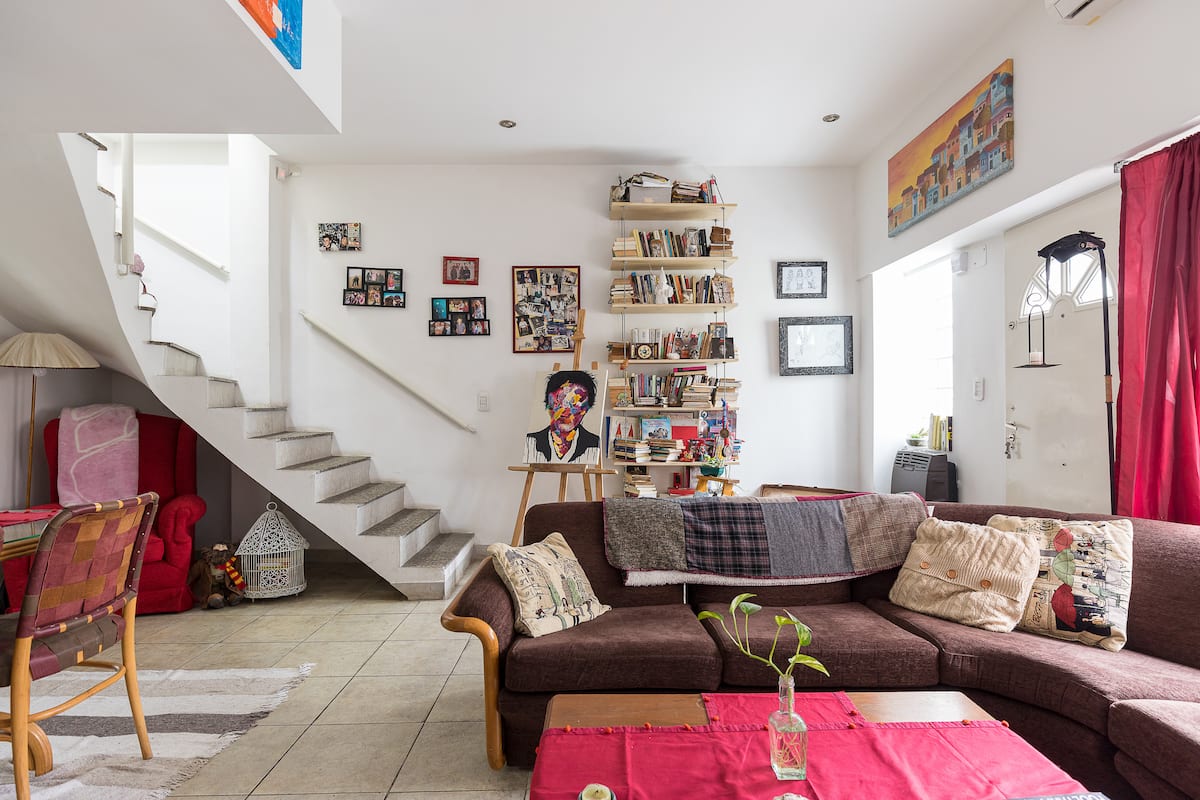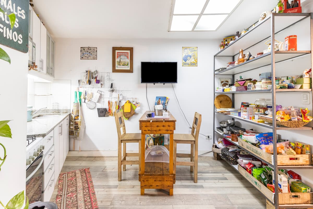 Apartment in Agronomía, with shared use of the kitchen, living room and a terrace. The private room is on the first floor, while the bathroom is on the main floor. The room has a fan and WiFi, and the living room has air conditioning; cable TV is available in the living room with Netflix access. Kitchen and laundry facilities include a washing machine and an ironing board, with a laundry area available. A cleaning service is included every 7 days of stay, and free bikes are available nearby.