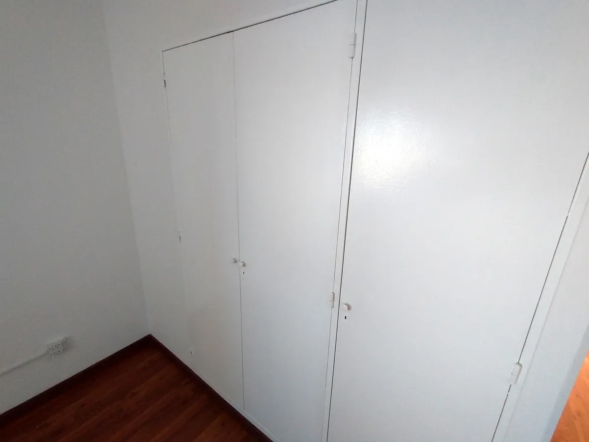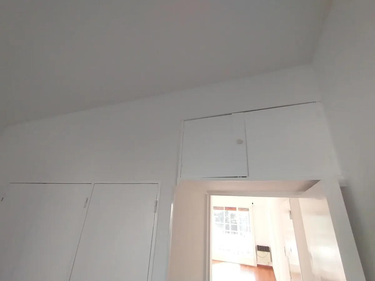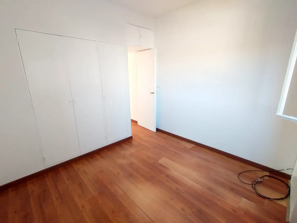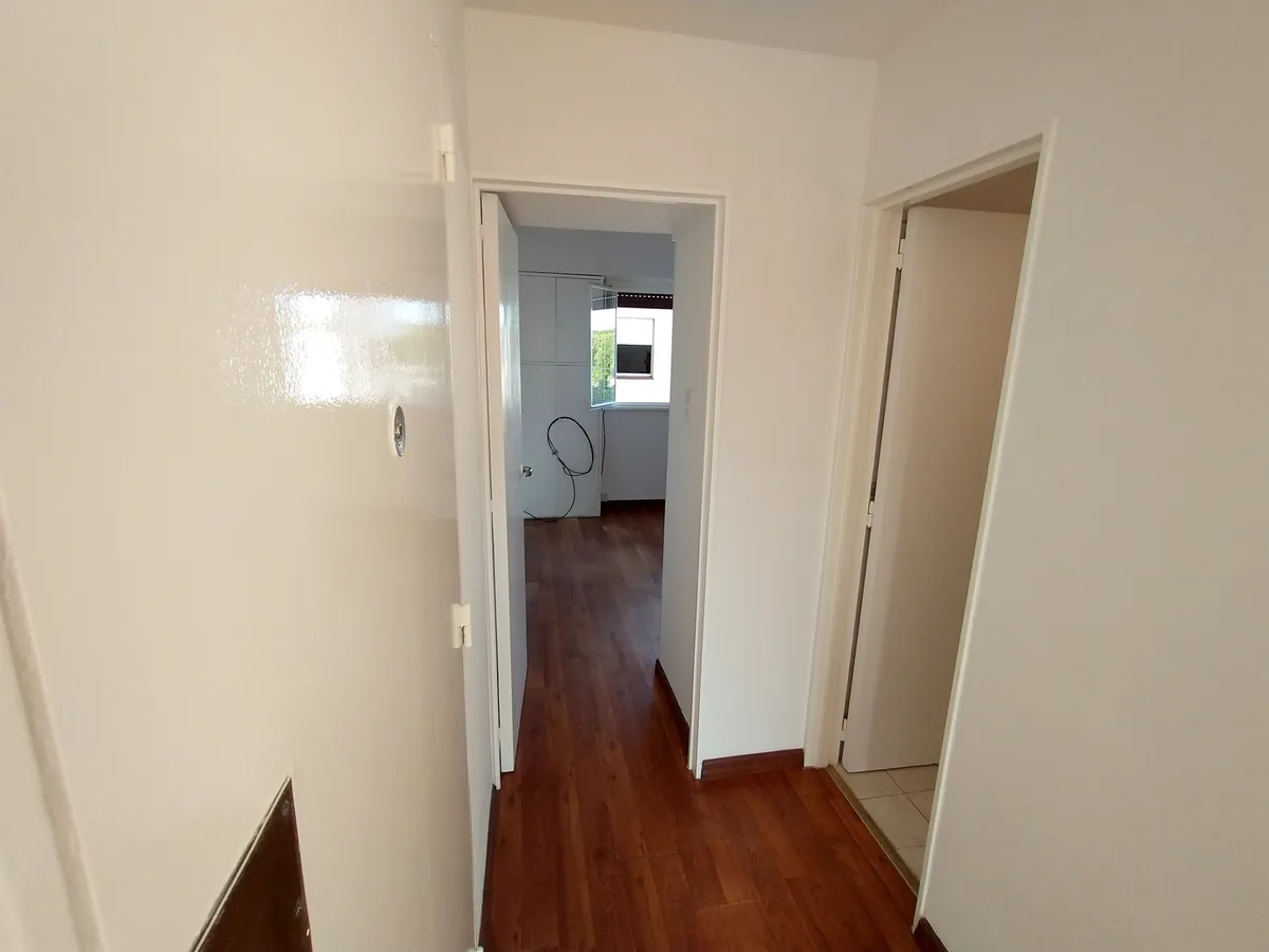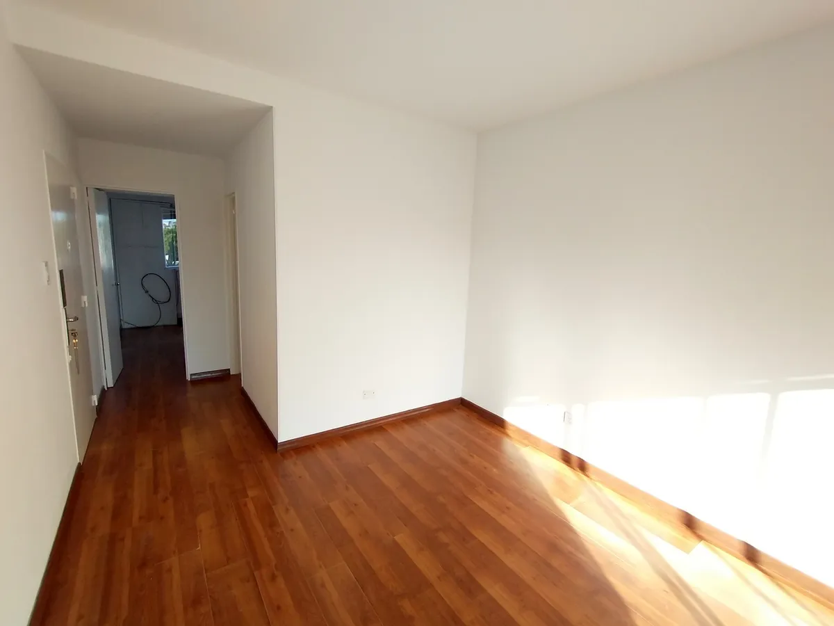 Two-room apartment (1 bedroom) renovated and located on the 5th floor, street-facing with a front balcony and open tree-lined views. The unit has a living-dining room with balcony access, a separate kitchen, and an integrated laundry area with a front window, plus gas cooking (brand-new). Hot water is provided by a calefón; the bathroom has natural ventilation. The bedroom includes a fitted wardrobe; there are new electrical installations, floating laminate floors, and a gas heater with a balanc