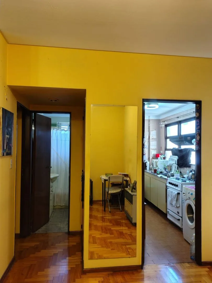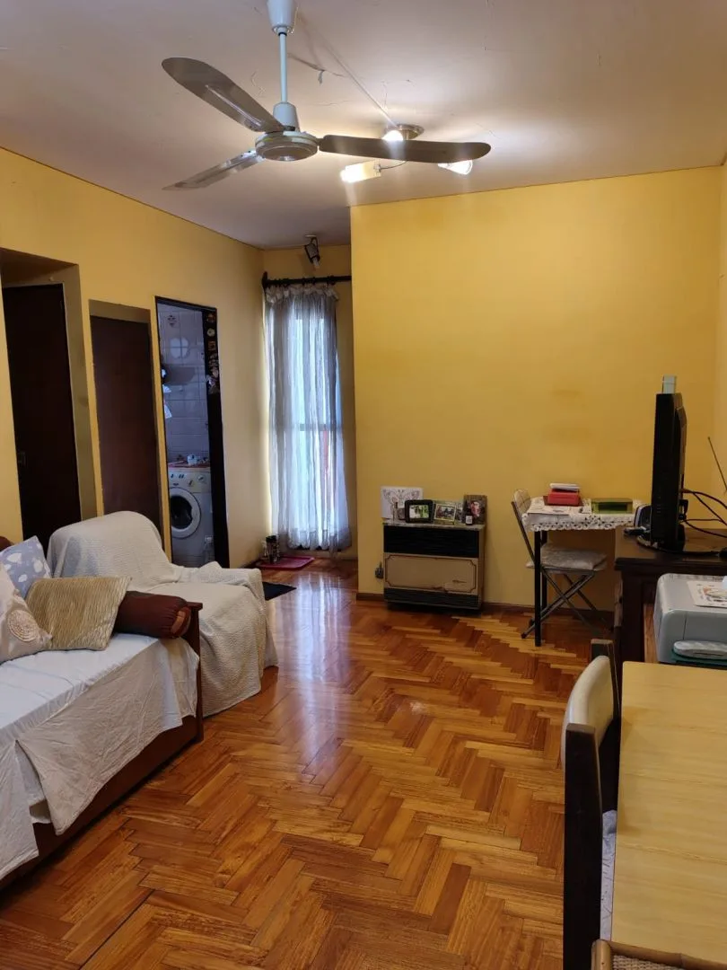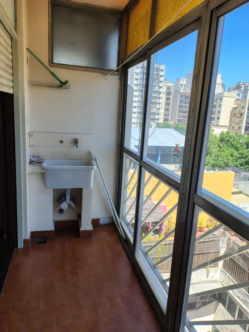 Two-room apartment in Almagro. It has a living-dining room, a separate kitchen with upper and lower cabinets, and a connection for a washing machine. The bedroom includes a fitted wardrobe and a storage room, with access to the balcony. There is a full bathroom with a bathtub and two balconies, one covered with a laundry area and one uncovered. Building fees are low.
