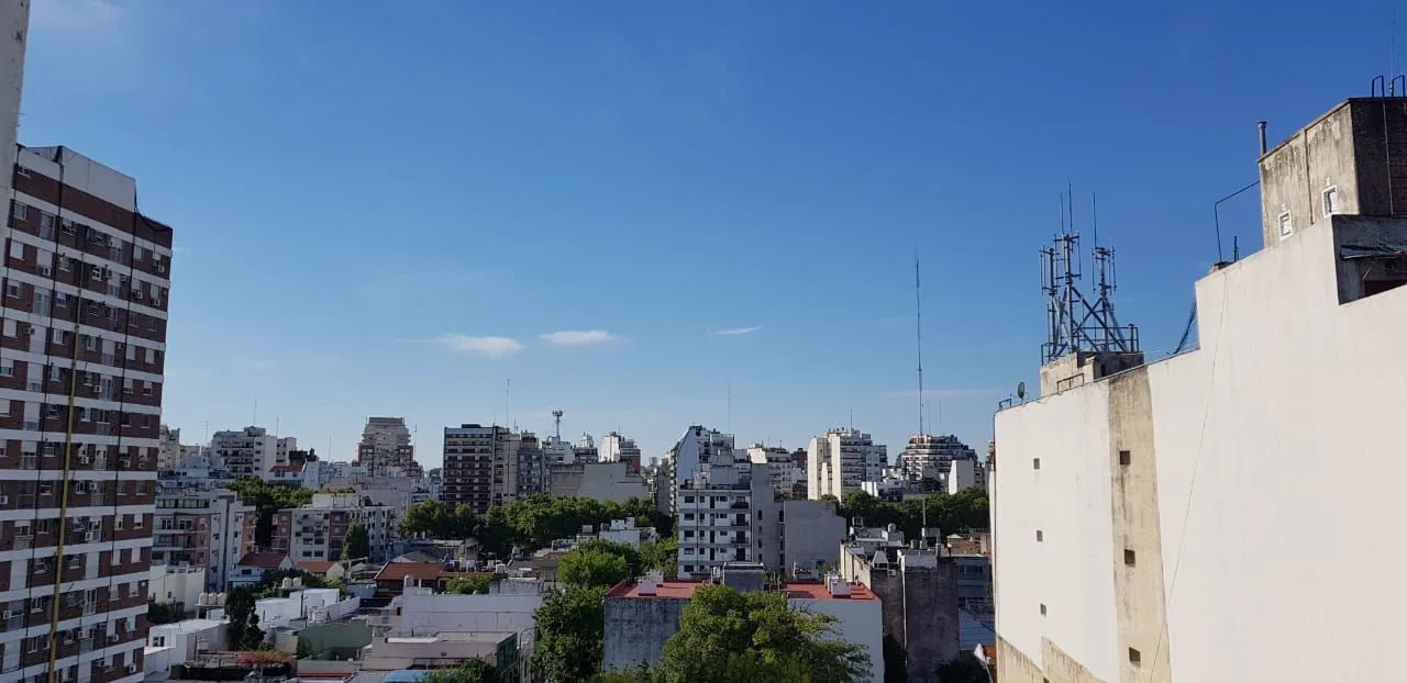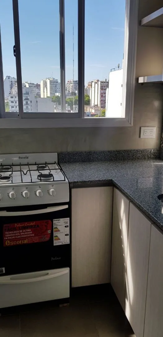 Studio apartment in Almagro, Buenos Aires. Refurbished. Separate kitchen with laundry area and space for a fridge. Full bathroom with direct light and ventilation. Air-conditioning provides heating; open view. The building has a rooftop terrace.