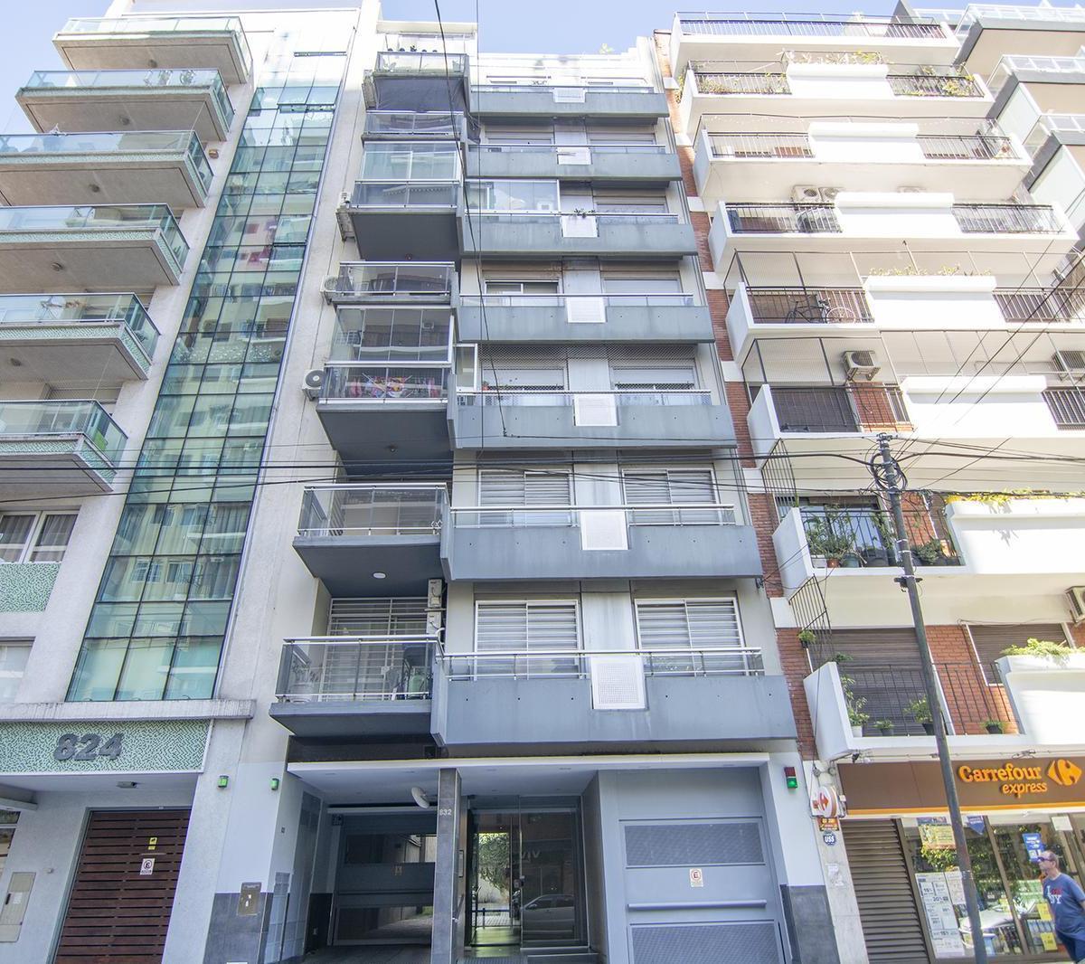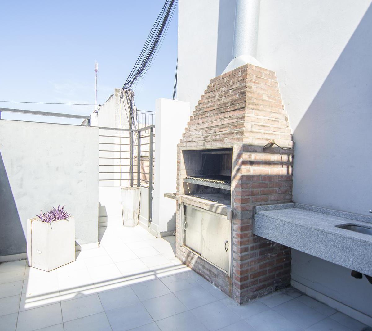 Studio apartment on Río de Janeiro 830, 2nd floor, in Almagro. All-electric unit with hot-and-cold air conditioning. Building amenities include an outdoor pool, a communal room, a rooftop grill, and a laundry area.