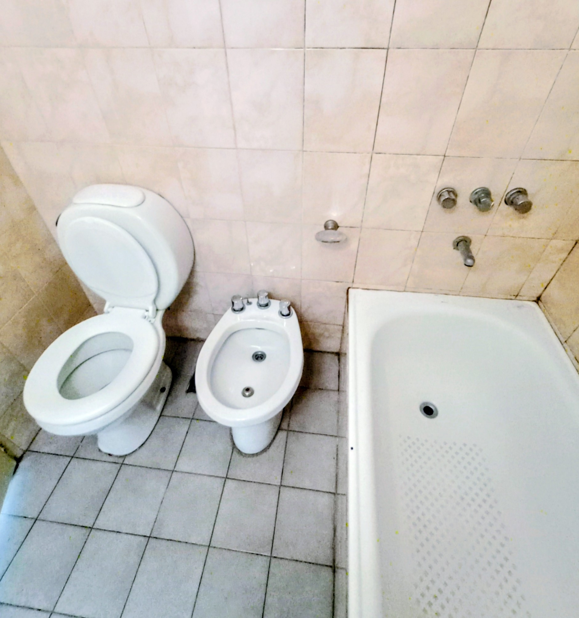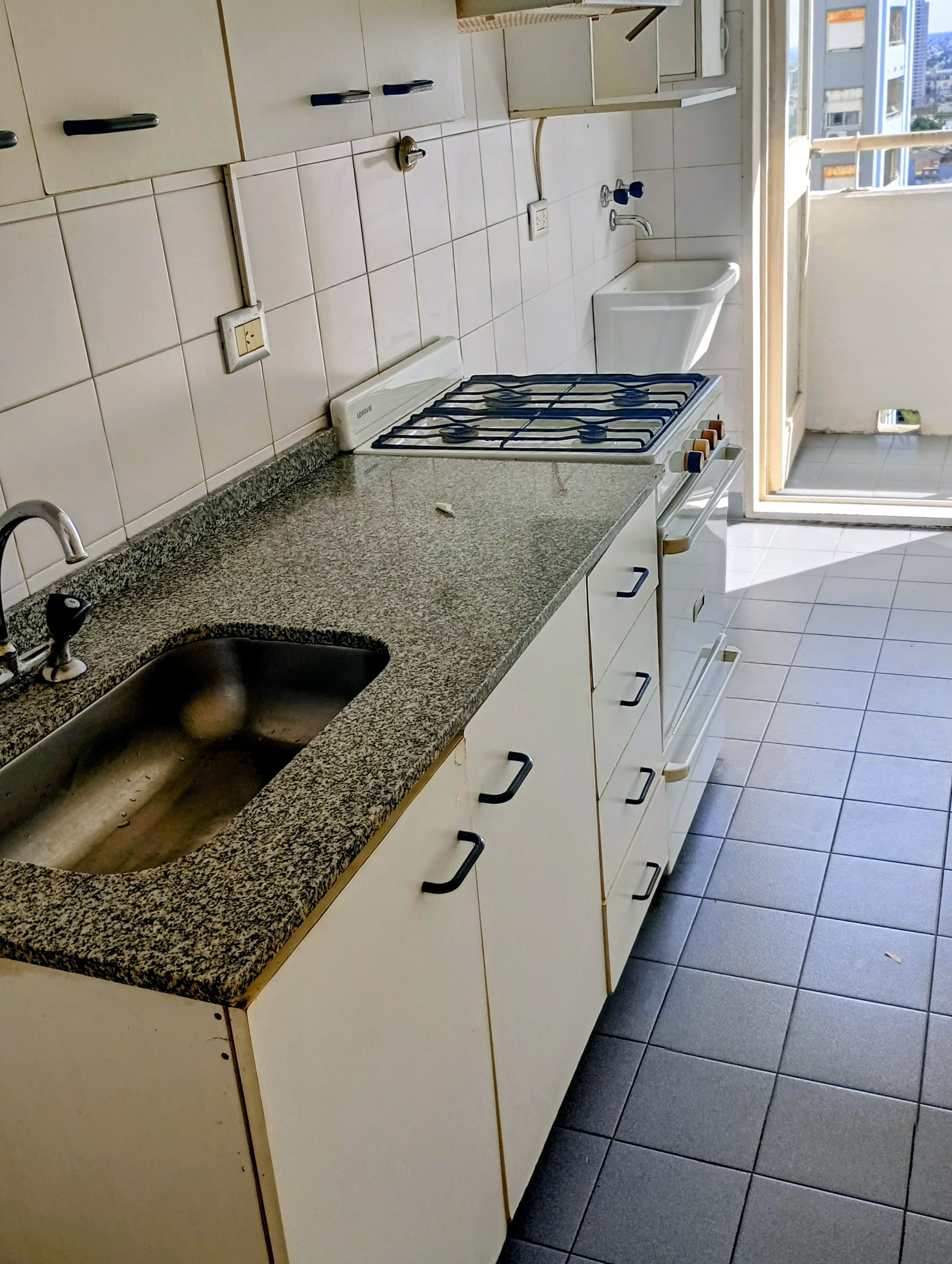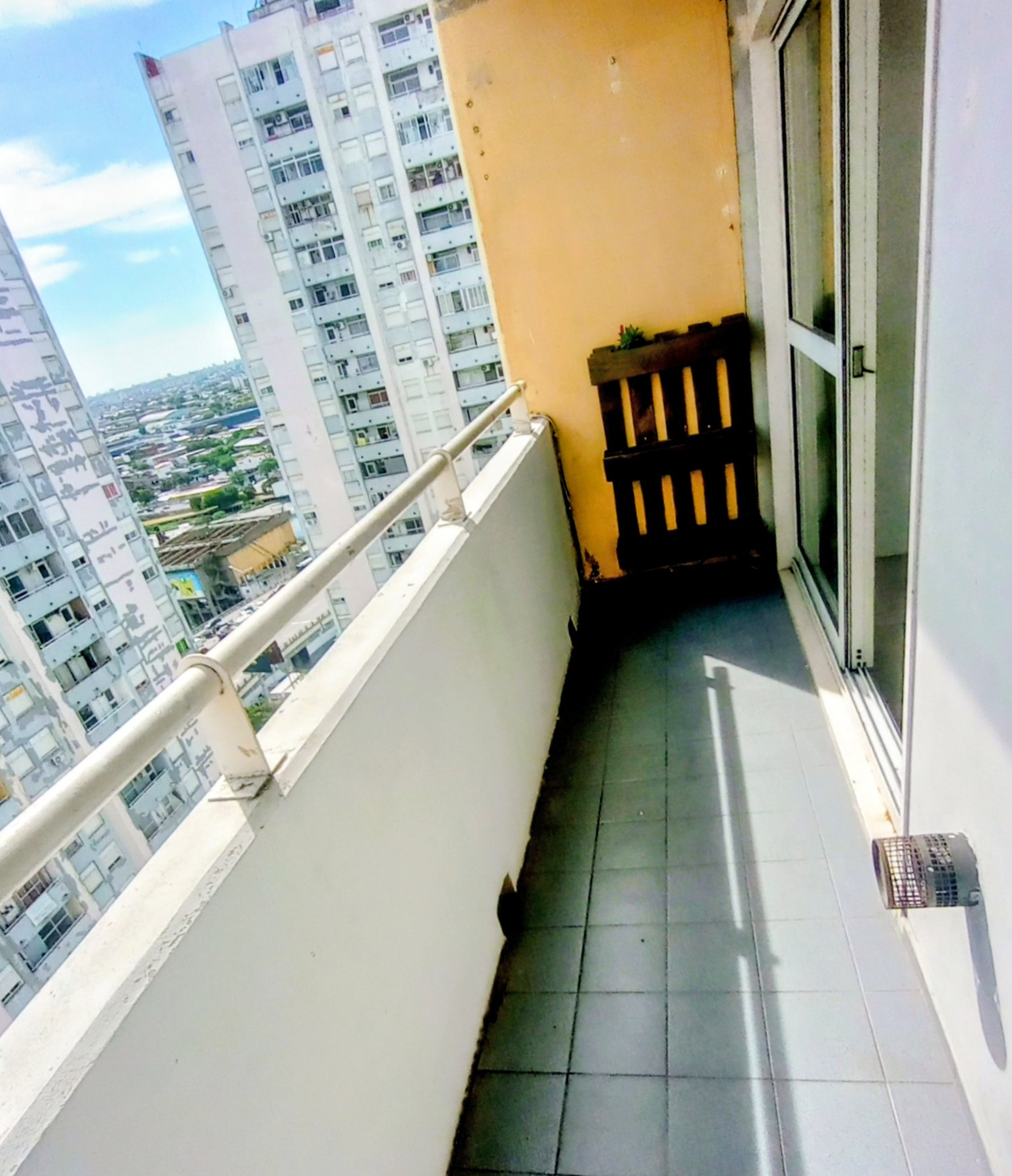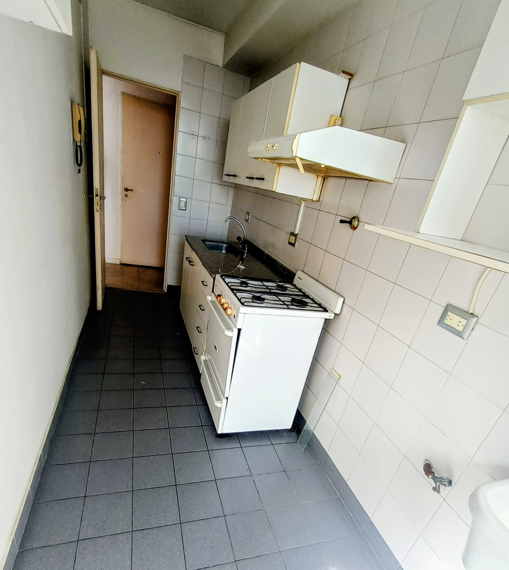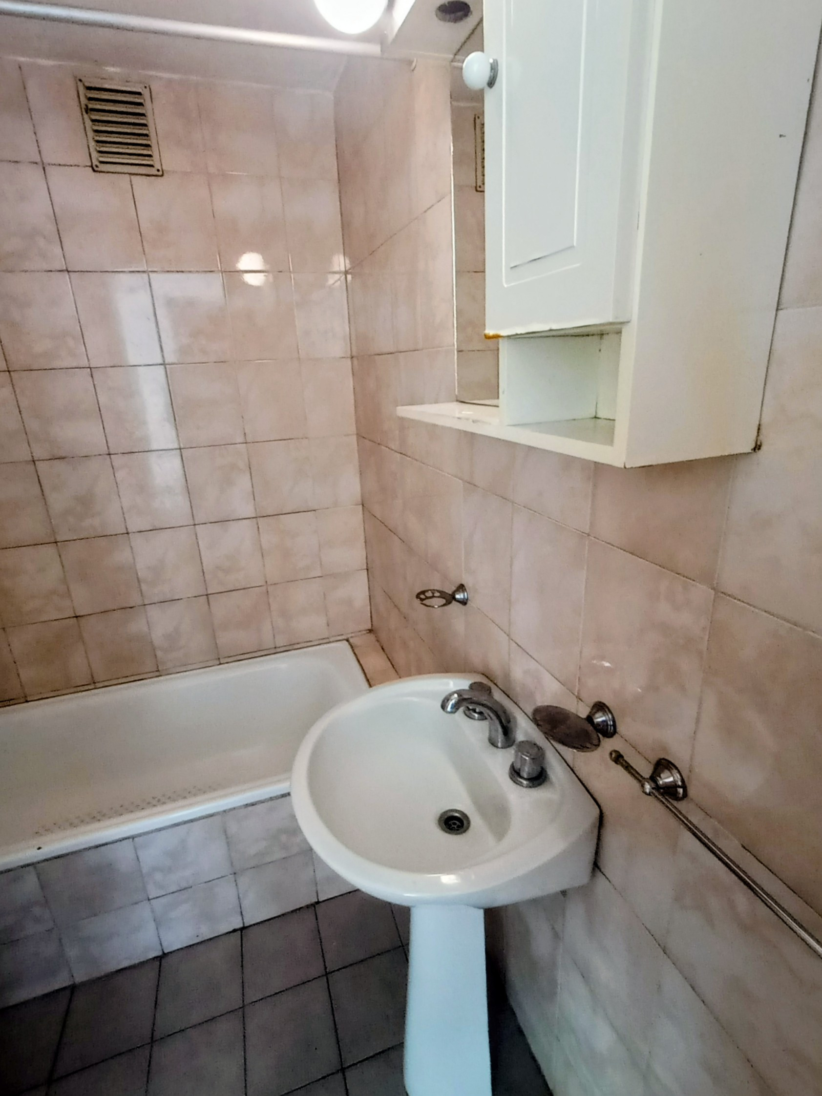 Front-facing apartment in Avellaneda with a balcony. It has 1 bedroom with a built-in wardrobe, a living-dining area, an installed kitchen with a built-in laundry space, and a full bathroom with a bathtub. Rent is ARS 420,000, plus Edesur, MetroGAS, TSG, AYSA and building fees. Lease term is 2 years with quarterly rent increases based on IPC.