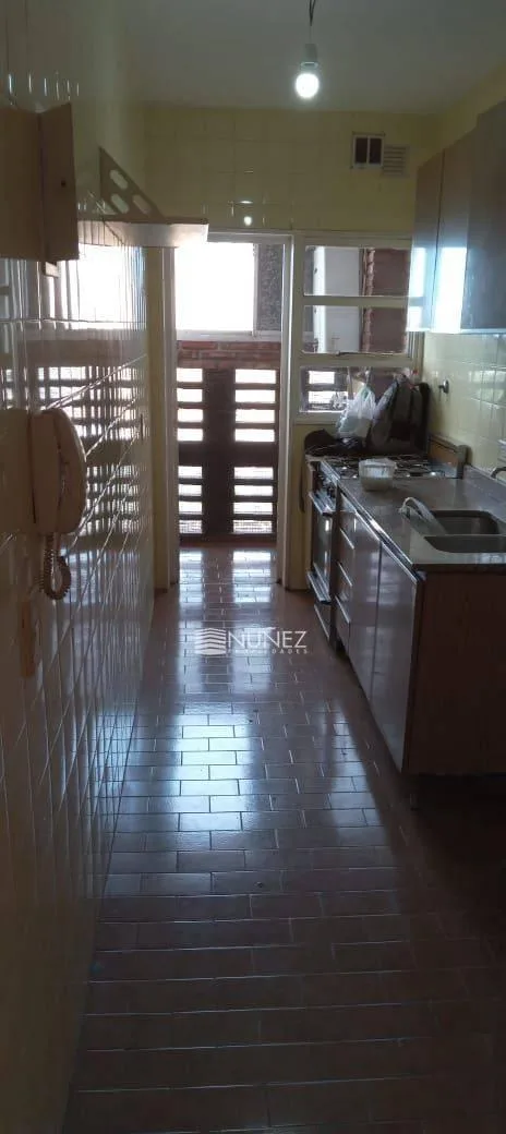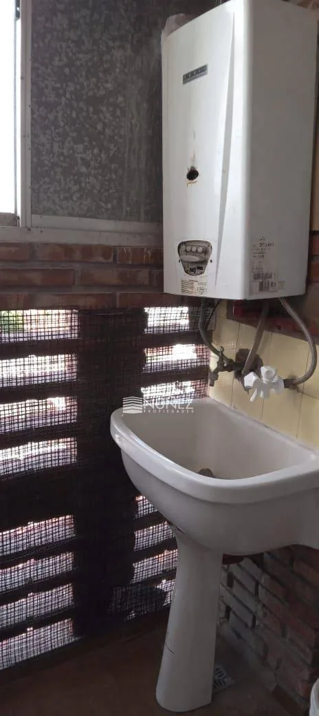 Two-room apartment in Wilde, Avellaneda. It has a living room with ceramic floors, white walls and a window that opens to a balcony with views. The fitted and equipped kitchen includes a cooking appliance and has ceramic floors. A utility area off the kitchen has a standing washbasin, a connection for a washing machine and a water heater. The apartment includes a bedroom with a built-in wardrobe and a full bathroom. The unit was recently painted throughout. Rent plus services, tsg and fire insur