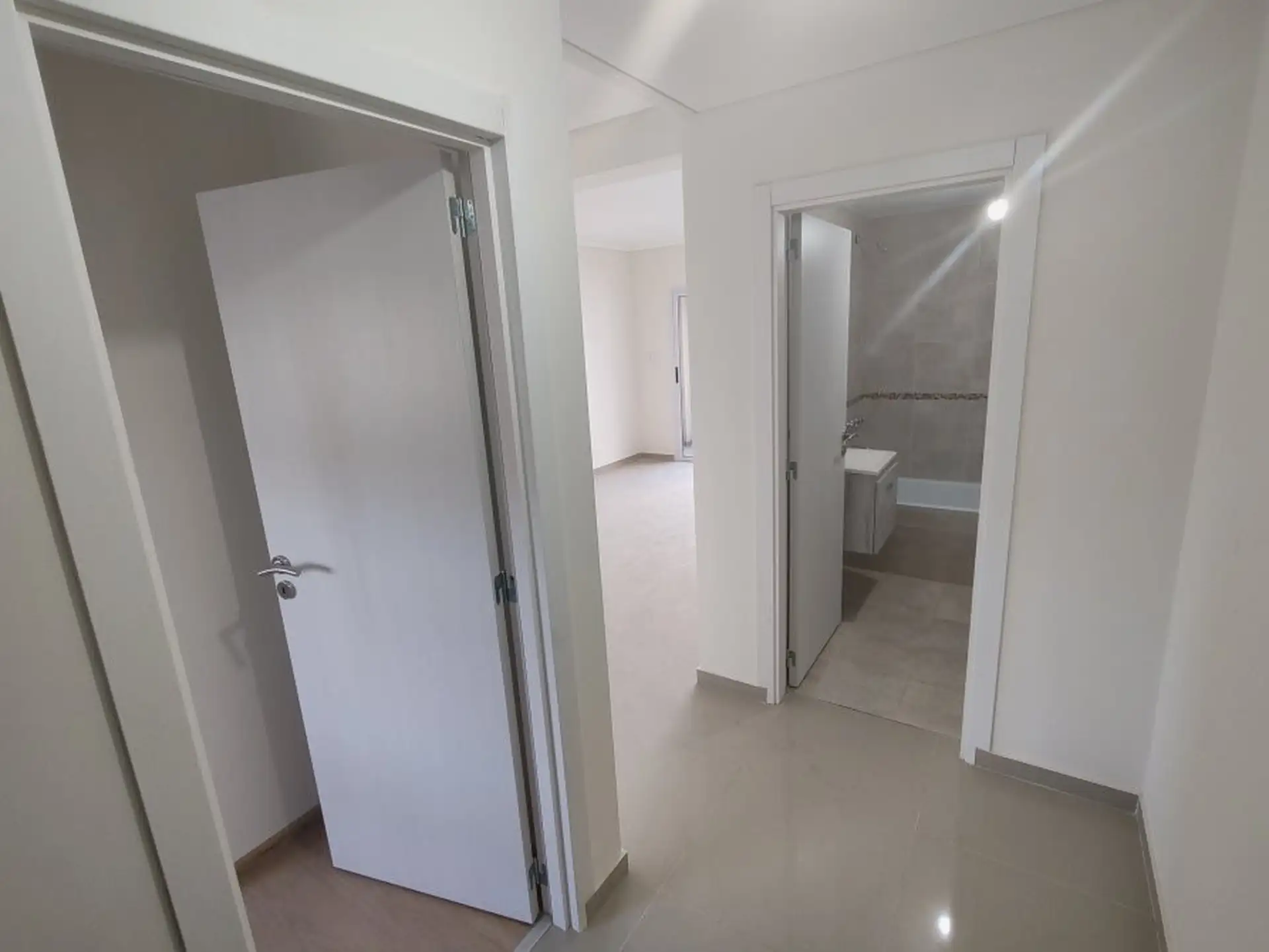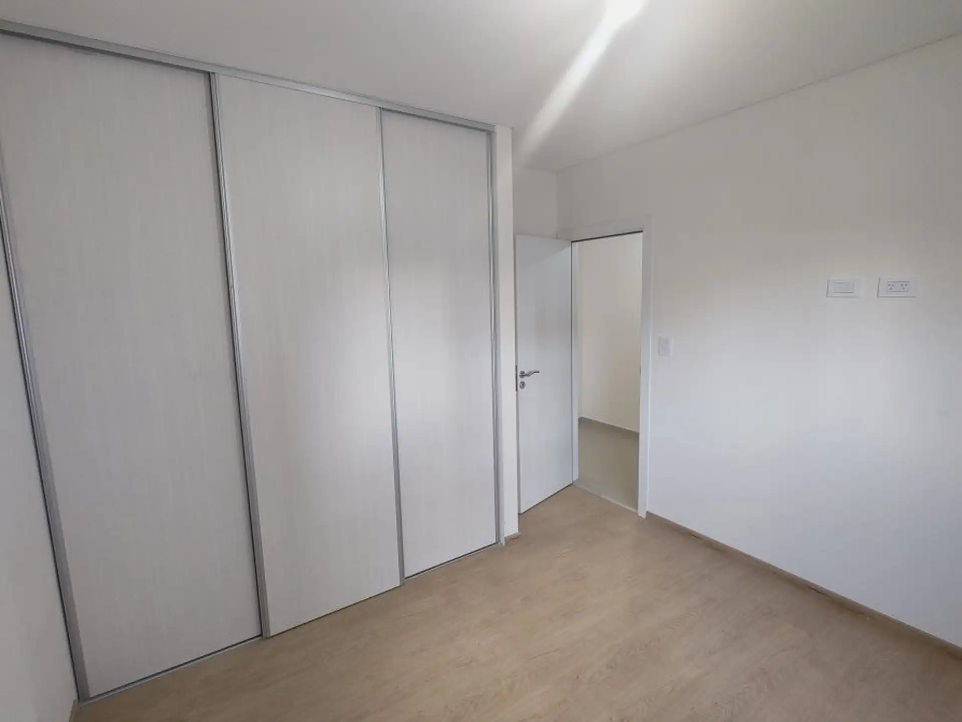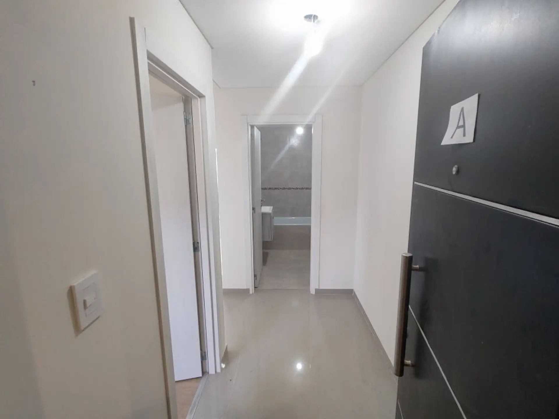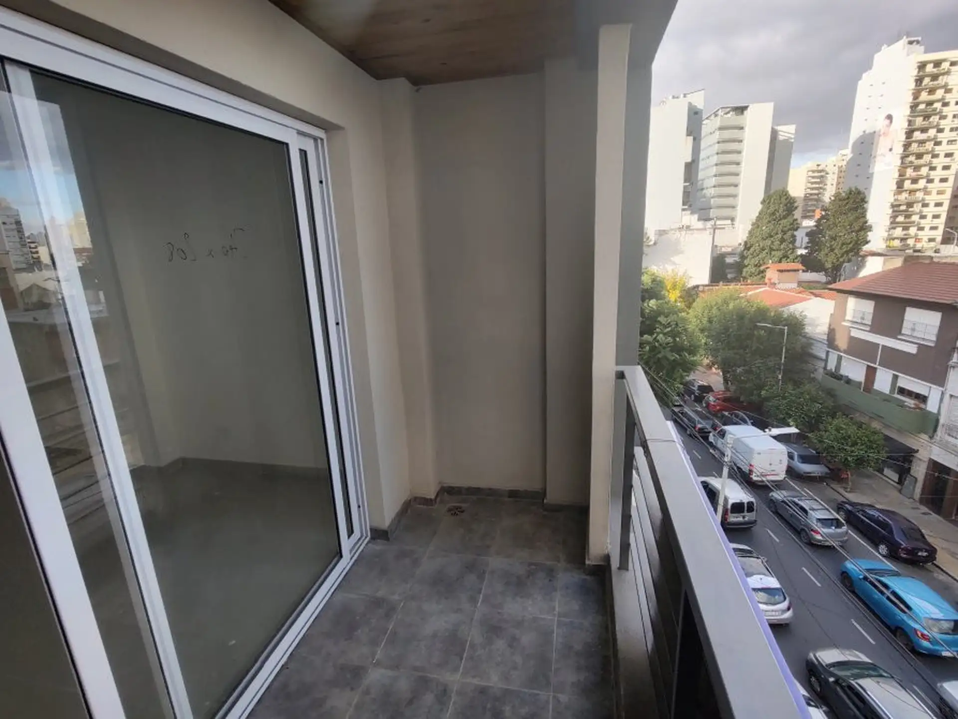 Two-room apartment of approximately 48 m² in the Edificio Chagall on Adolfo Alsina 271, between Av. General Belgrano and Juan Bautista Palaá, in central Avellaneda. The unit has an integrated kitchen-dining area with porcelain tile floors and tiled backsplash, base cabinets with drawers, an overhead cabinet, granite countertop, stainless-steel sink, single-lever faucet, space under the counter for a washing machine, a gas cooktop and water heater, and a door viewer. There is a full bathroom with