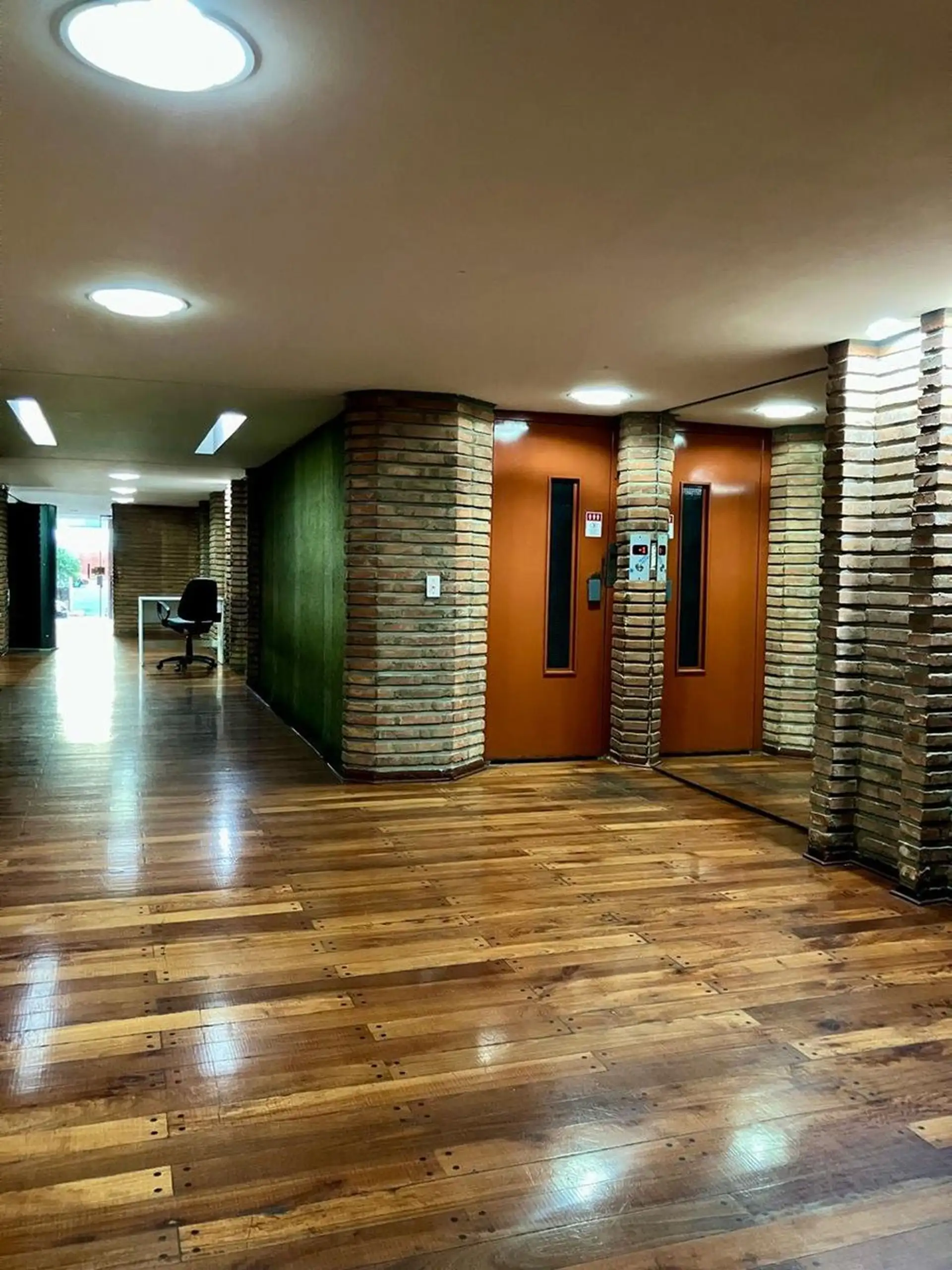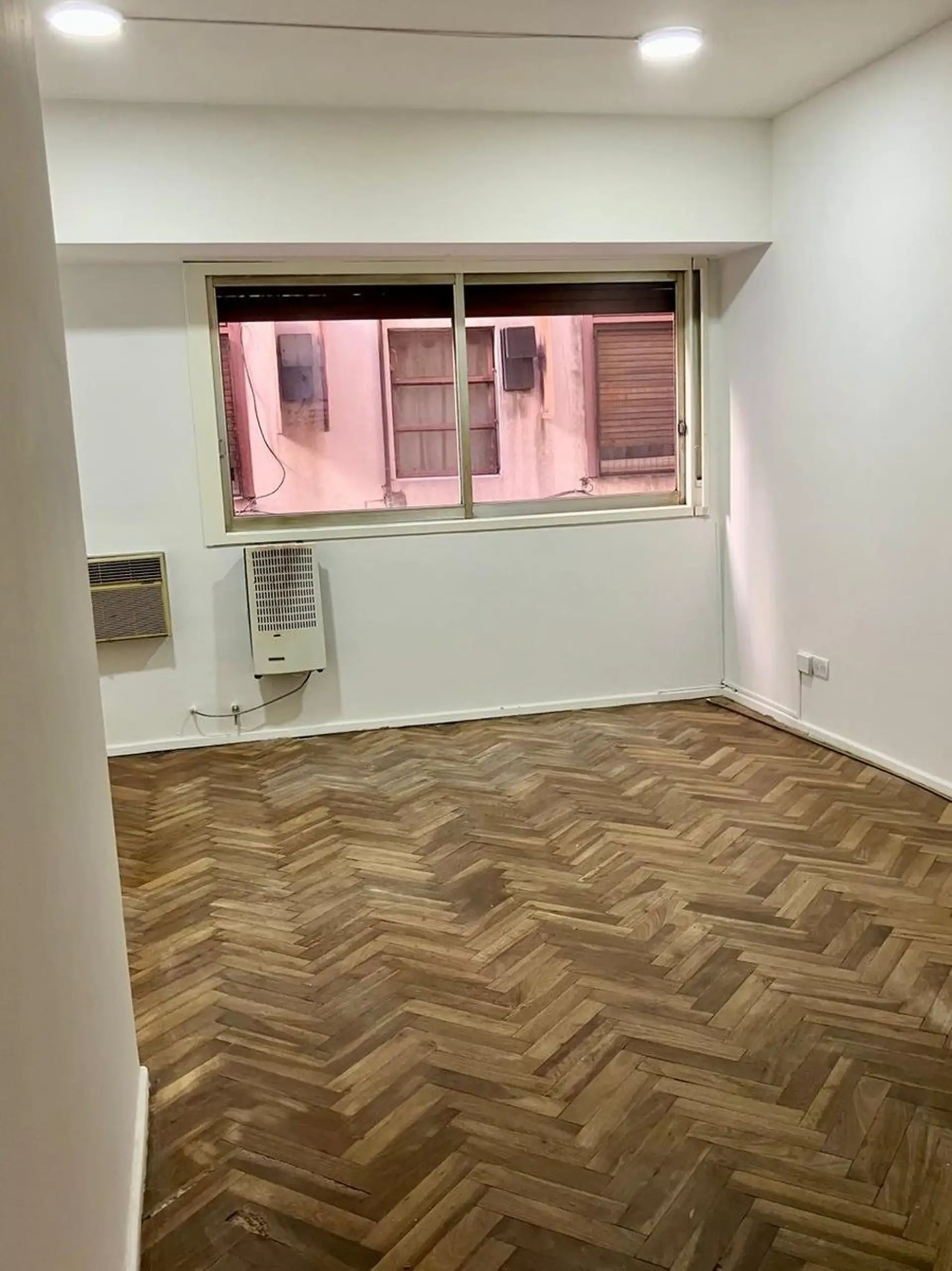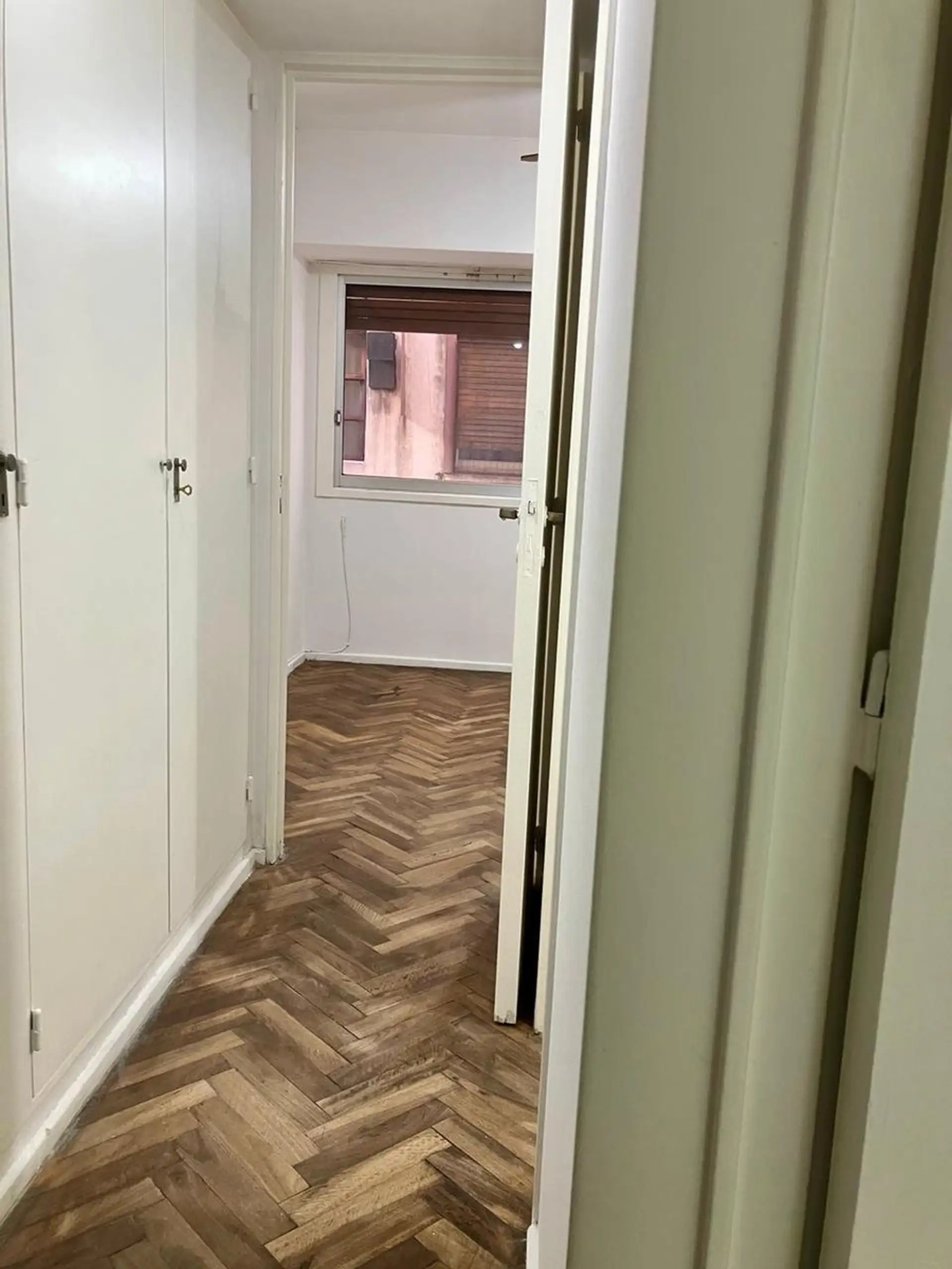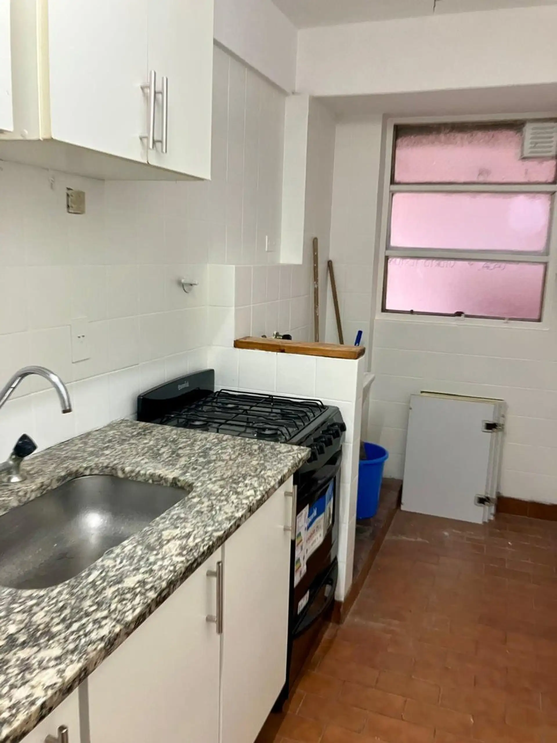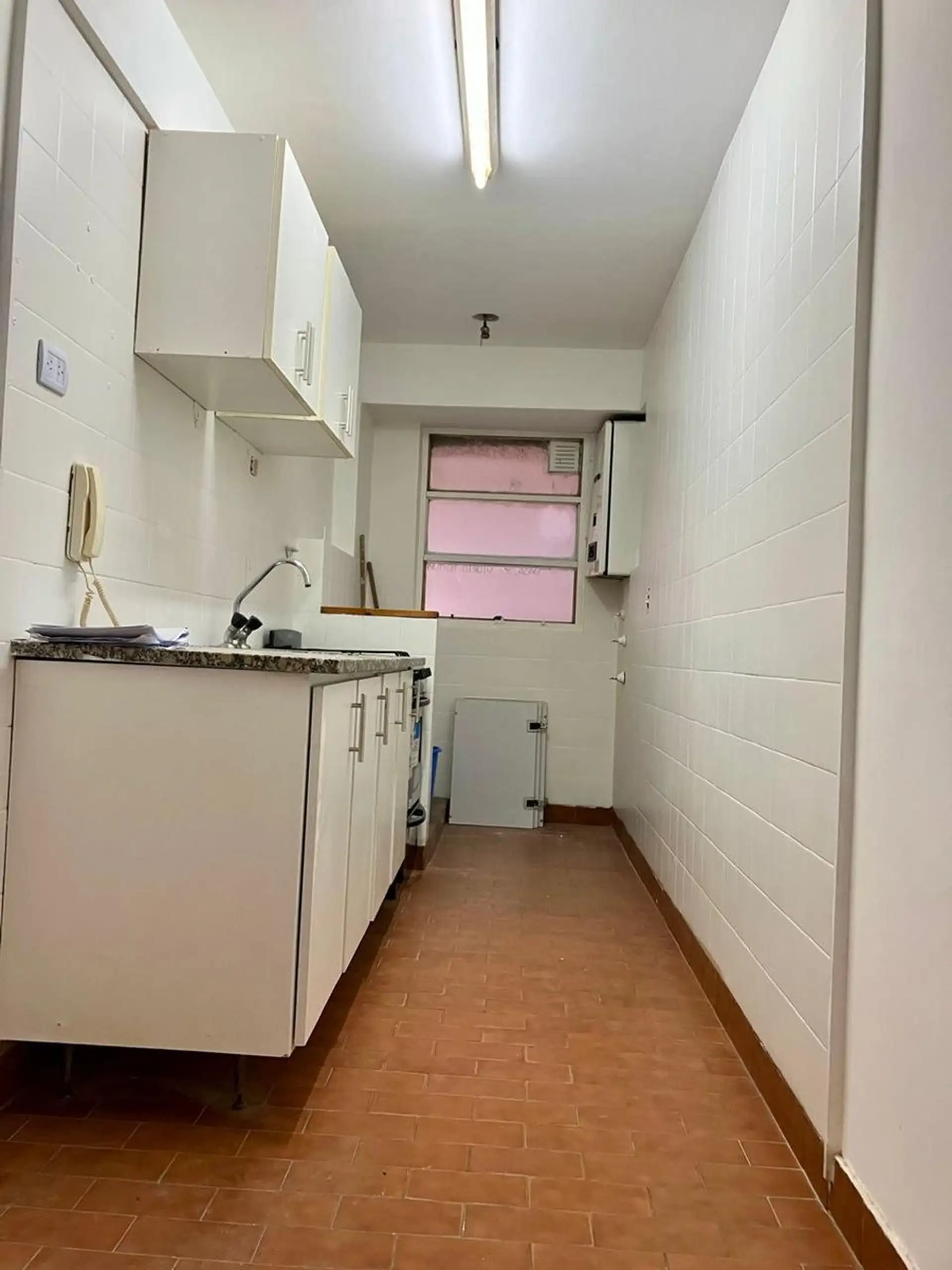 Two-room apartment of 44 m² on the 5th floor, street-facing on Sarmiento, in Balvanera. Living room and bedroom with a separate layout, plus a hallway with a storage closet. Dining kitchen with a separate laundry area, connection for a washing machine, oven and hot-water heater; individual services. Building has a security totem, an on-site caretaker, and several elevators; newly painted and currently vacant. Rental contract is for 2 years.