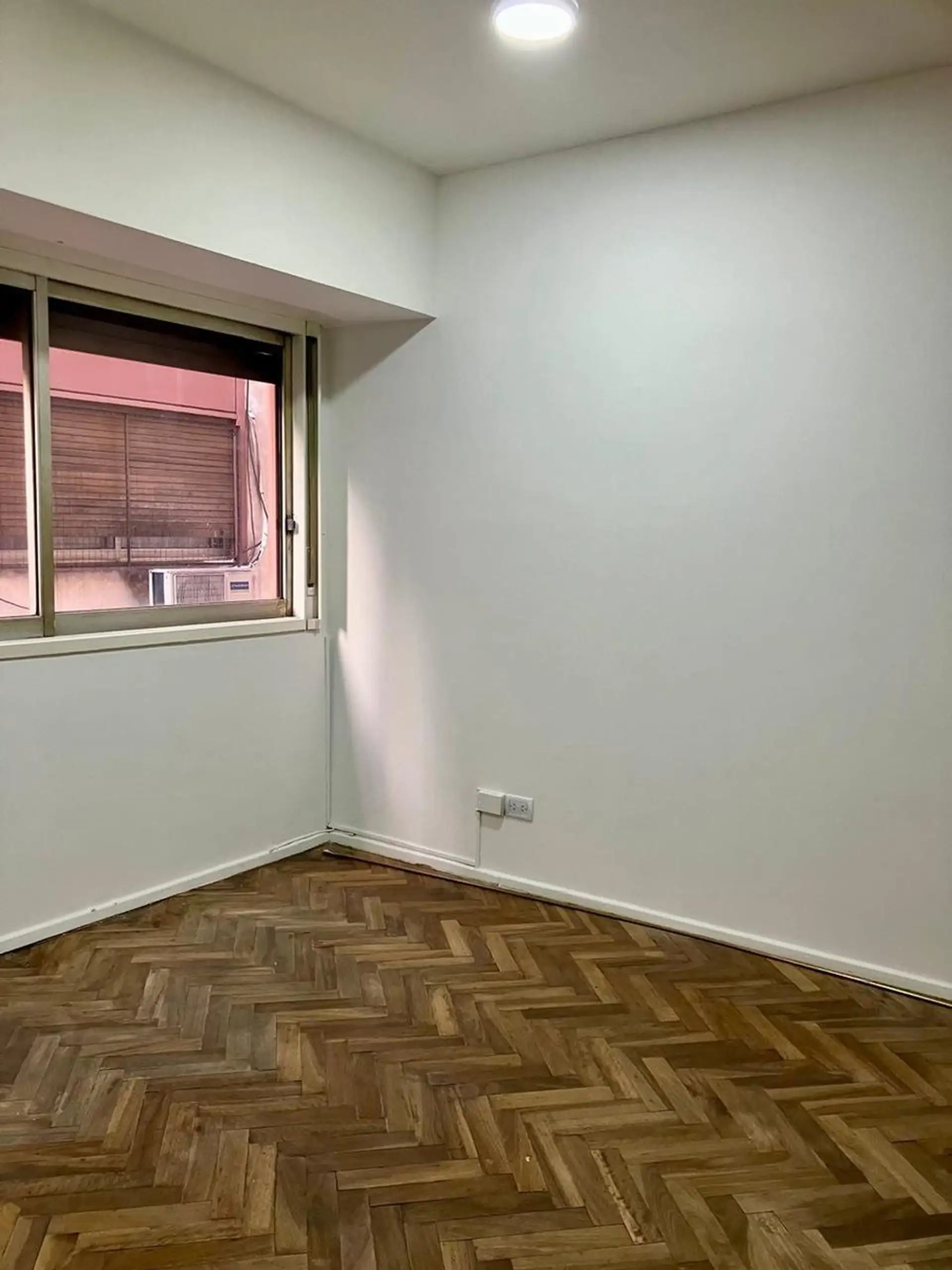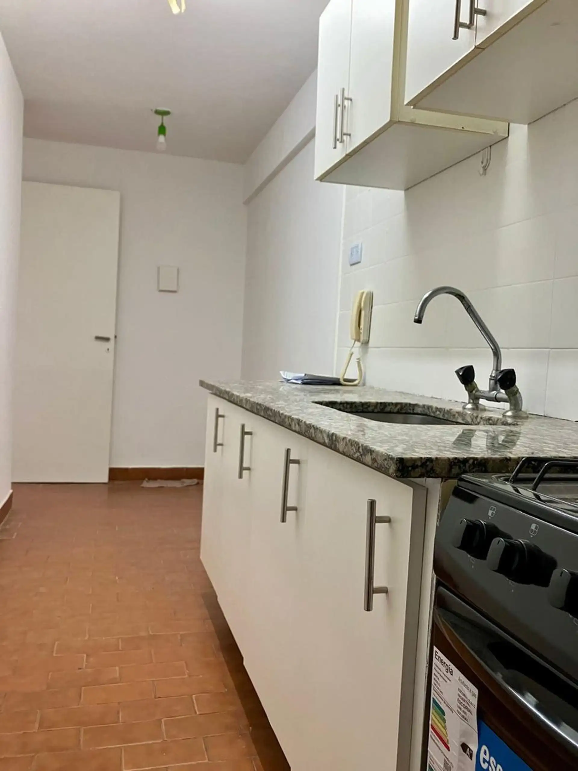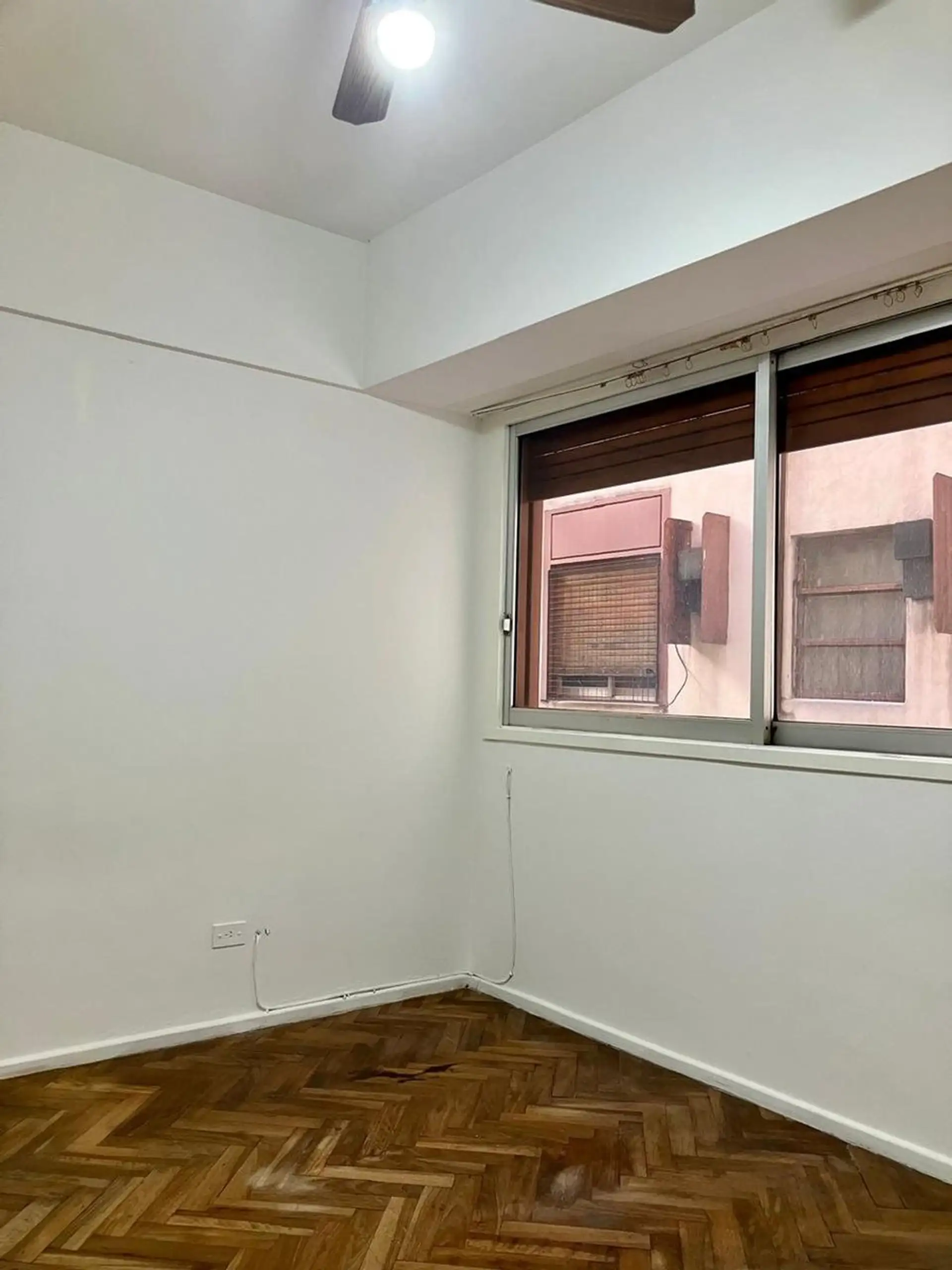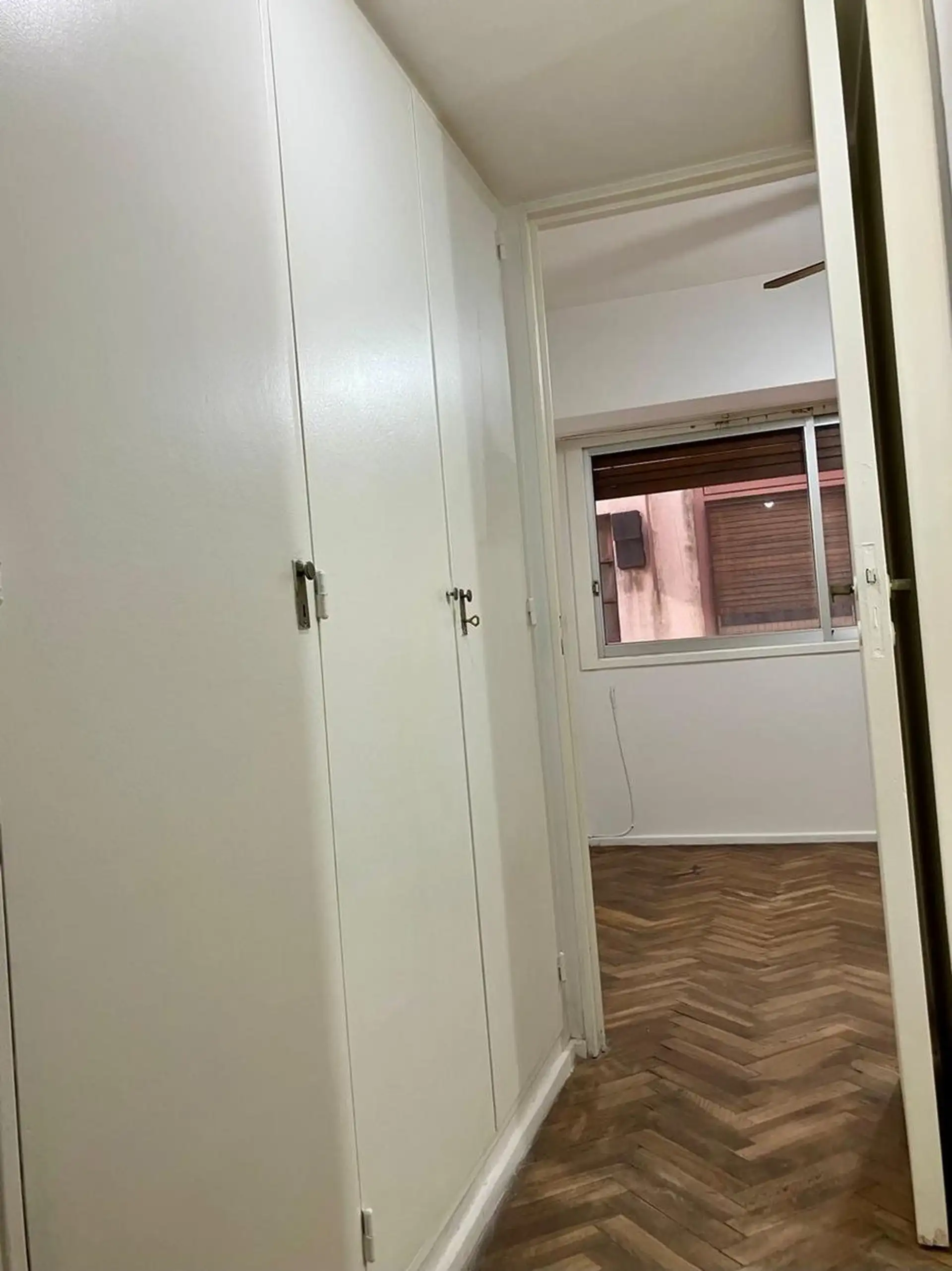 Two-room apartment of 44 m² on the 5th floor, street-facing on Sarmiento, in Balvanera. Living room and bedroom with a separate layout, plus a hallway with a storage closet. Dining kitchen with a separate laundry area, connection for a washing machine, oven and hot-water heater; individual services. Building has a security totem, an on-site caretaker, and several elevators; newly painted and currently vacant. Rental contract is for 2 years.