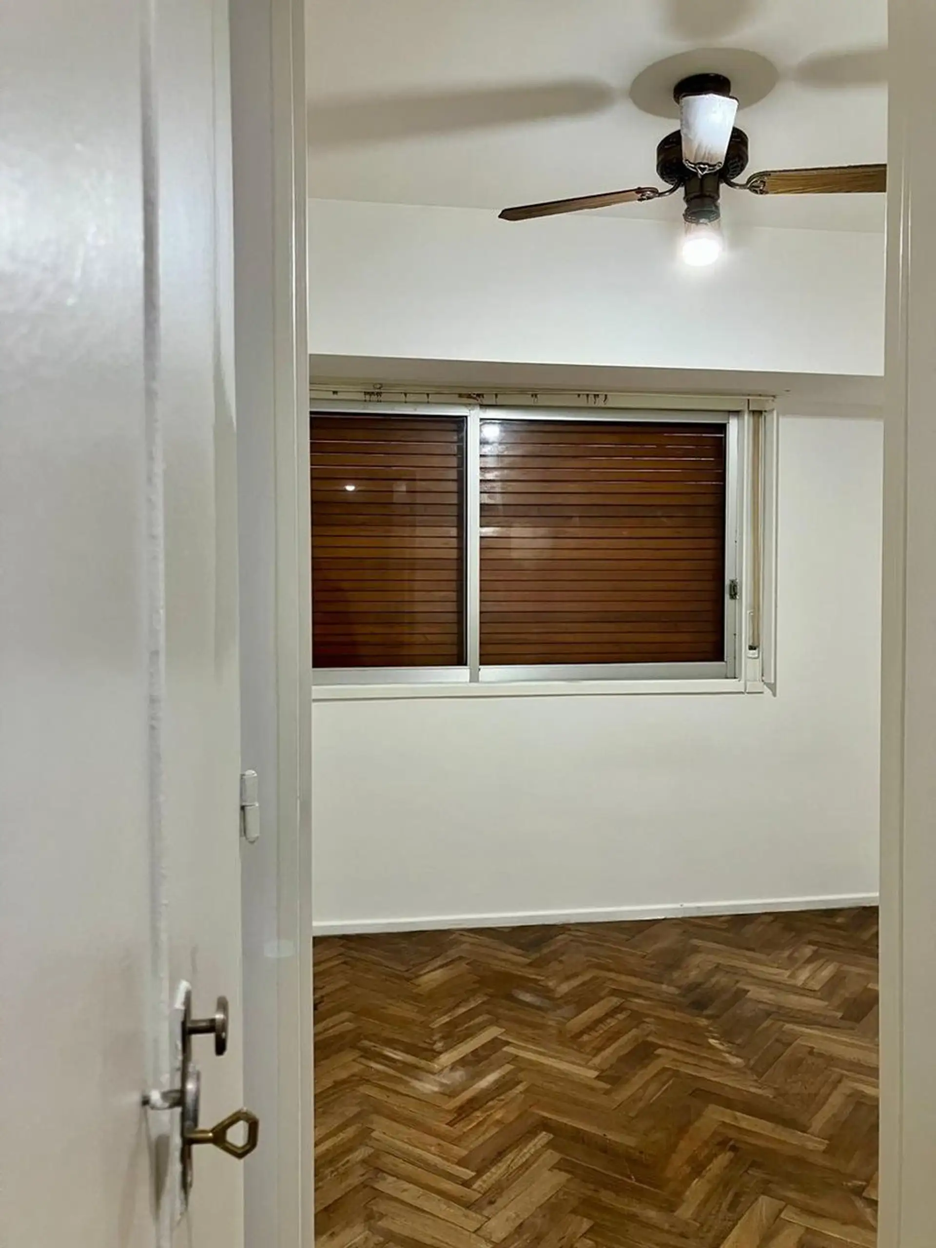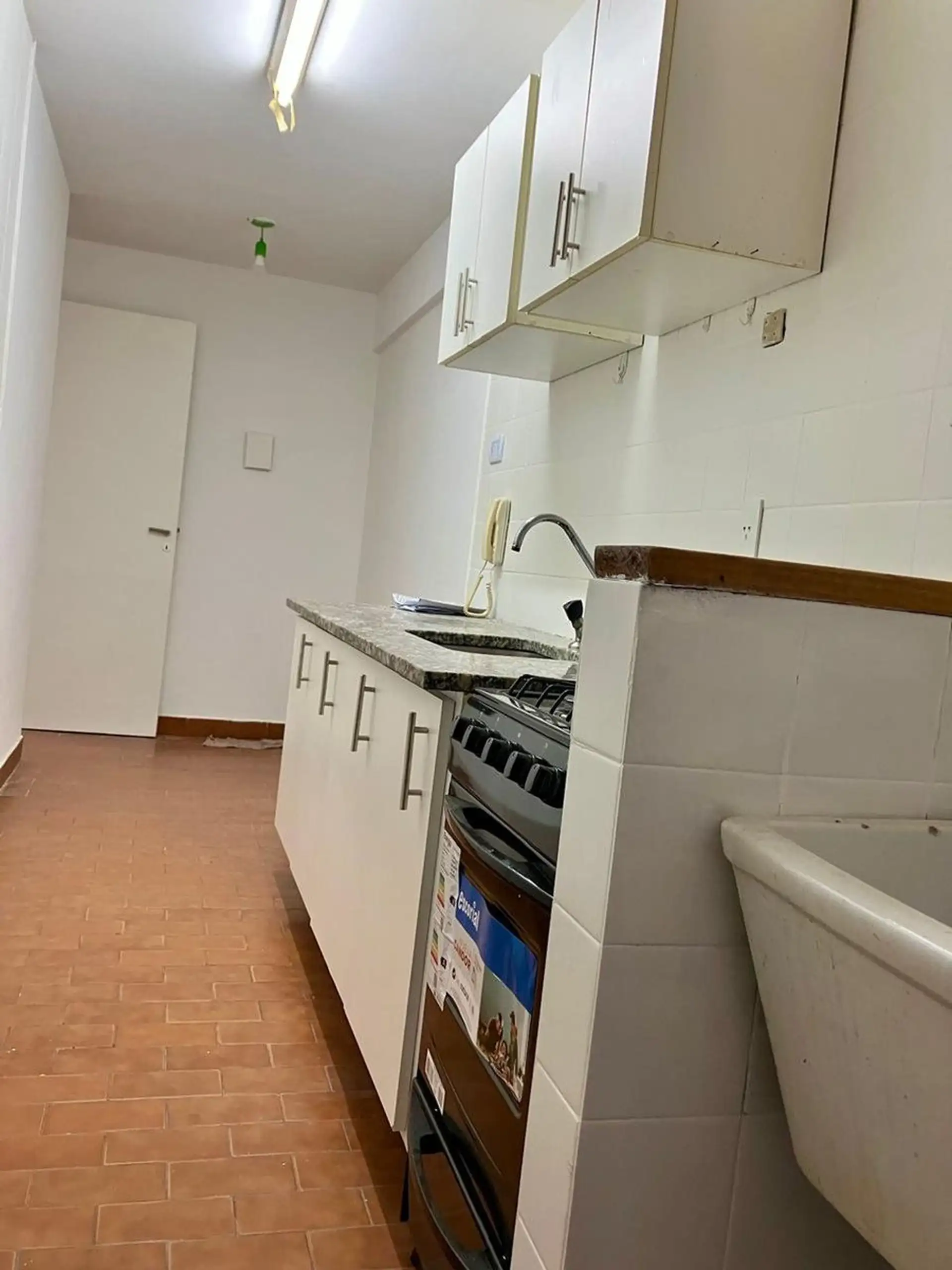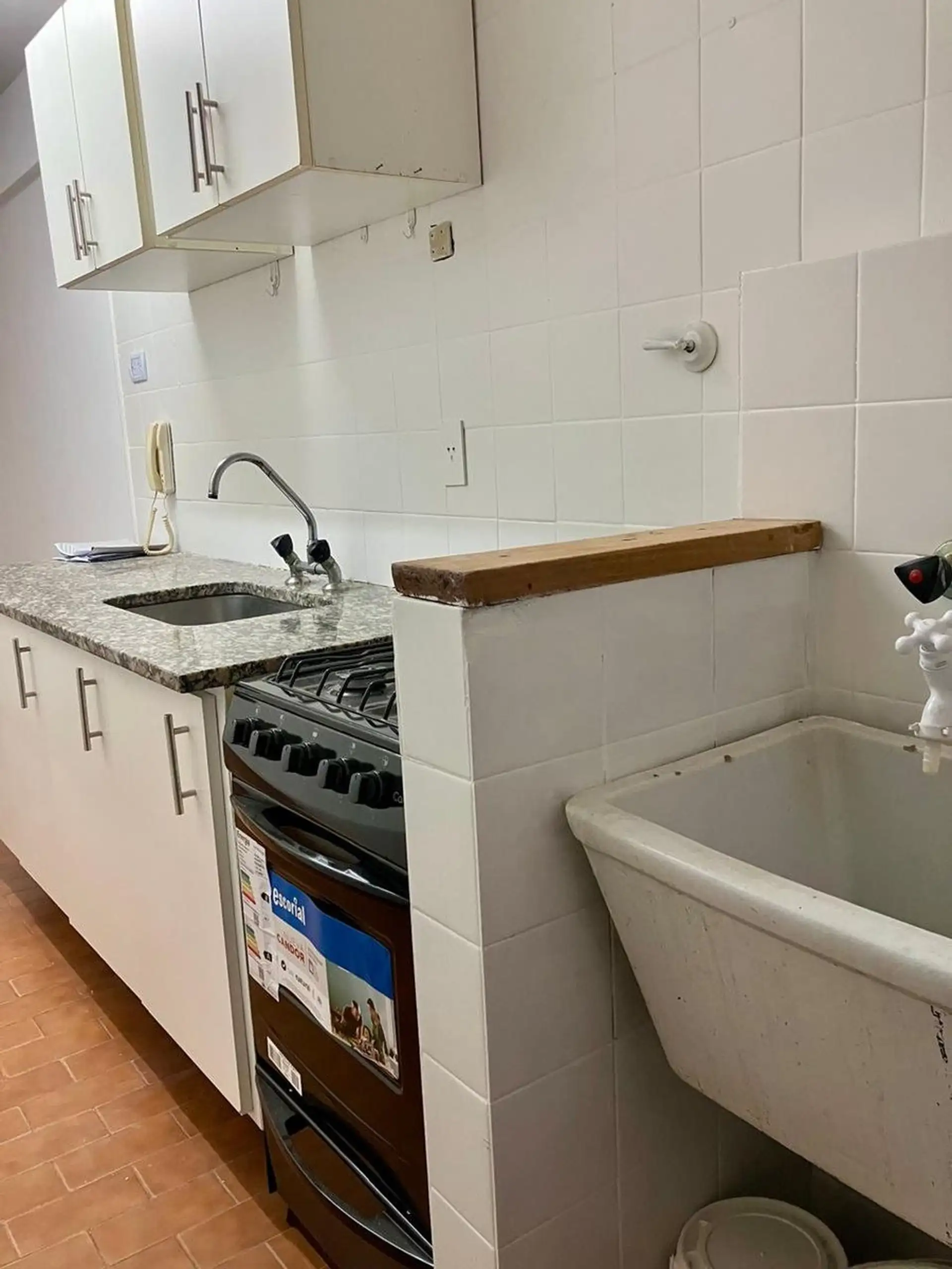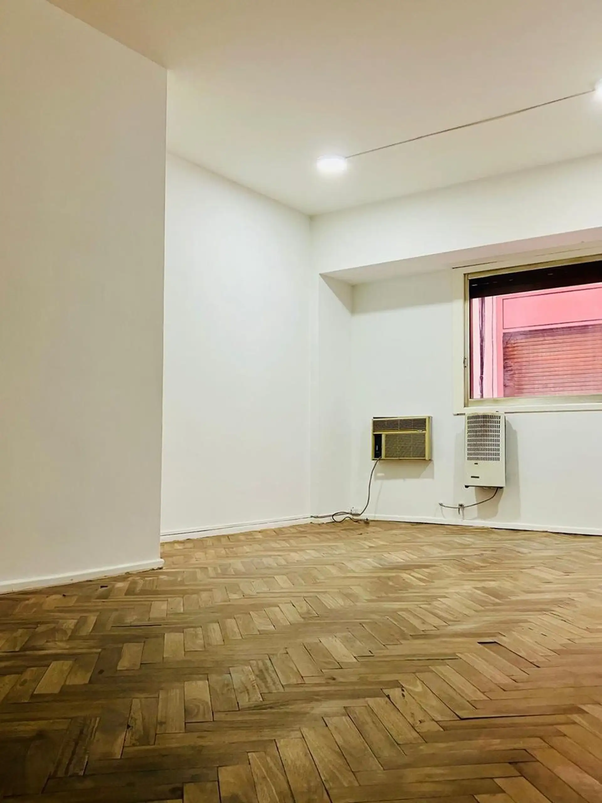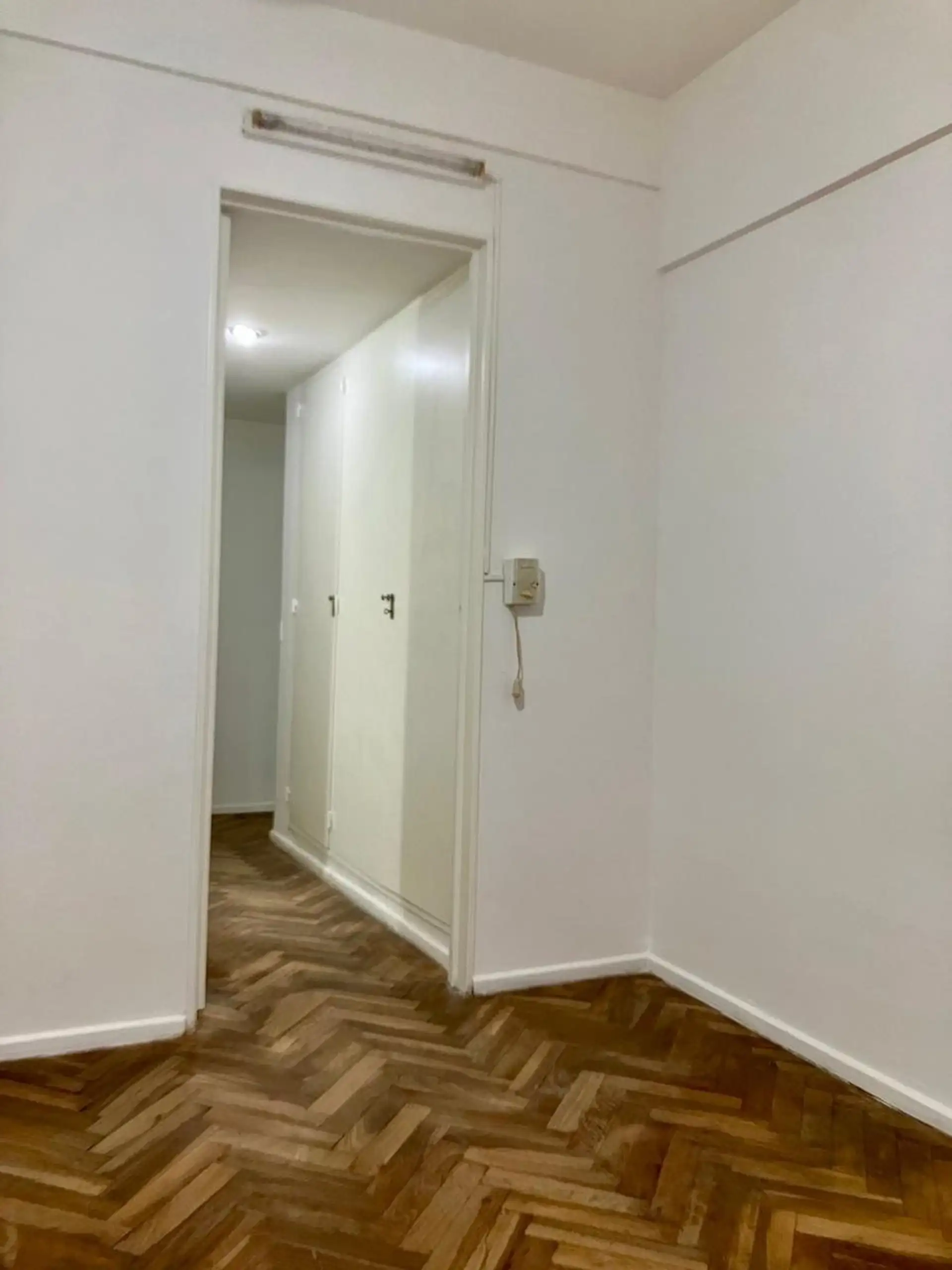 Two-room apartment of 44 m² on the 5th floor, street-facing on Sarmiento, in Balvanera. Living room and bedroom with a separate layout, plus a hallway with a storage closet. Dining kitchen with a separate laundry area, connection for a washing machine, oven and hot-water heater; individual services. Building has a security totem, an on-site caretaker, and several elevators; newly painted and currently vacant. Rental contract is for 2 years.