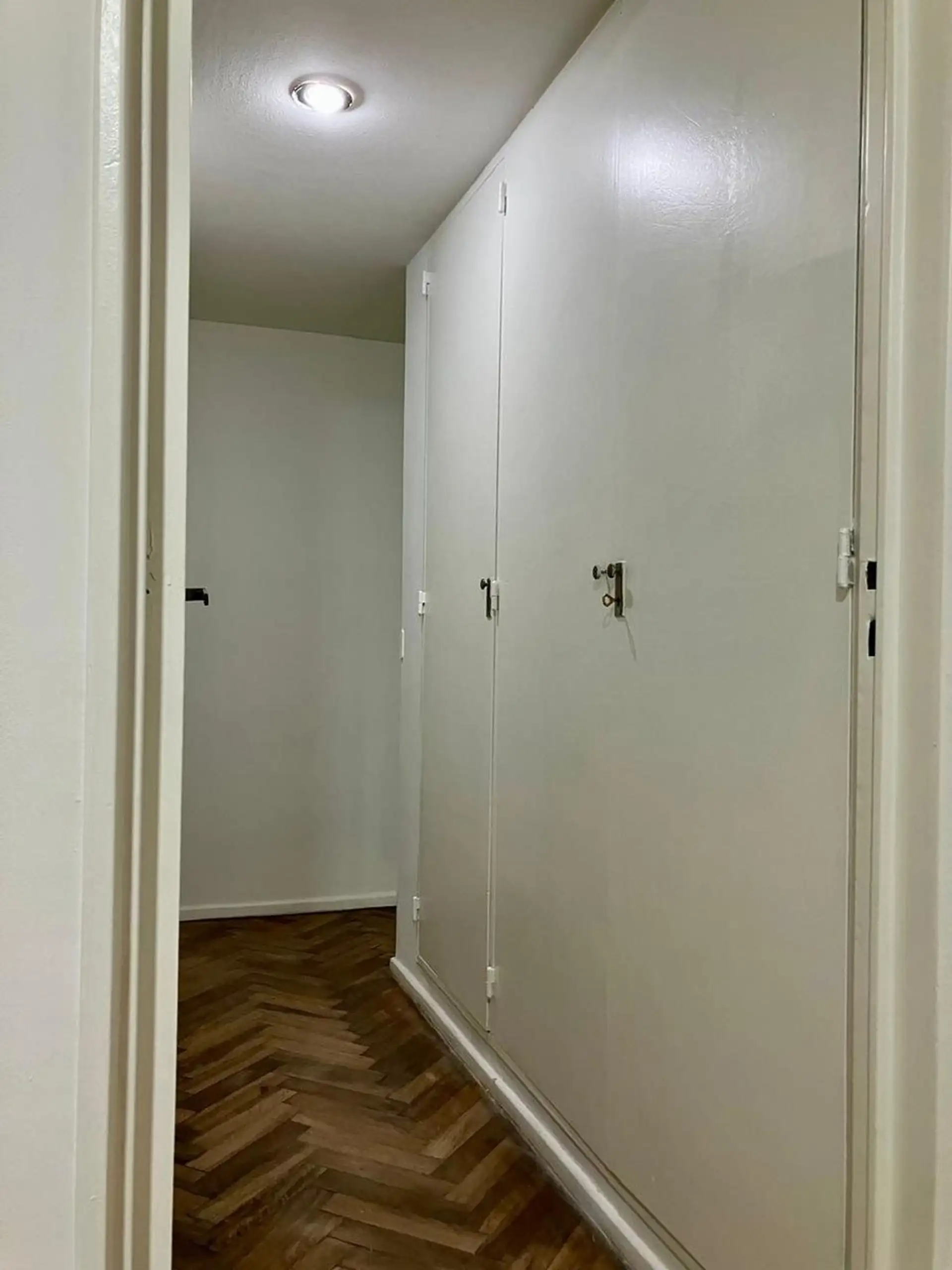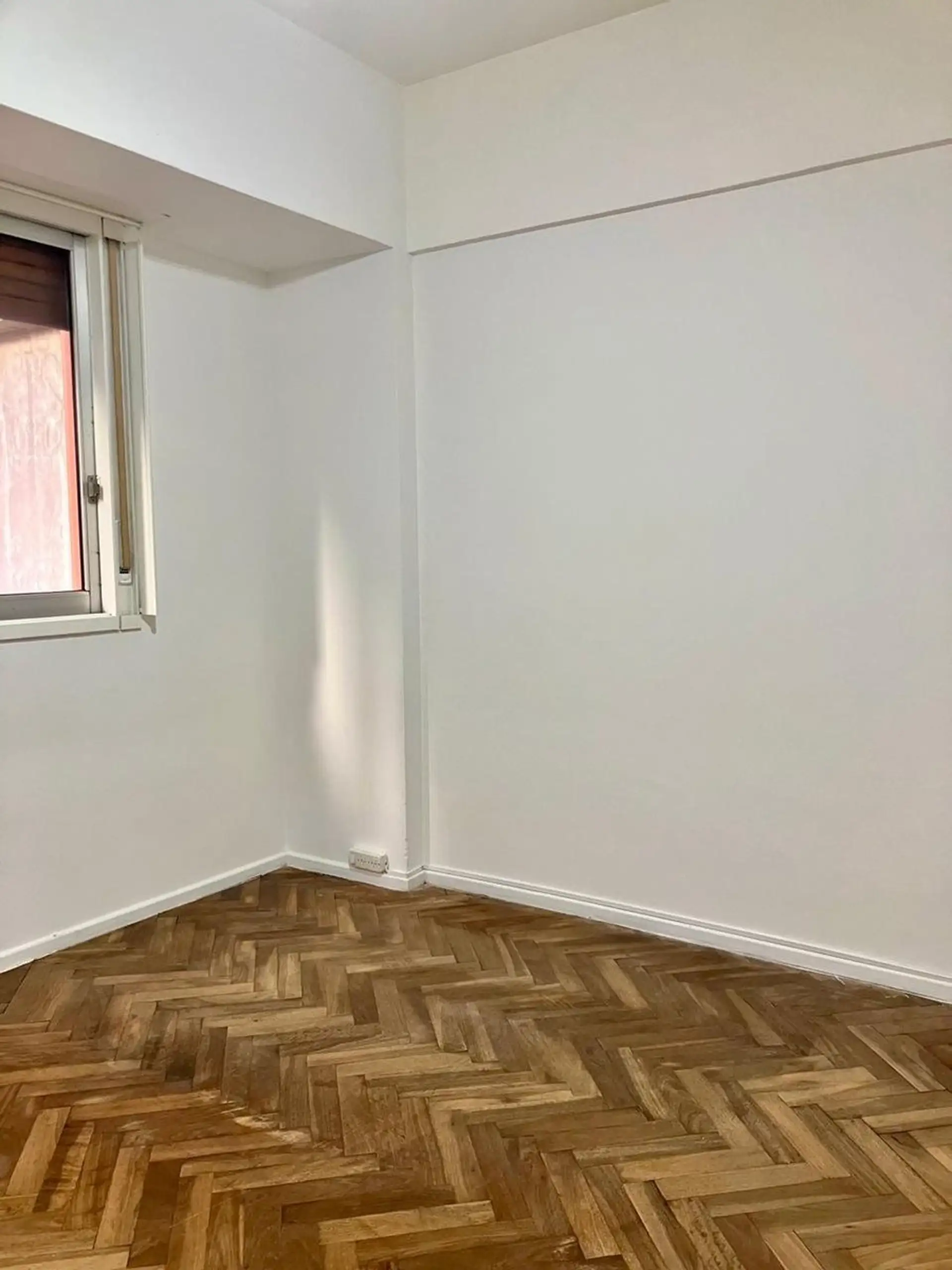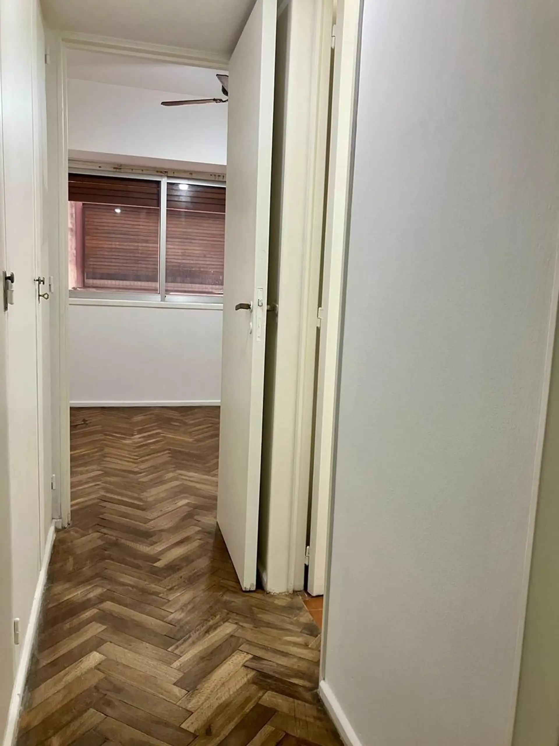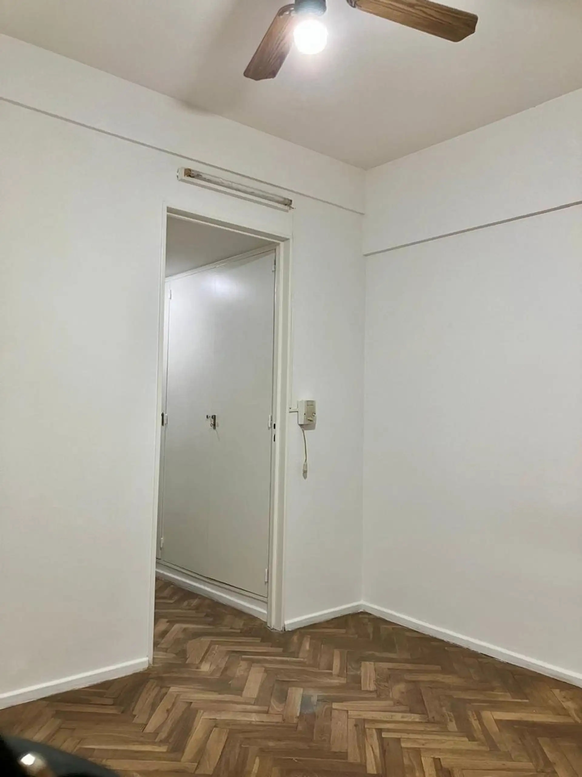 Two-room apartment of 44 m² on the 5th floor, street-facing on Sarmiento, in Balvanera. Living room and bedroom with a separate layout, plus a hallway with a storage closet. Dining kitchen with a separate laundry area, connection for a washing machine, oven and hot-water heater; individual services. Building has a security totem, an on-site caretaker, and several elevators; newly painted and currently vacant. Rental contract is for 2 years.