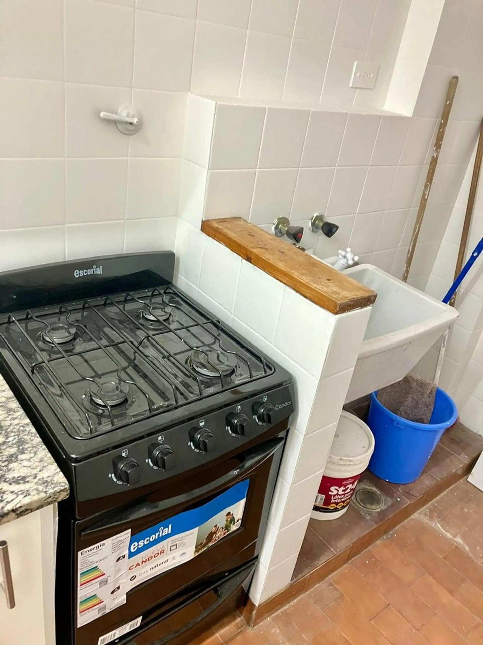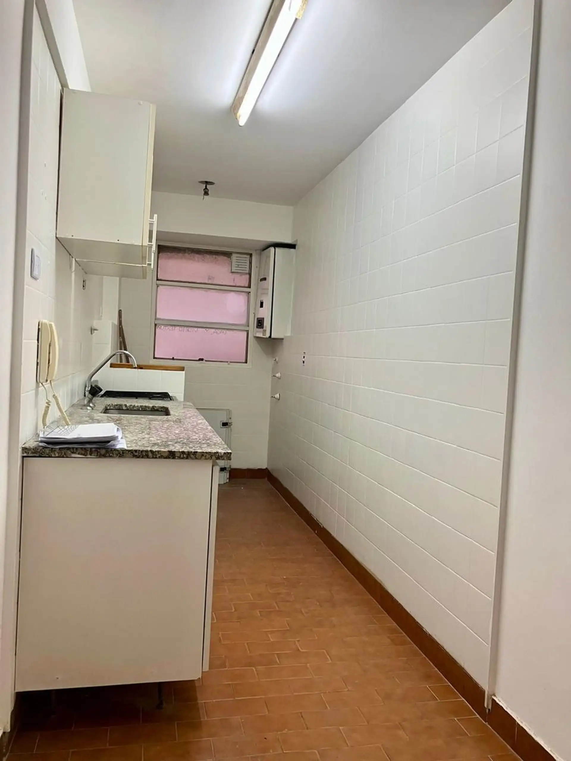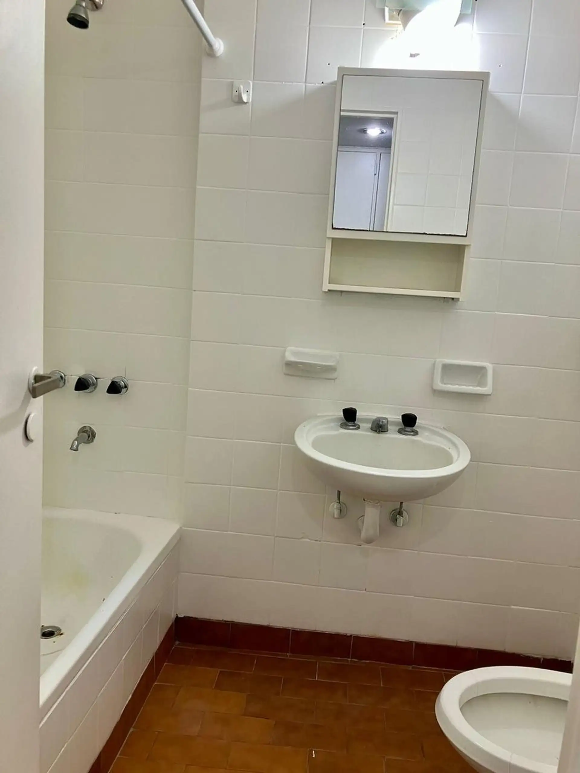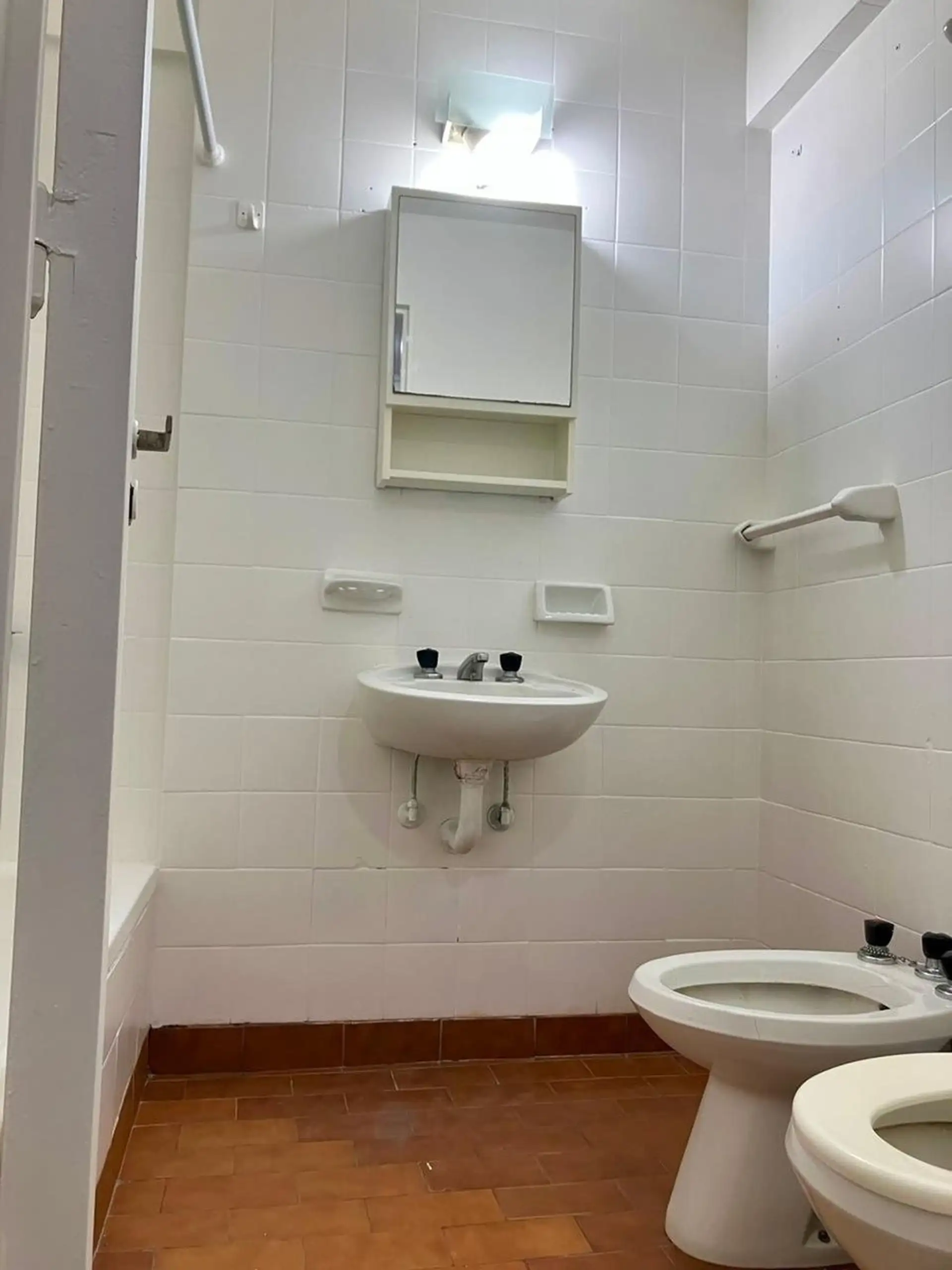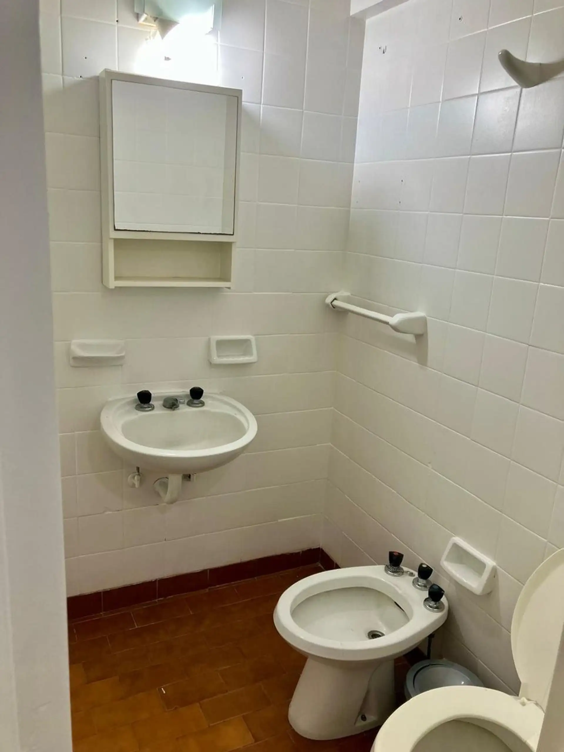 Two-room apartment of 44 m² on the 5th floor, street-facing on Sarmiento, in Balvanera. Living room and bedroom with a separate layout, plus a hallway with a storage closet. Dining kitchen with a separate laundry area, connection for a washing machine, oven and hot-water heater; individual services. Building has a security totem, an on-site caretaker, and several elevators; newly painted and currently vacant. Rental contract is for 2 years.