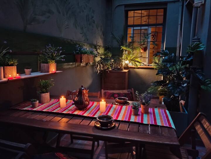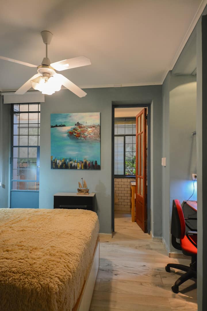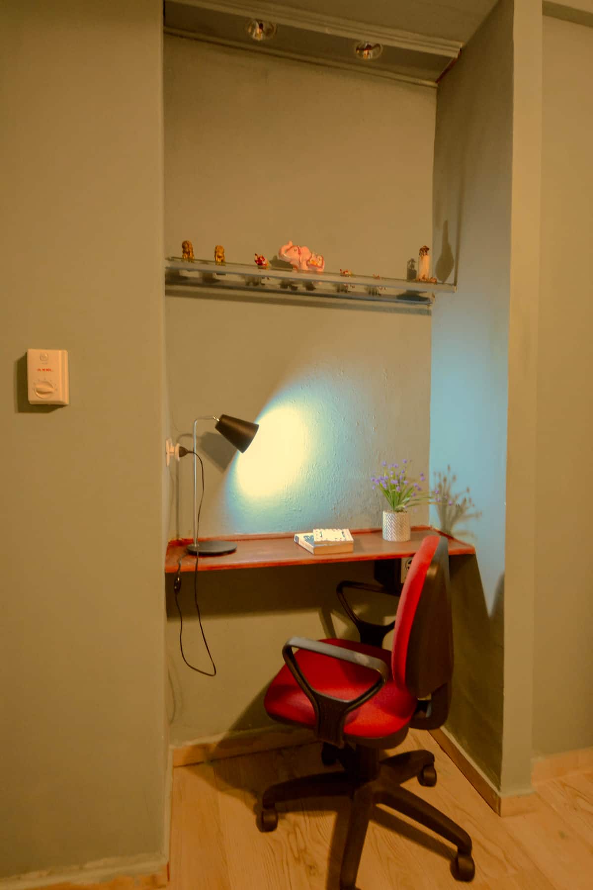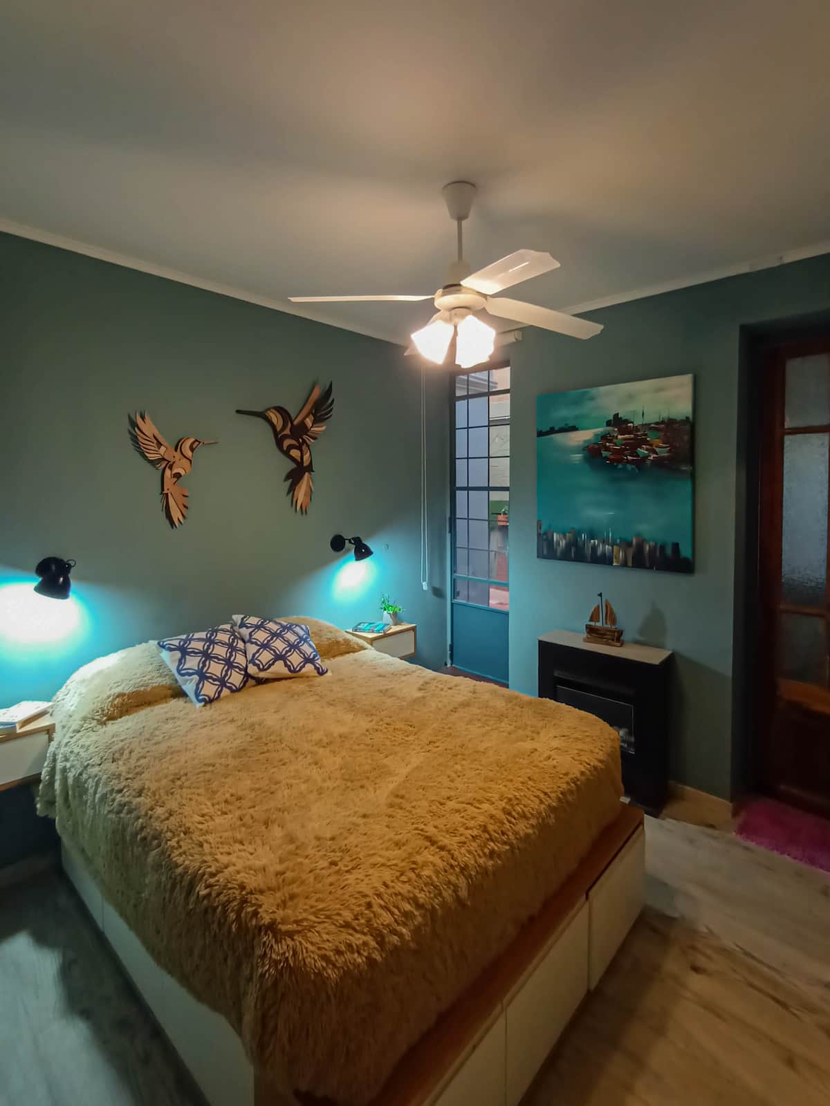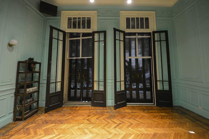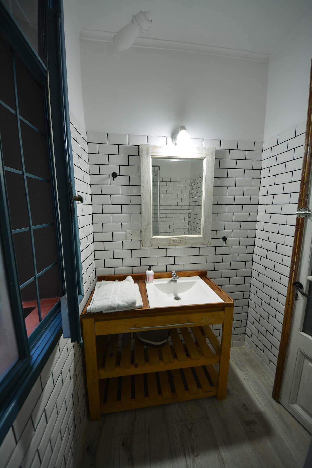 A recently renovated room with a private bathroom. It includes a work area, storage, and access to a private patio, with good internet. Shared spaces include a large kitchen, living room, and a communal room for tango, yoga and other activities, in an area near Lezama Park and the San Telmo market and antiques fair.