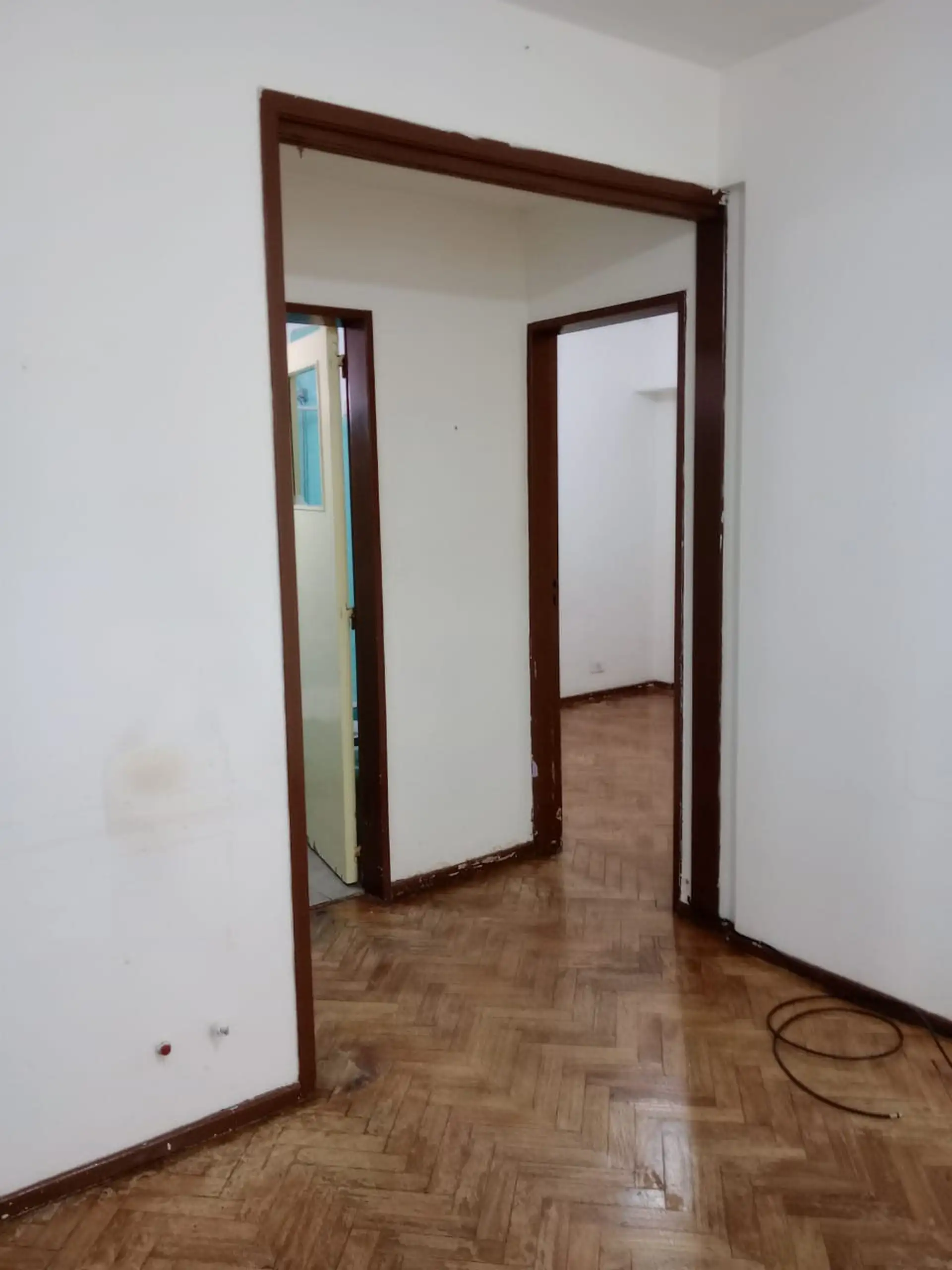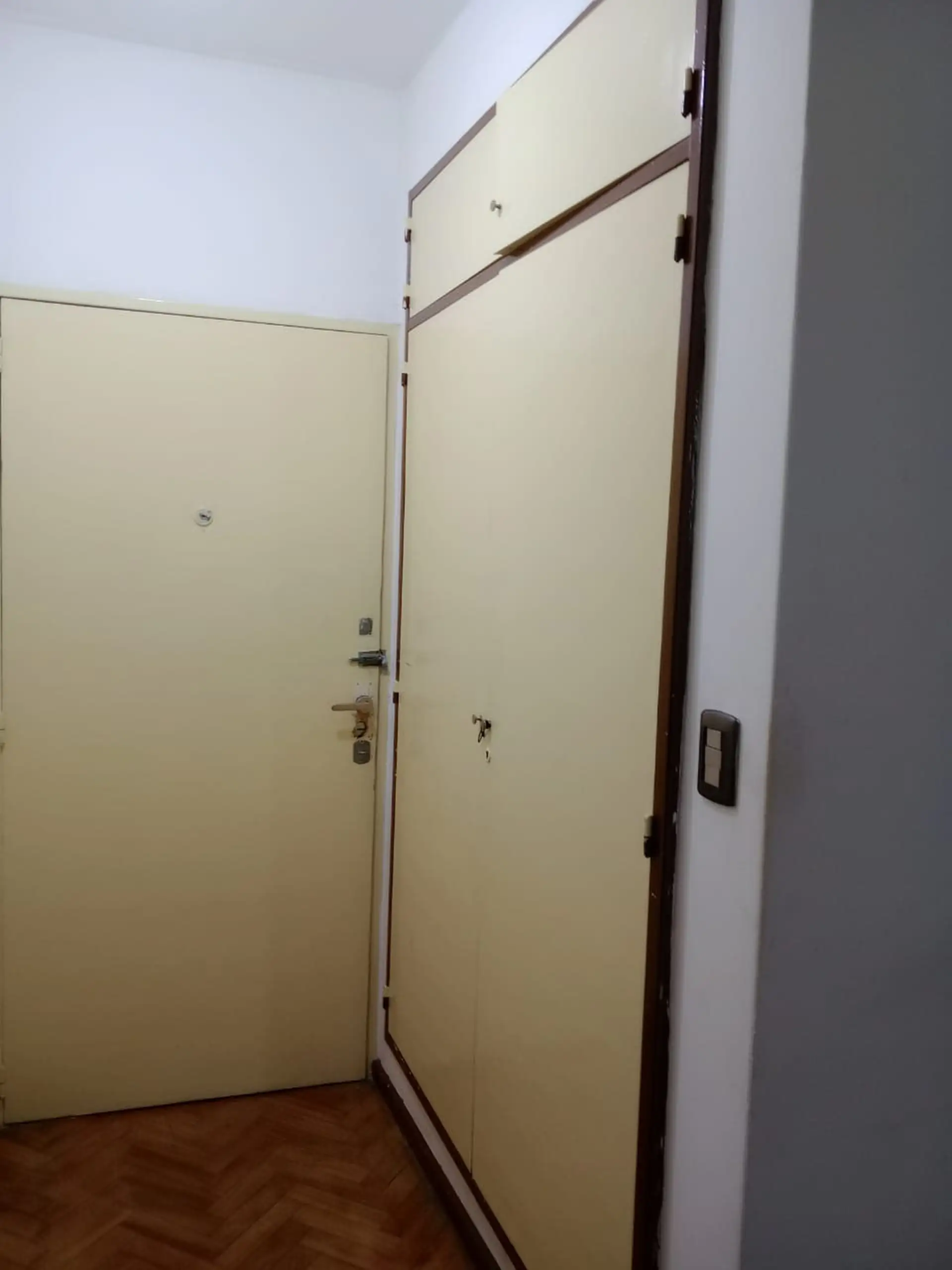 Two-room apartment in Barracas with an internal layout. It includes a kitchen, a full bathroom, built-in closets in the entry hall and bedroom, and a living room with a French balcony. Located one block from Avda Patricios and two blocks from Parque Lezama.