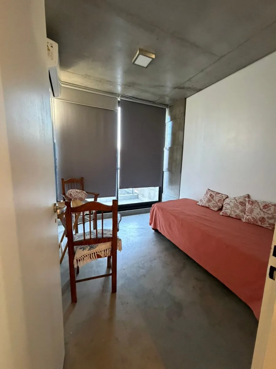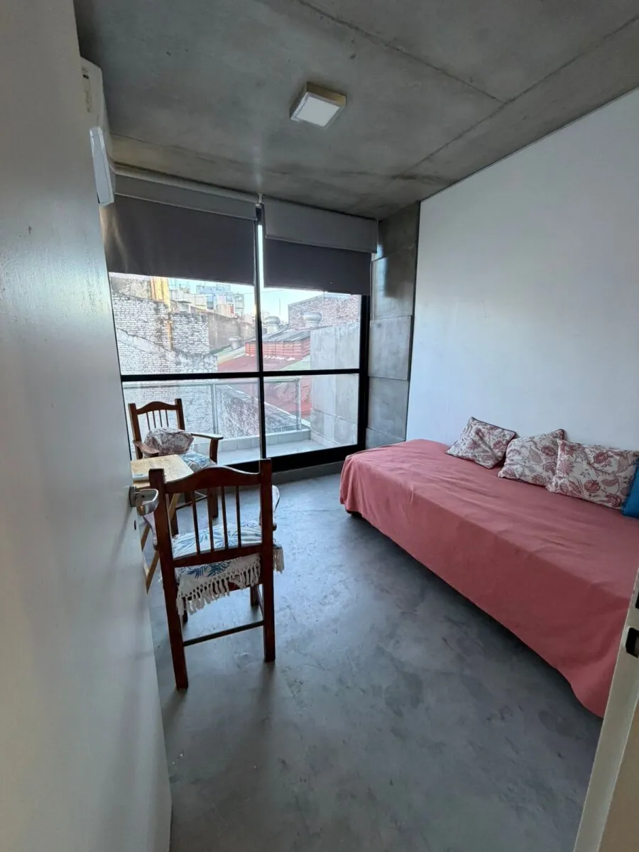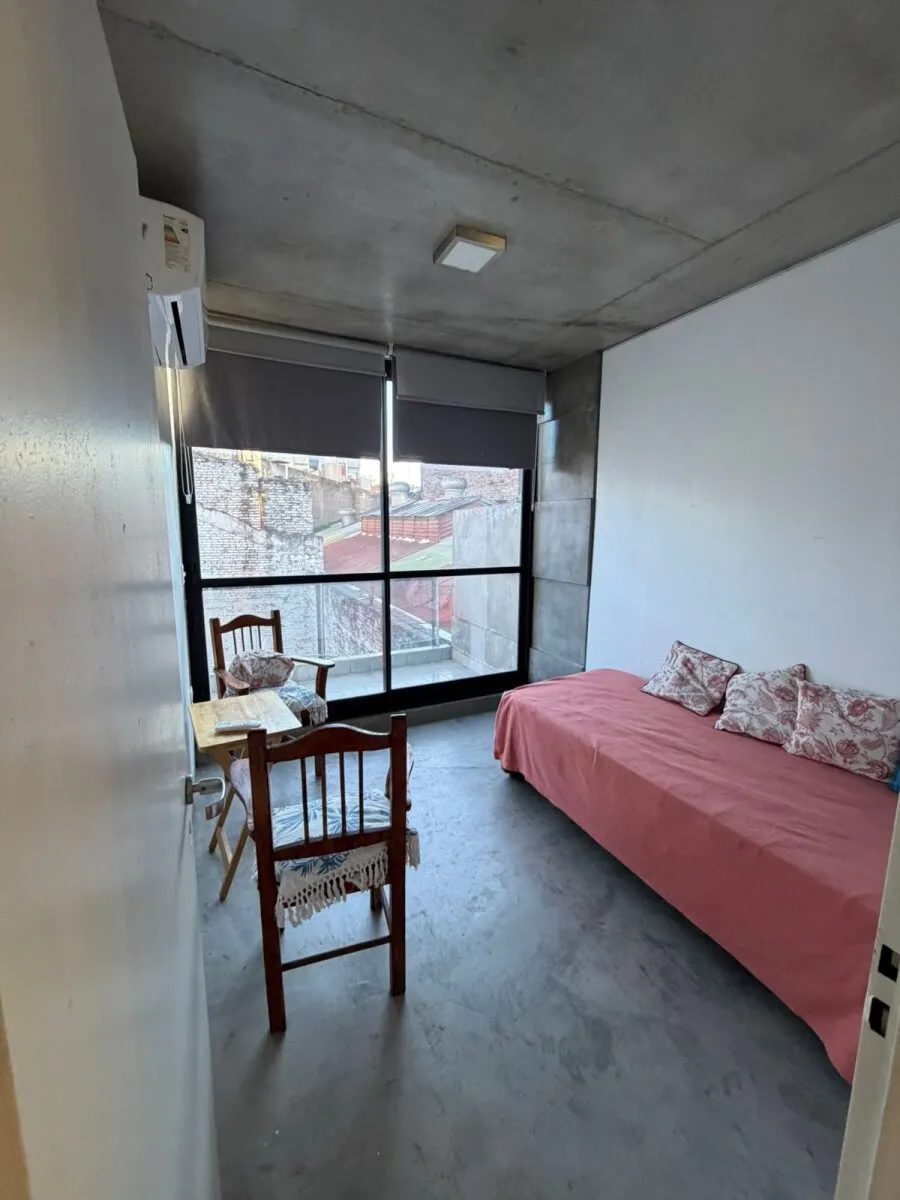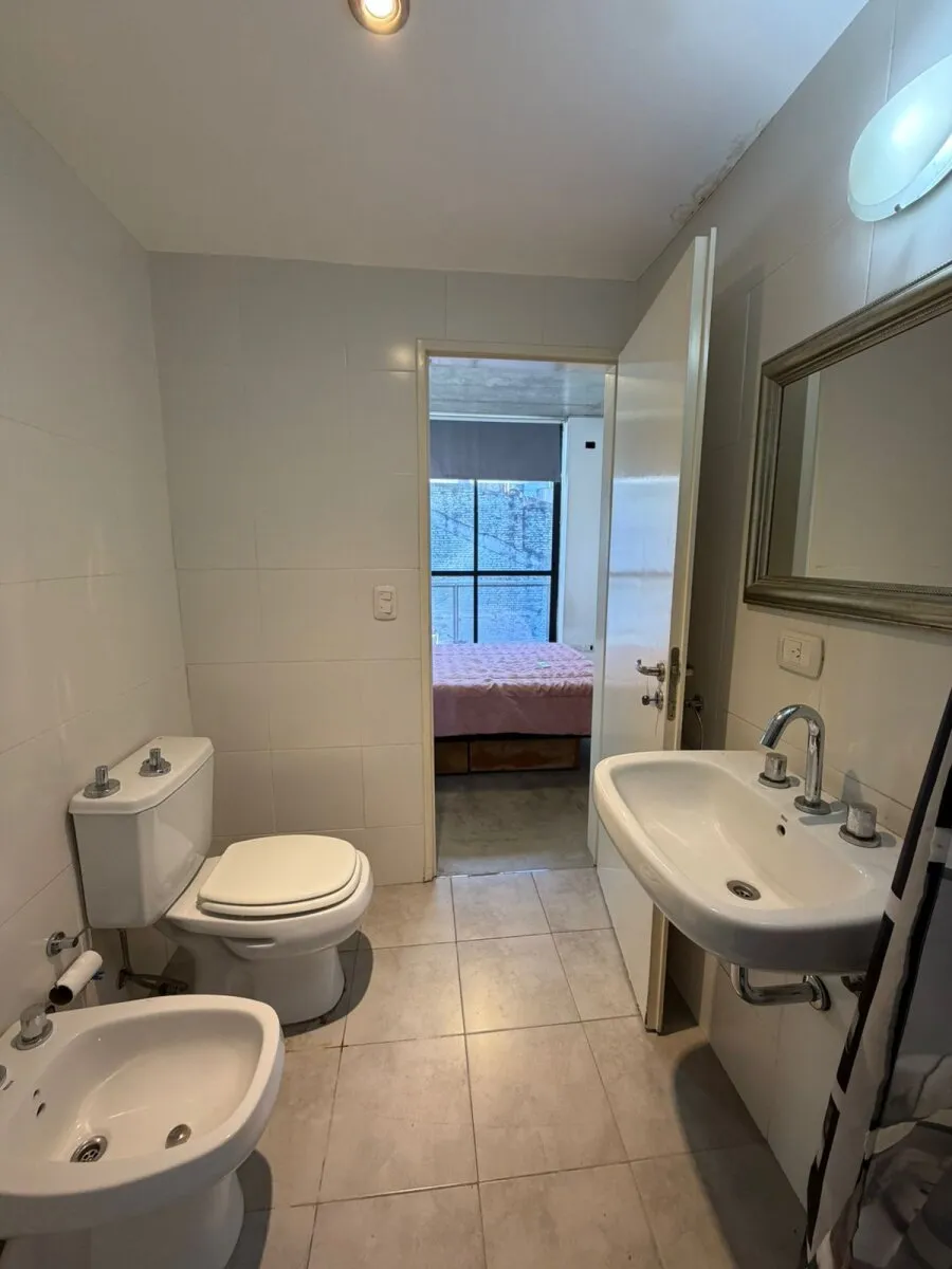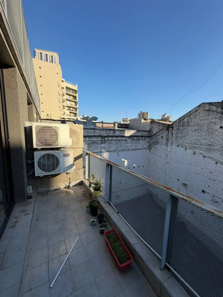 Contrafrente apartment in Barracas with a large balcony and (assigned) parking space. Located on the 3rd floor; 9 years old. The unit has 39 m² total and is semi-equipped, with two split air conditioners (hot/cold) and electrical services. It includes a bedroom en suite with a full bathroom, an additional bedroom, and a reception toilet. Rental requires income documentation and a CABA property guarantee or, alternatively, a rental guarantee insurance.