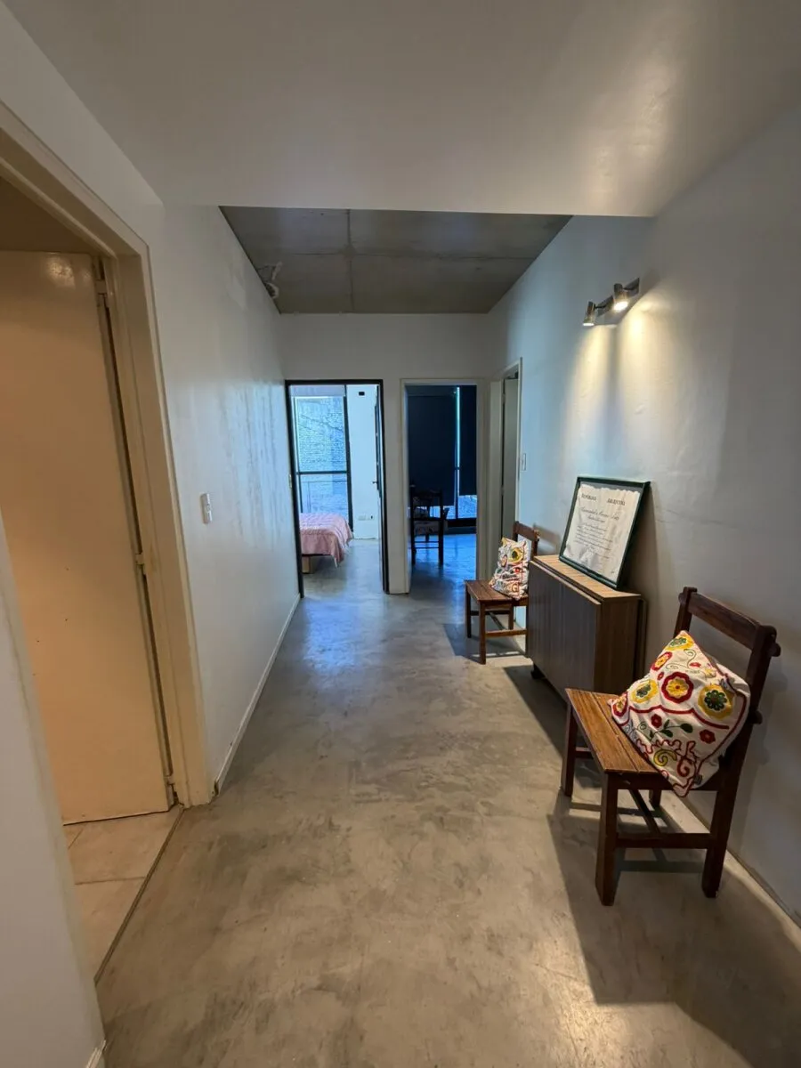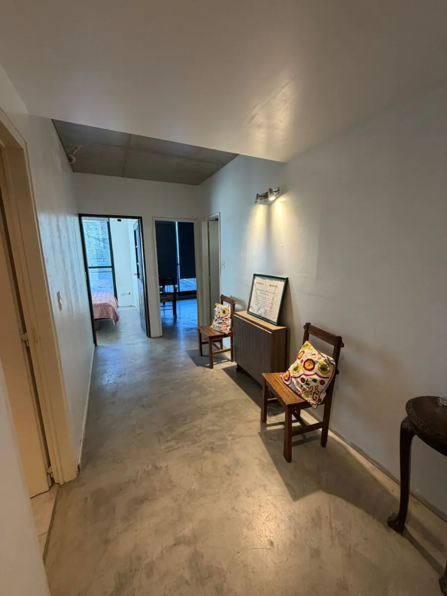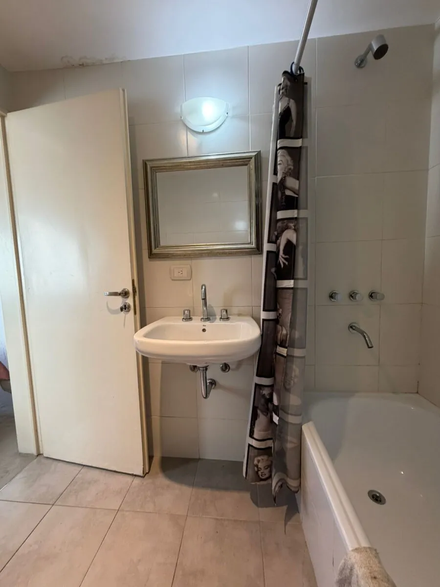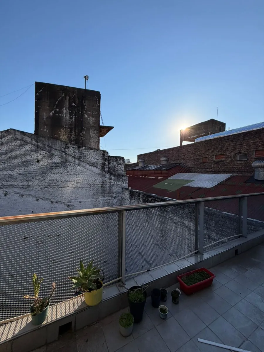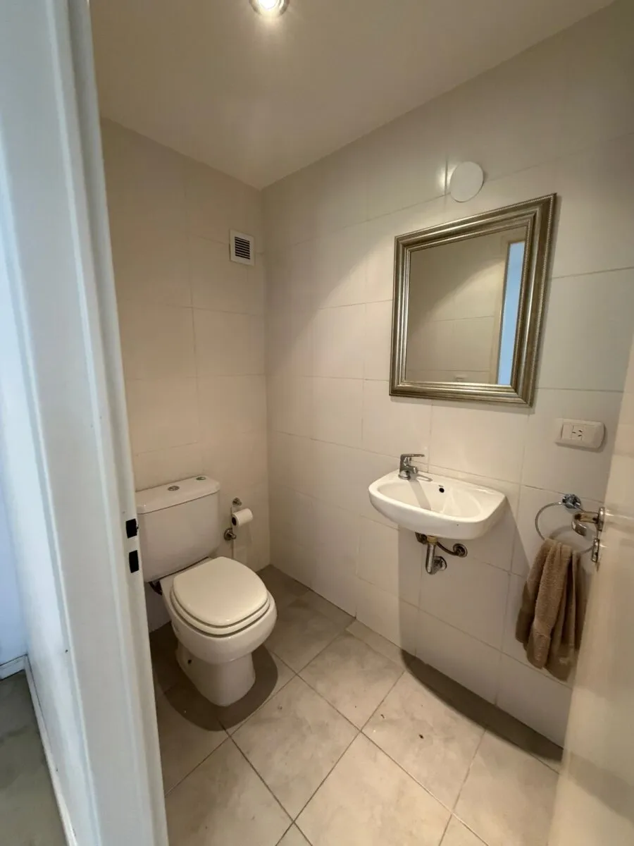 Contrafrente apartment in Barracas with a large balcony and (assigned) parking space. Located on the 3rd floor; 9 years old. The unit has 39 m² total and is semi-equipped, with two split air conditioners (hot/cold) and electrical services. It includes a bedroom en suite with a full bathroom, an additional bedroom, and a reception toilet. Rental requires income documentation and a CABA property guarantee or, alternatively, a rental guarantee insurance.
