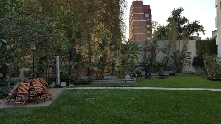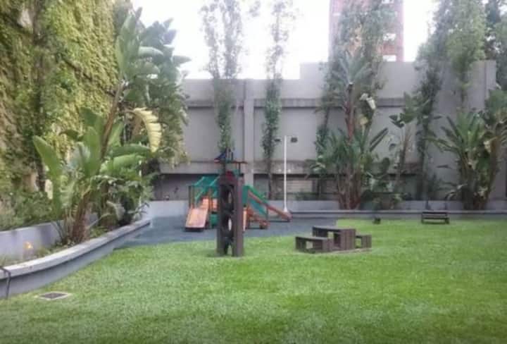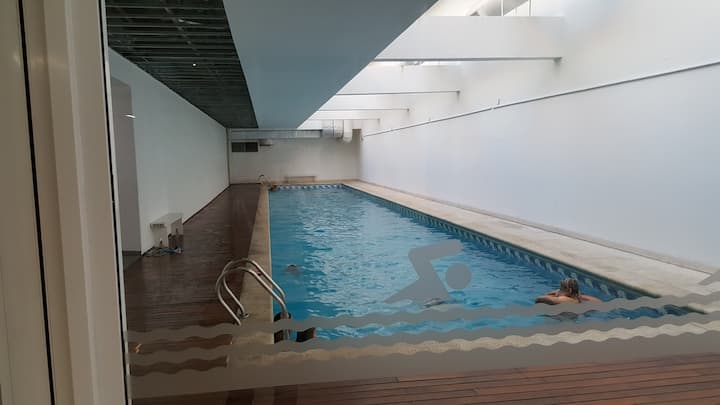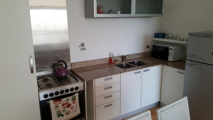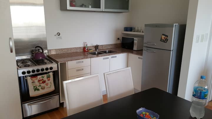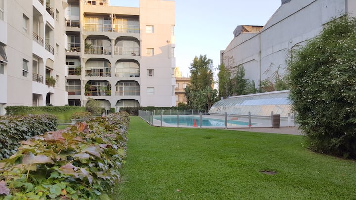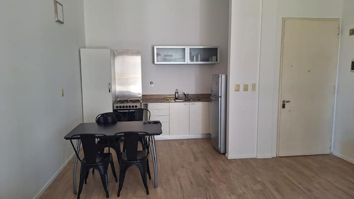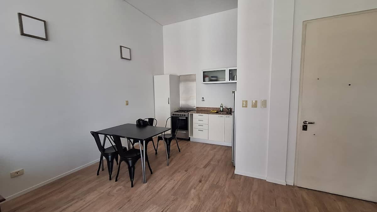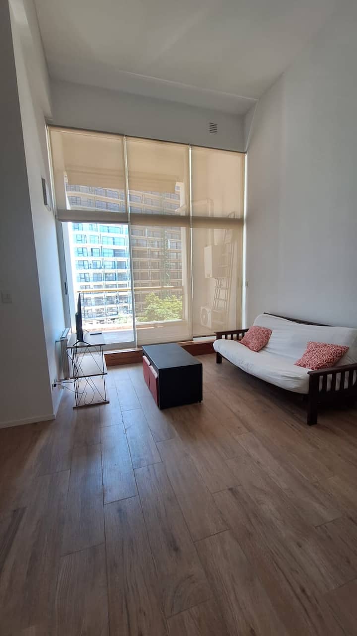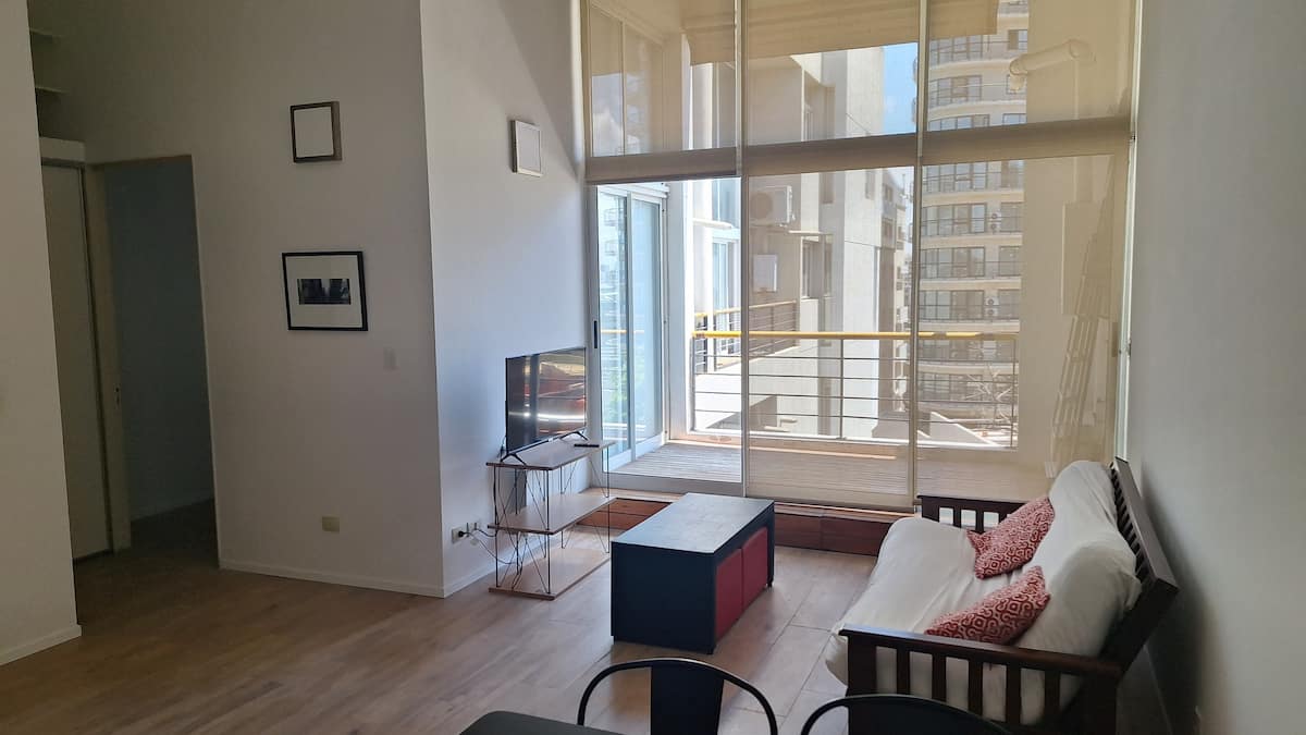 48 m² apartment in the MOCA building in Barracas, with high ceilings. It includes a living-dining area open to the kitchen, one bedroom, one full bathroom with a shower and bathtub, and a balcony. The kitchen is fully equipped and has a freezer and microwave. Building amenities include 24/7 security, two semi-Olympic pools (one heated indoor and one uncovered), a gym, a spa with sauna and whirlpool, a game room, a laundry room, grills, and a park.