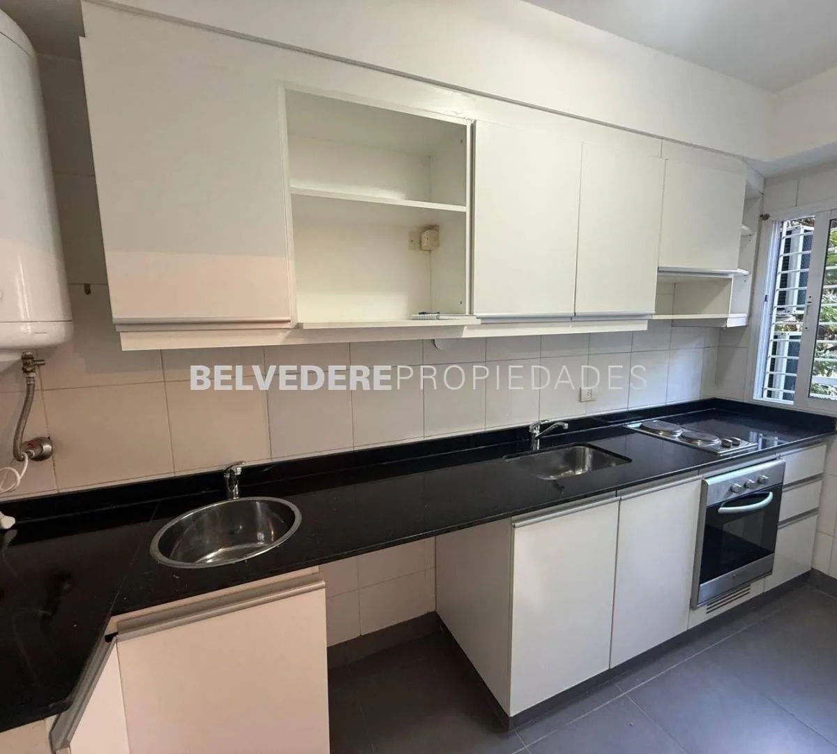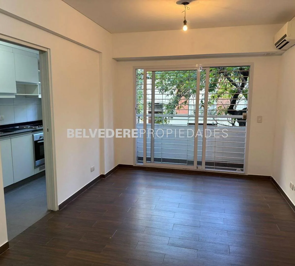 Two-room apartment on the first floor in Barracas, street-facing. 1 bedroom and a full bathroom, in good condition. Living-dining room with fríocalor air conditioning; separate kitchen equipped with a cooktop (anafe) and built-in electric oven. Bedroom with split fríocalor and built-in wardrobe. Building amenities include a pool, communal SUM and a grill.