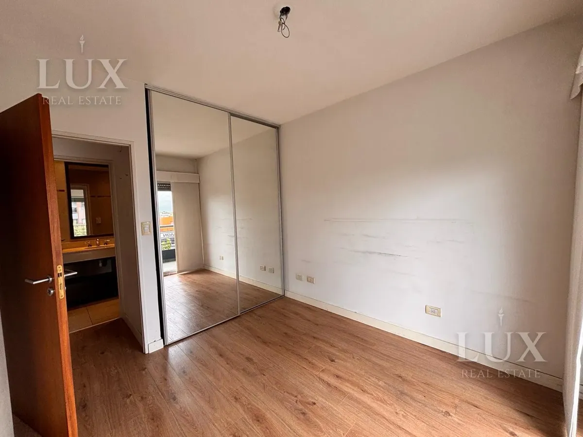 Two-room apartment for rent in Barracas, unfurnished. It includes 1 bedroom and a living-dining room with access to a continuous front balcony. Integrated kitchen with breakfast bar and connection for a washing machine; full bathroom with bathtub. Covered (assigned) parking space. Building amenities include a gym and a pool with sun deck. Terms include a 2-year contract, verifiable income, owner guarantee bond, and a quarterly rent increase indexed to IPC; pets are not allowed.
