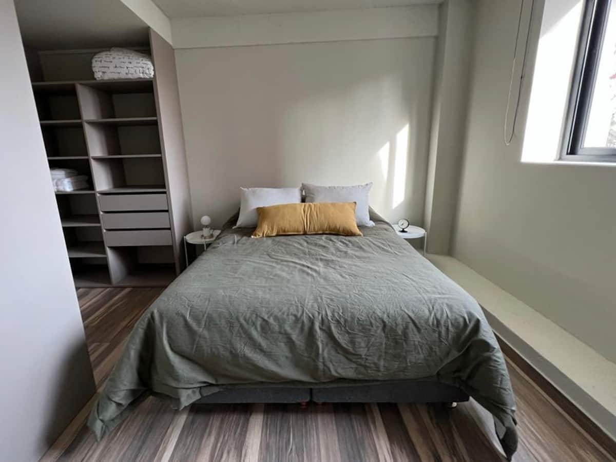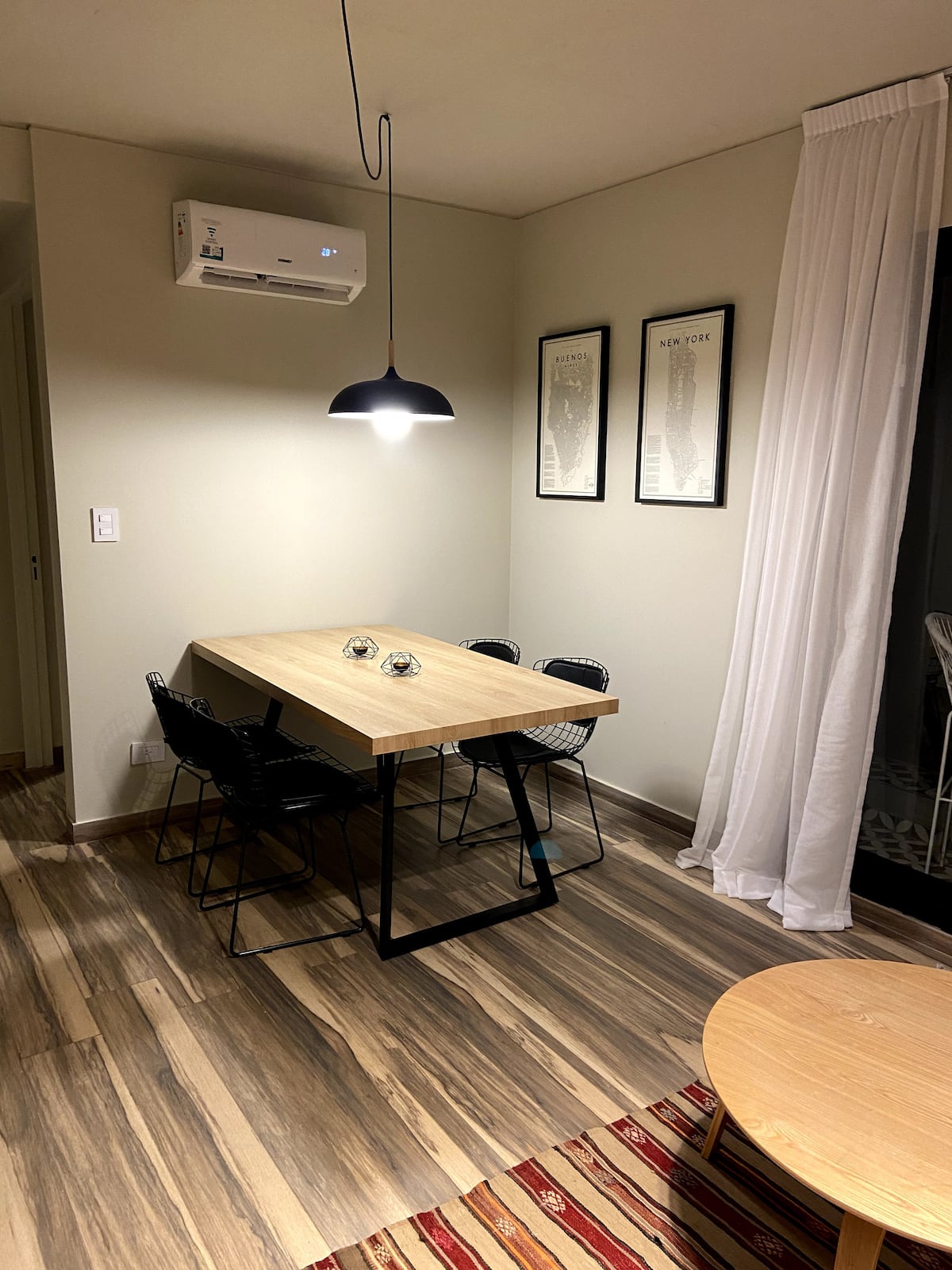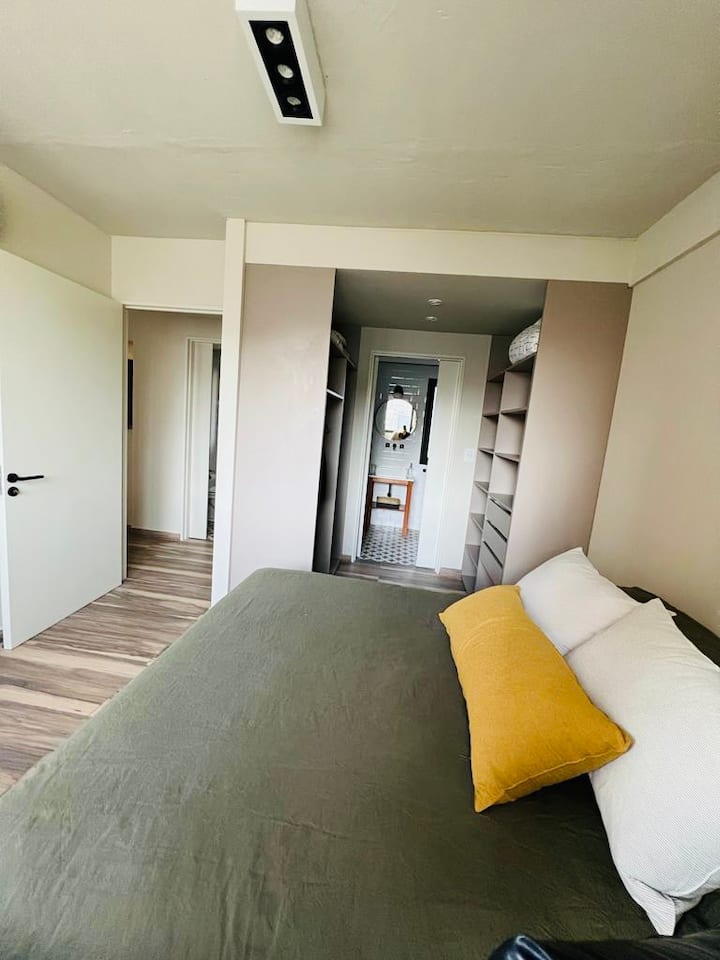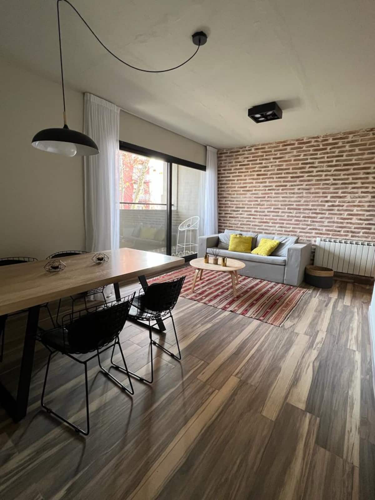 New designer apartment in the La Galerie residential complex in San Telmo, street-facing with a balcony. It includes a fully equipped kitchen, capacity for 4 people, and access to a terrace pool for stays of 3 nights or more. Building amenities include a communal room with WiFi, SUM, laundry, gym, 24-hour security, and a solarium, with elevator access.