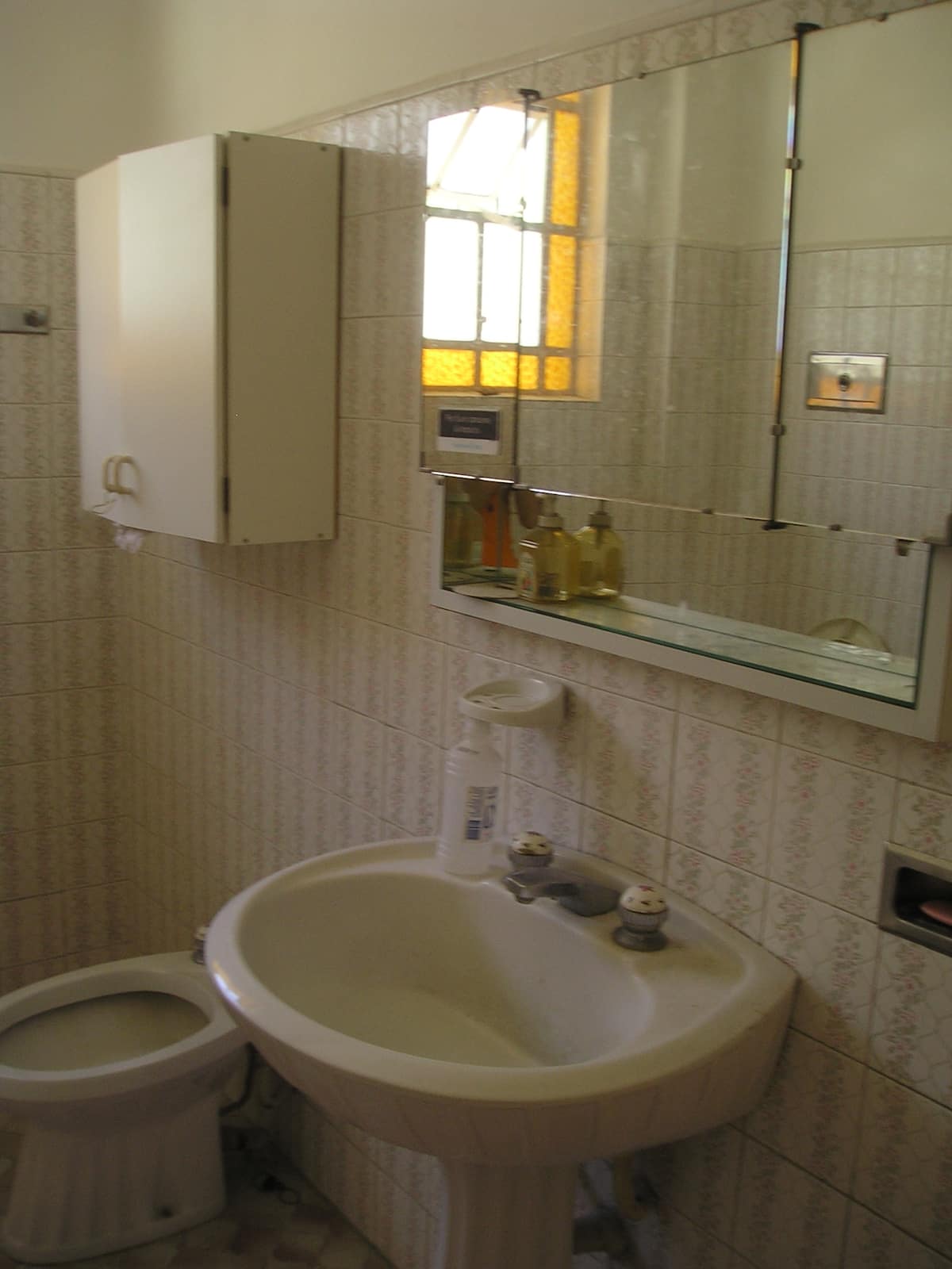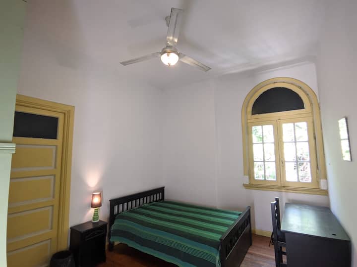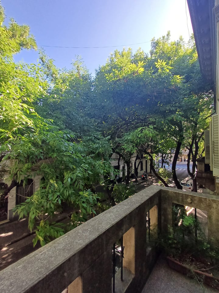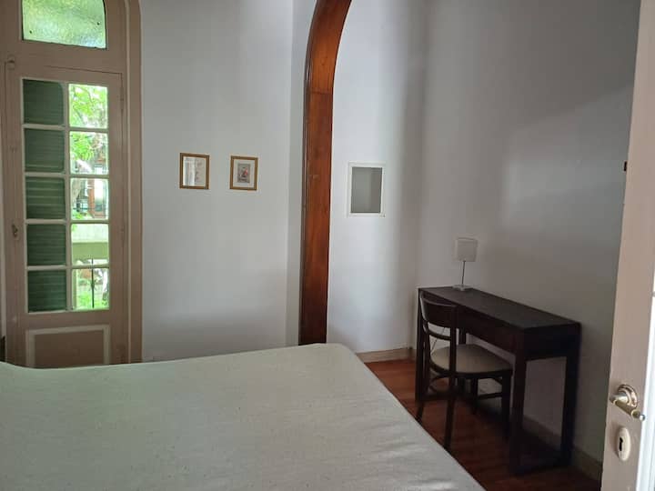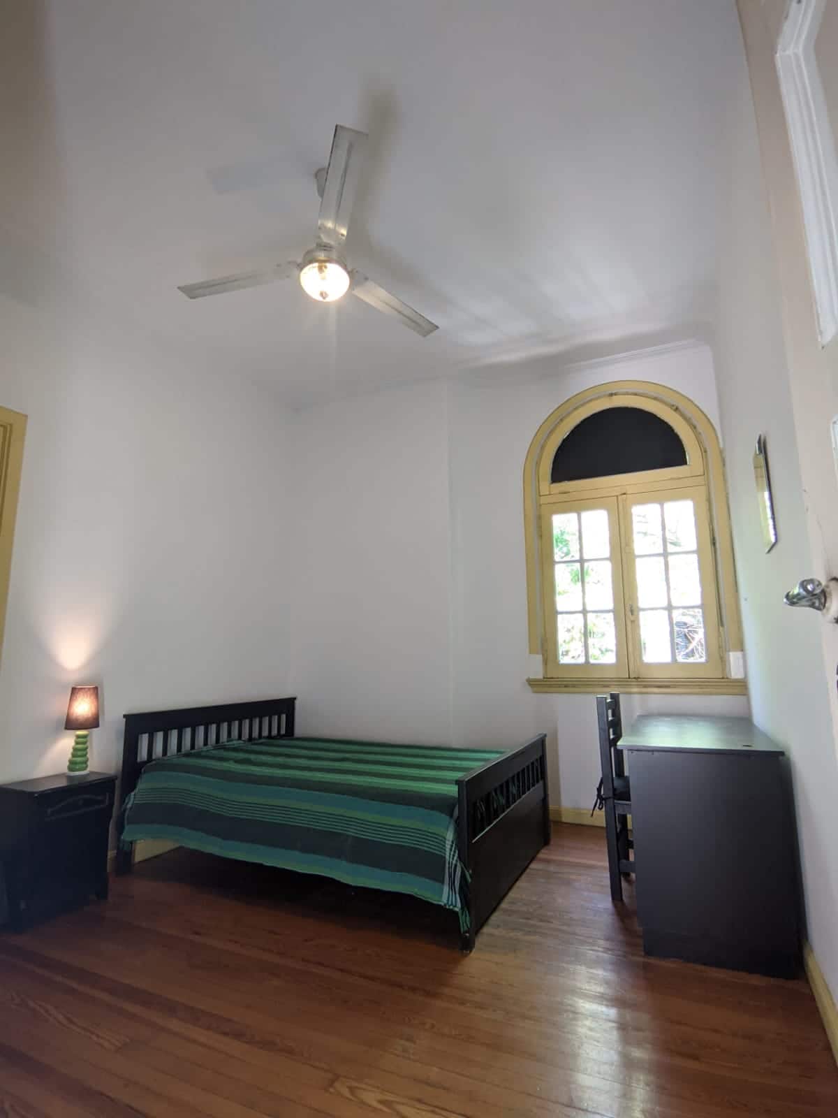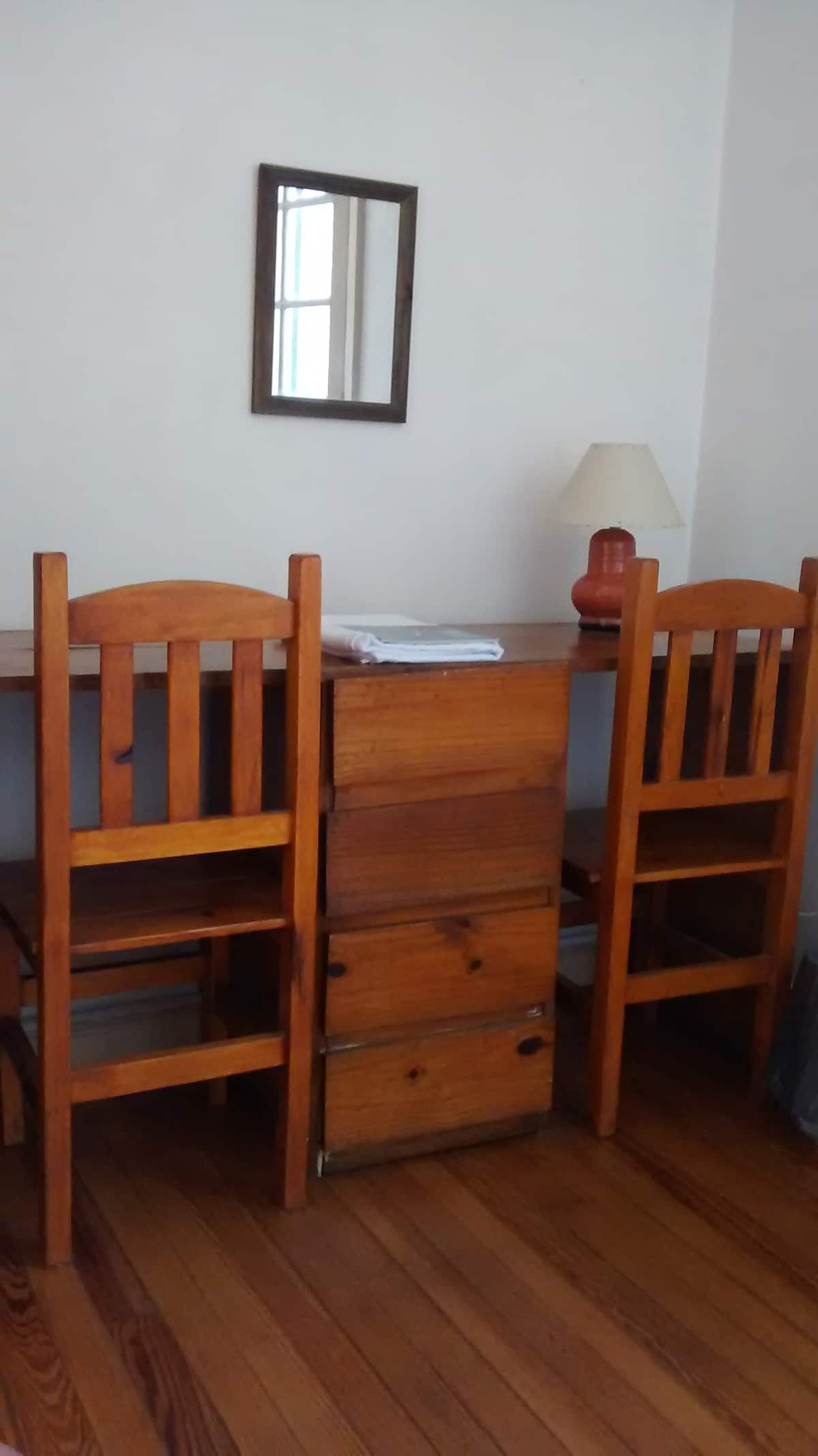 Private room in a shared house in Barracas with access to two terraces, a patio and a grill area. The house has 5 rooms and the listing price is for one room, with desk, chair and wardrobe. There are two shared full bathrooms and a common living room with dining/work tables; monthly stays only.