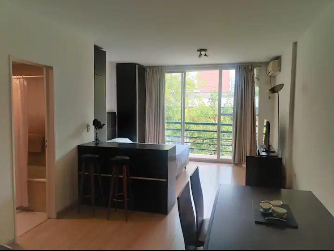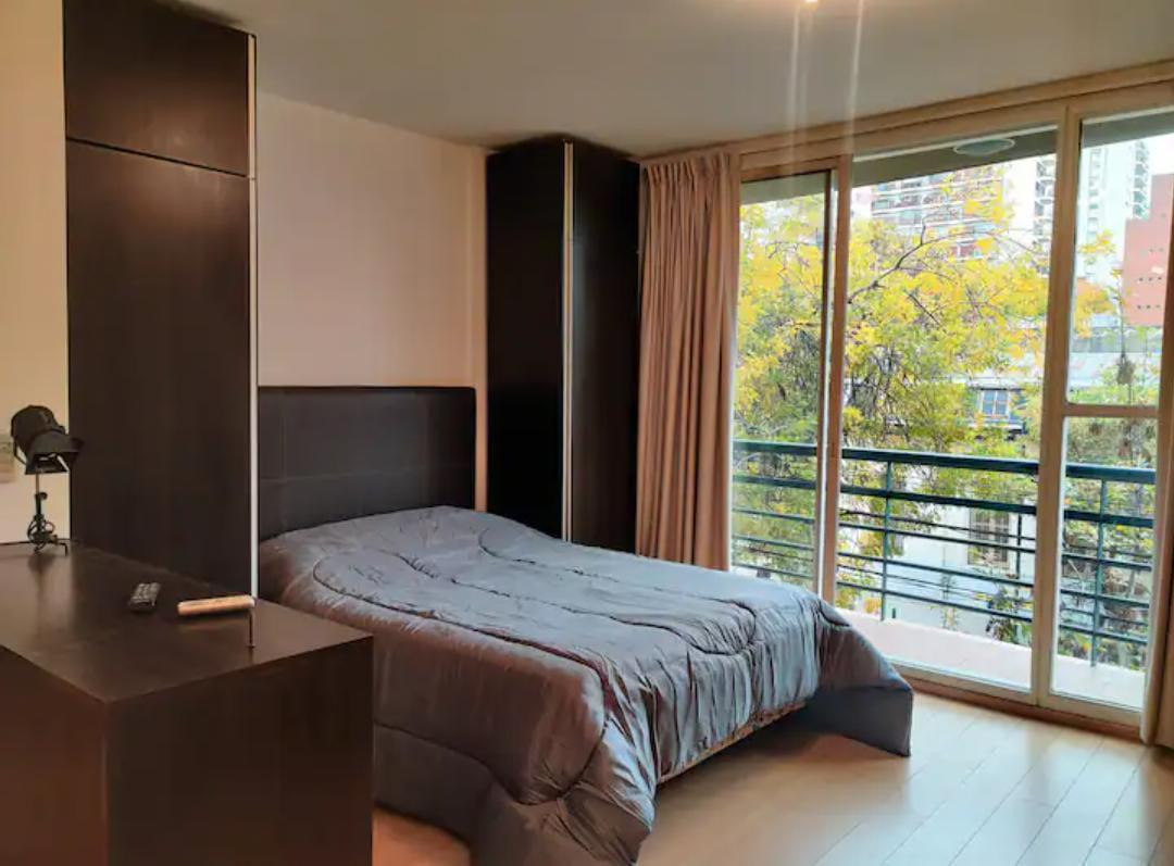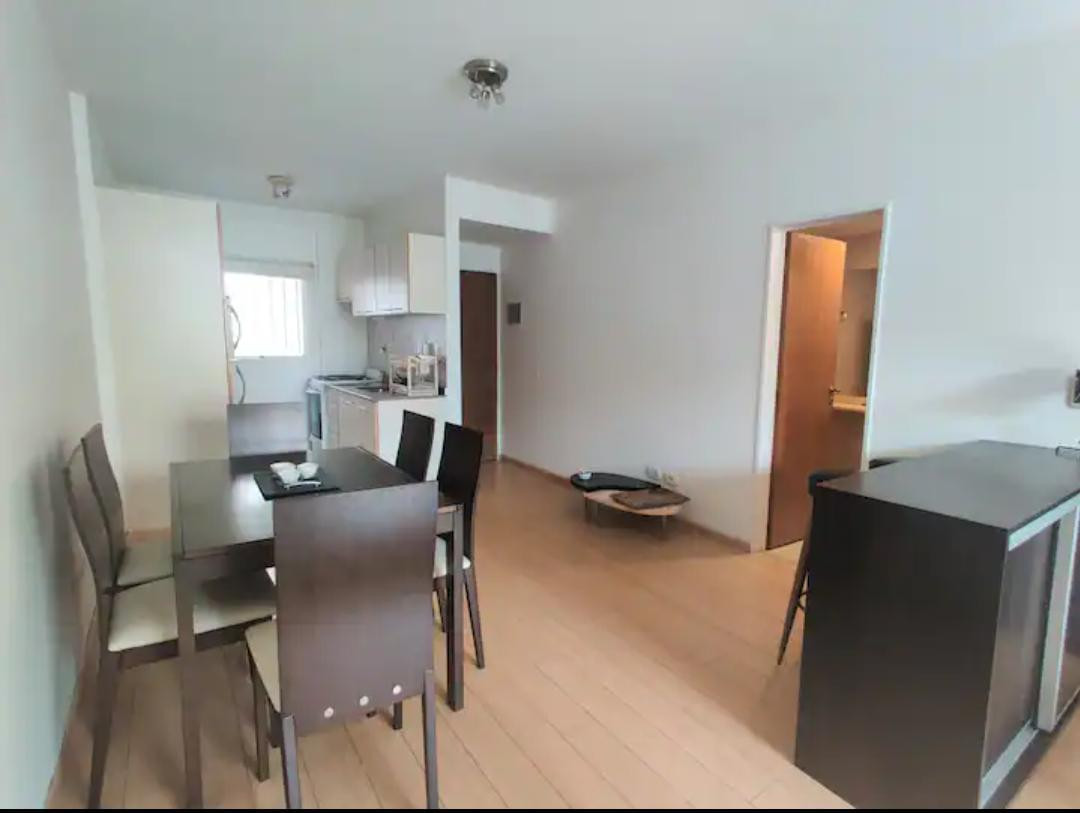 Studio of 35 m² in a half-floor unit, street-facing on a corner with a balcony. Semi-integrated kitchen, living-dining room with fitted wardrobe, and a full bathroom. Radiant floor heating and split air conditioning (hot/cold). Custom-made furniture; option to rent fully furnished or unfurnished. No connection for a washing machine or laundry; pets not allowed. Rental term is 12 months with quarterly adjustment by IPC, plus a rental guarantee bond and a USD 700 deposit. Monthly rent advance is A