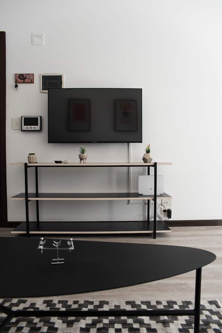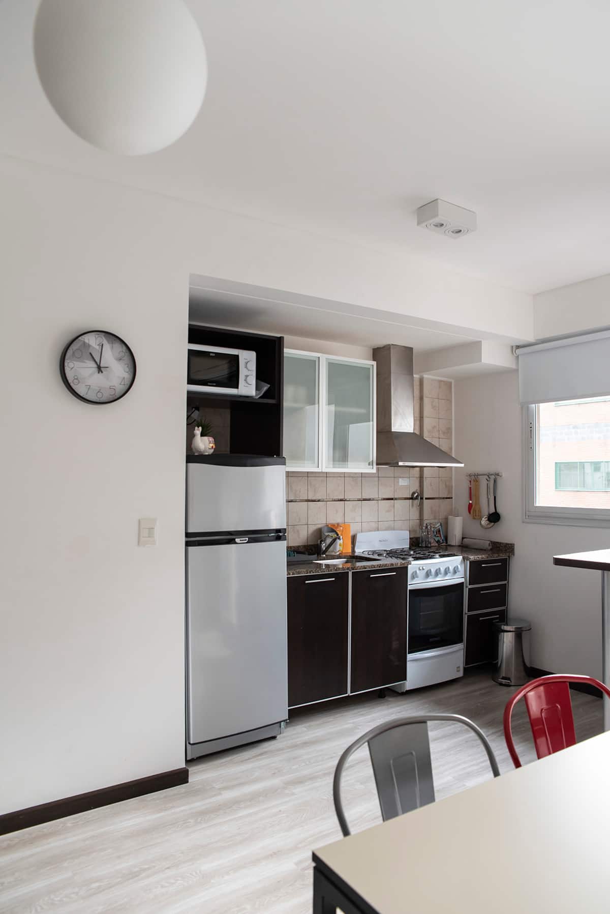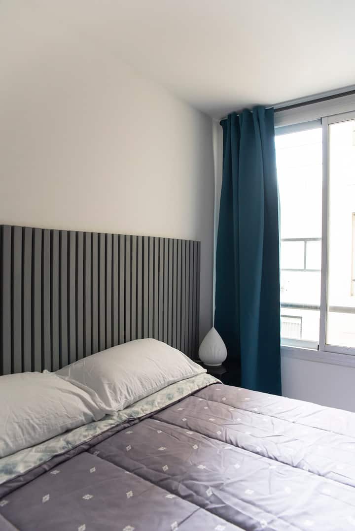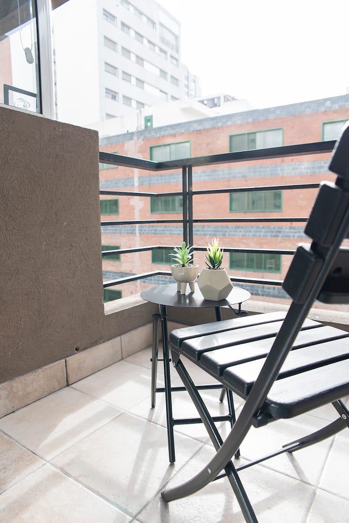Two-room apartment on the 4th floor with elevator, located on the border of Nuñez and Belgrano. The unit accommodates up to three people, with a double bed and a sofa bed. Living-dining room with a balcony and an integrated, fully equipped kitchen; full bathroom. TV and Wi-Fi are included, and a communal laundry room is available on the top floor. One block from Av. Libertador; Barrancas train station and Subte Line D are a few blocks away. Building fees and the availability of additional cleani