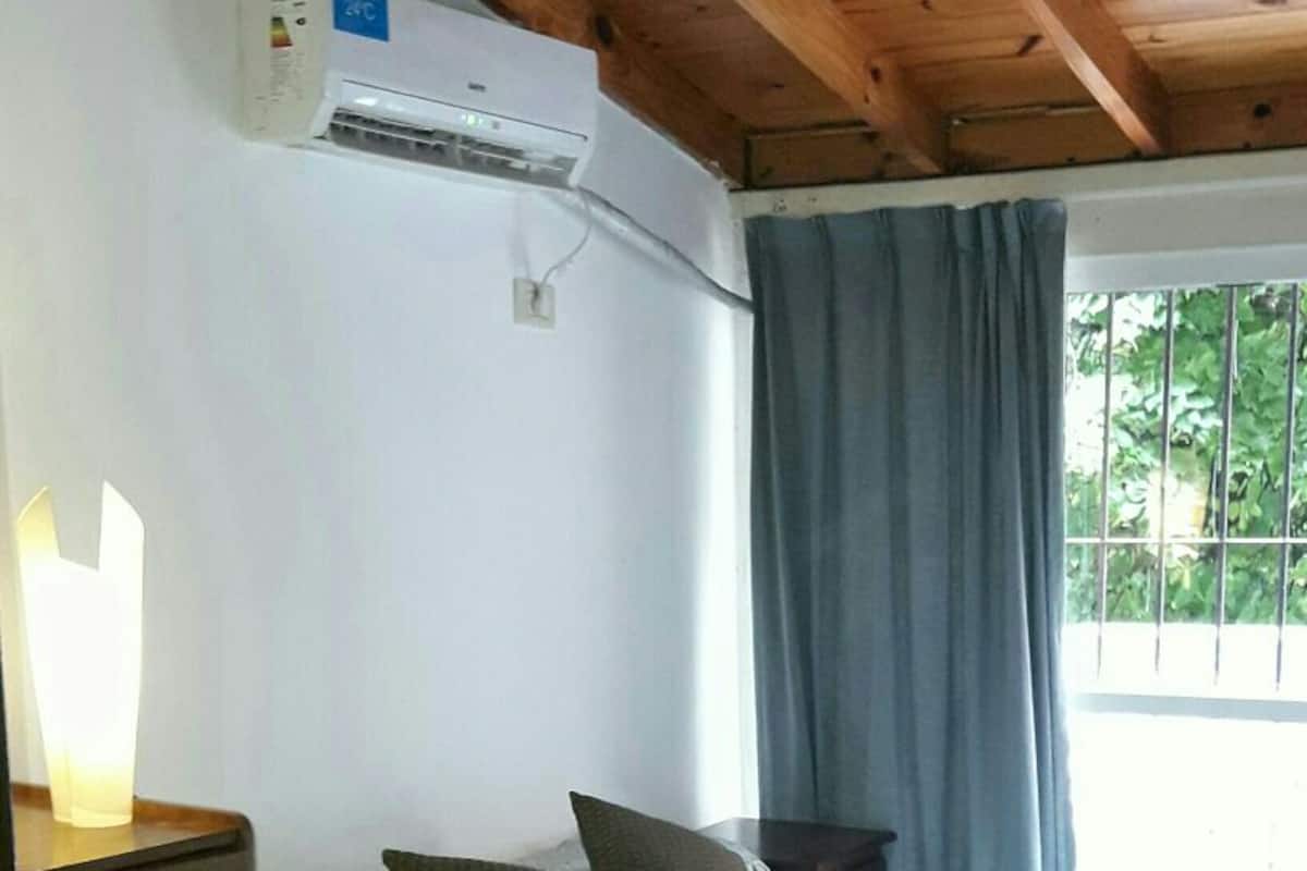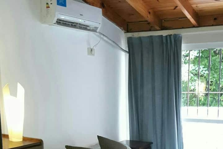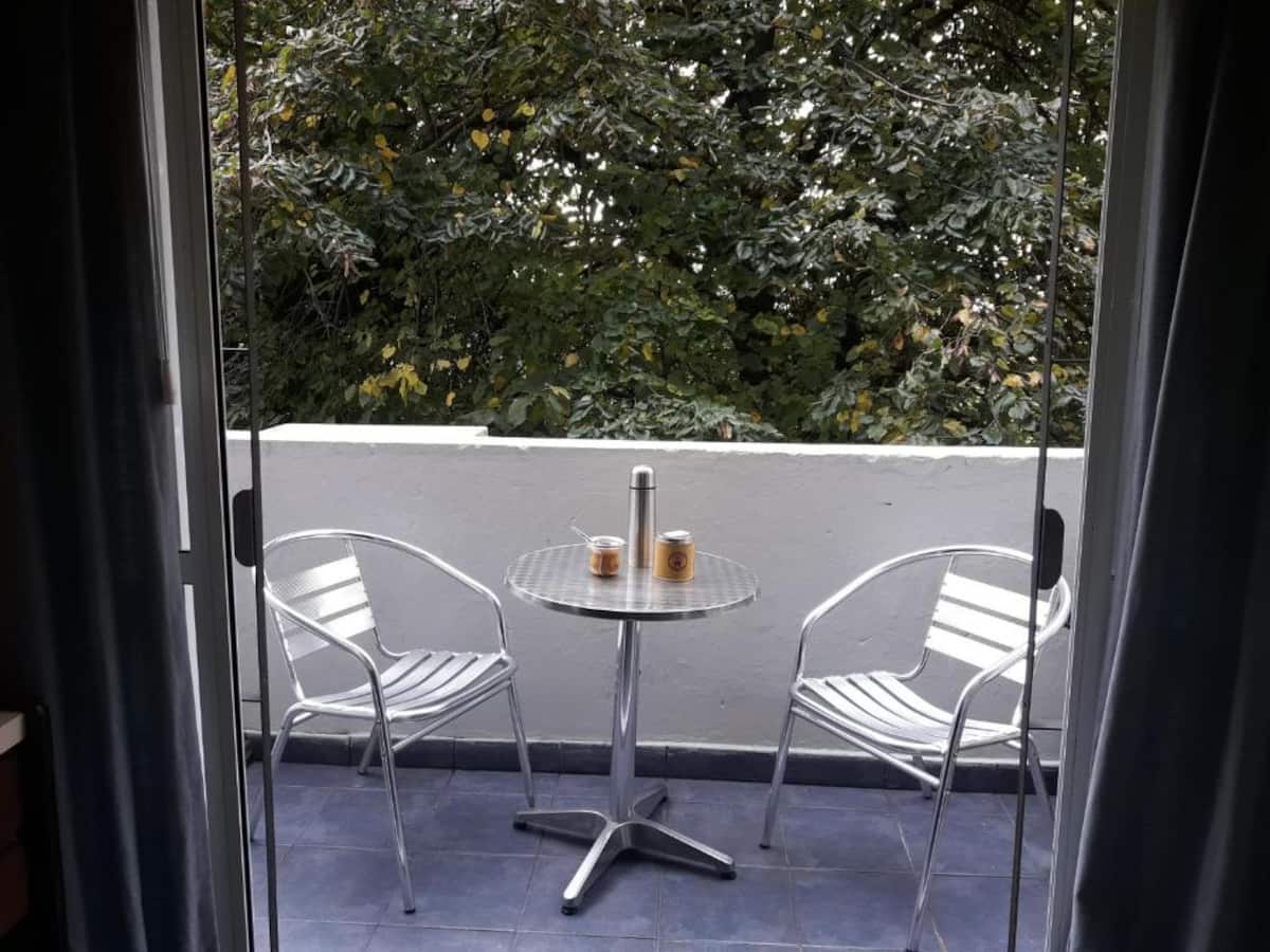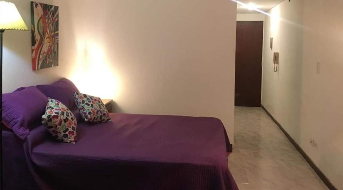 Apartment in Belgrano with 1 bedroom, 48 m² total. Equipped for short stays for 2 guests, with a double box-spring bed and a 29-inch TV. Wi-Fi, hot-cold air conditioning, microwave, coffee maker and toaster are provided, along with towels and linens.