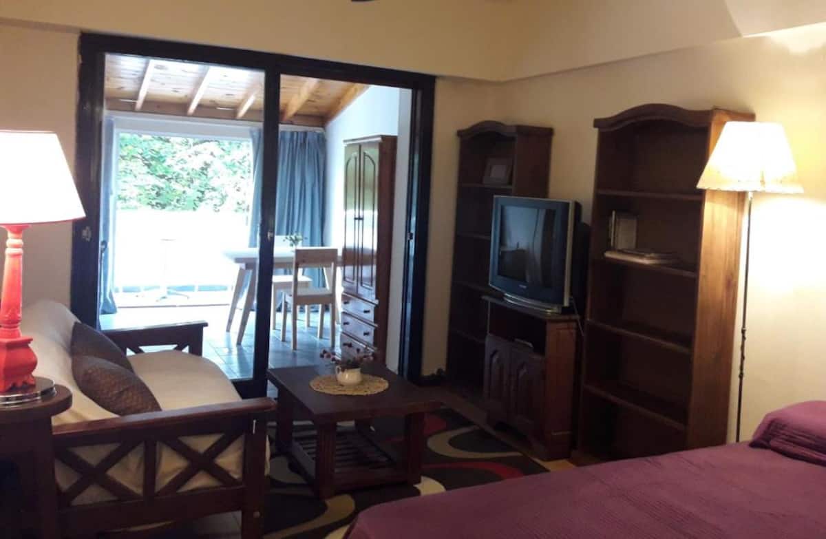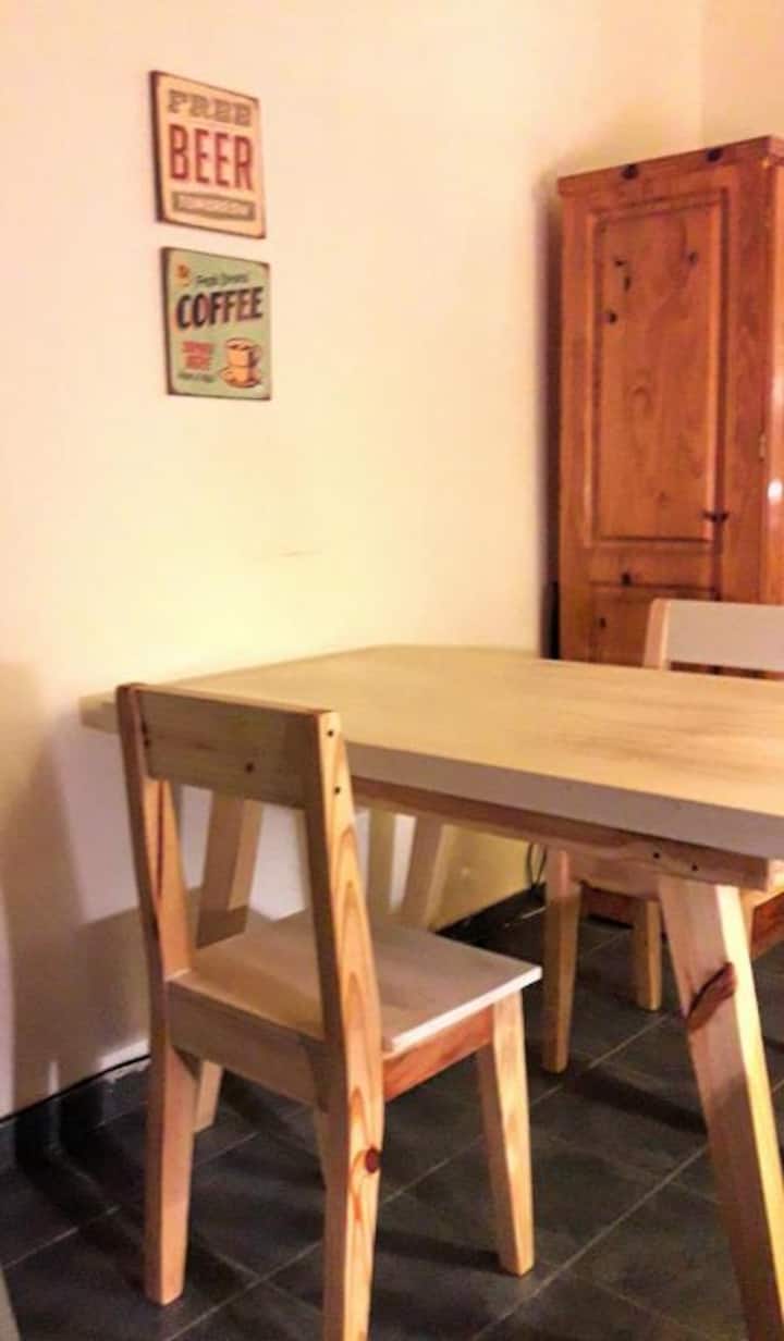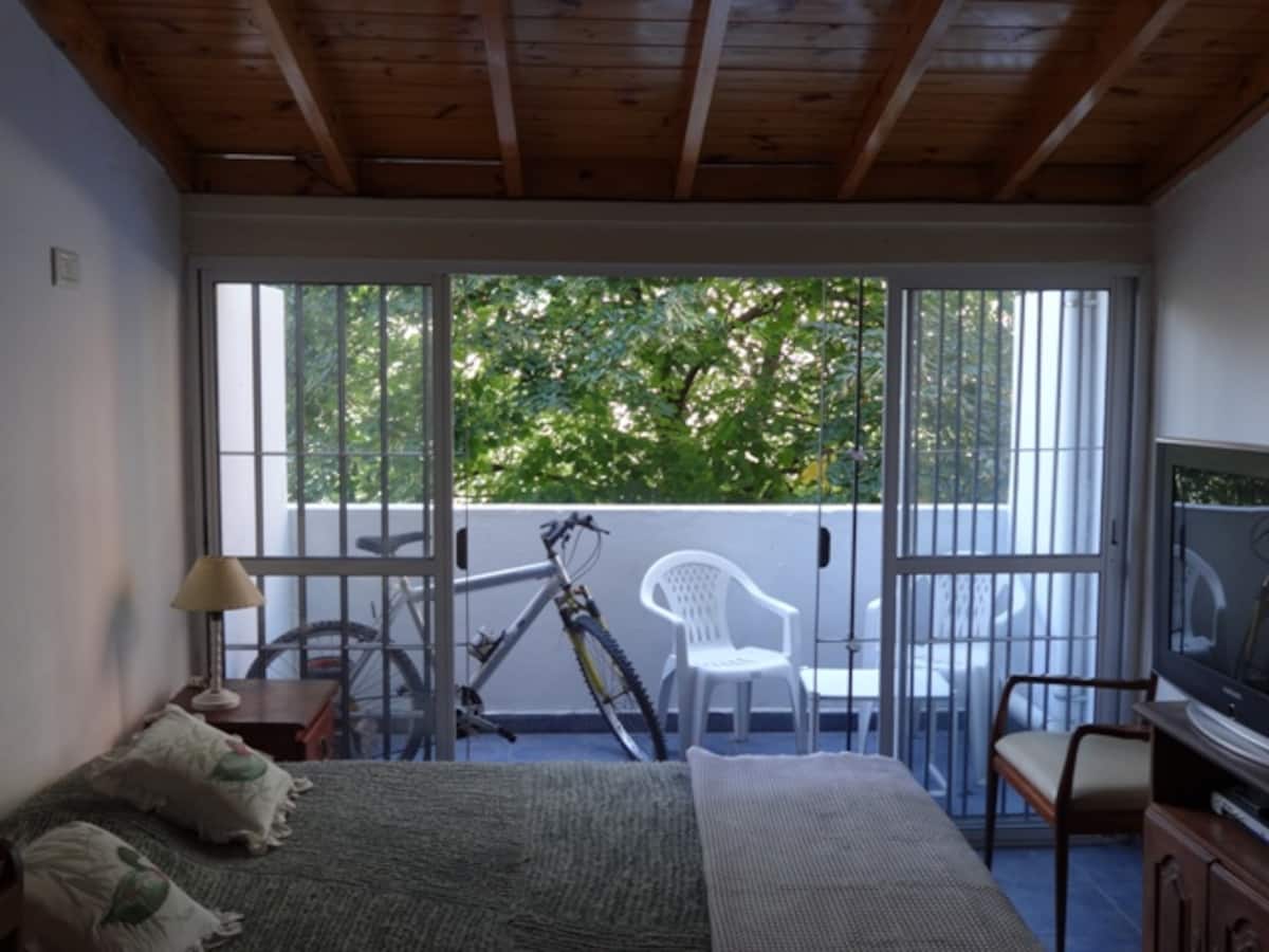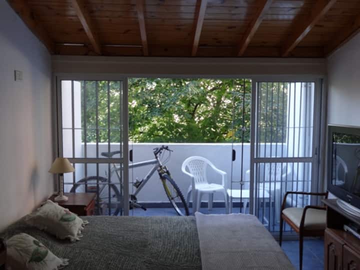 Apartment in Belgrano with 1 bedroom, 48 m² total. Equipped for short stays for 2 guests, with a double box-spring bed and a 29-inch TV. Wi-Fi, hot-cold air conditioning, microwave, coffee maker and toaster are provided, along with towels and linens.