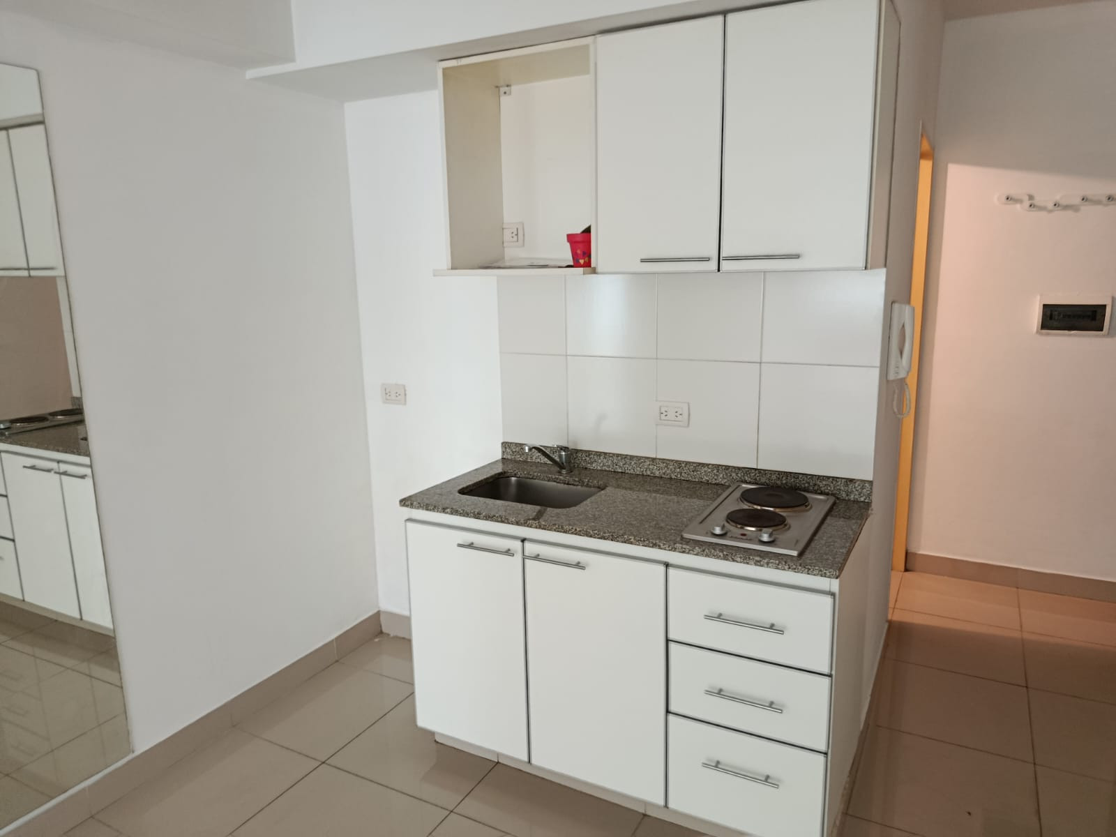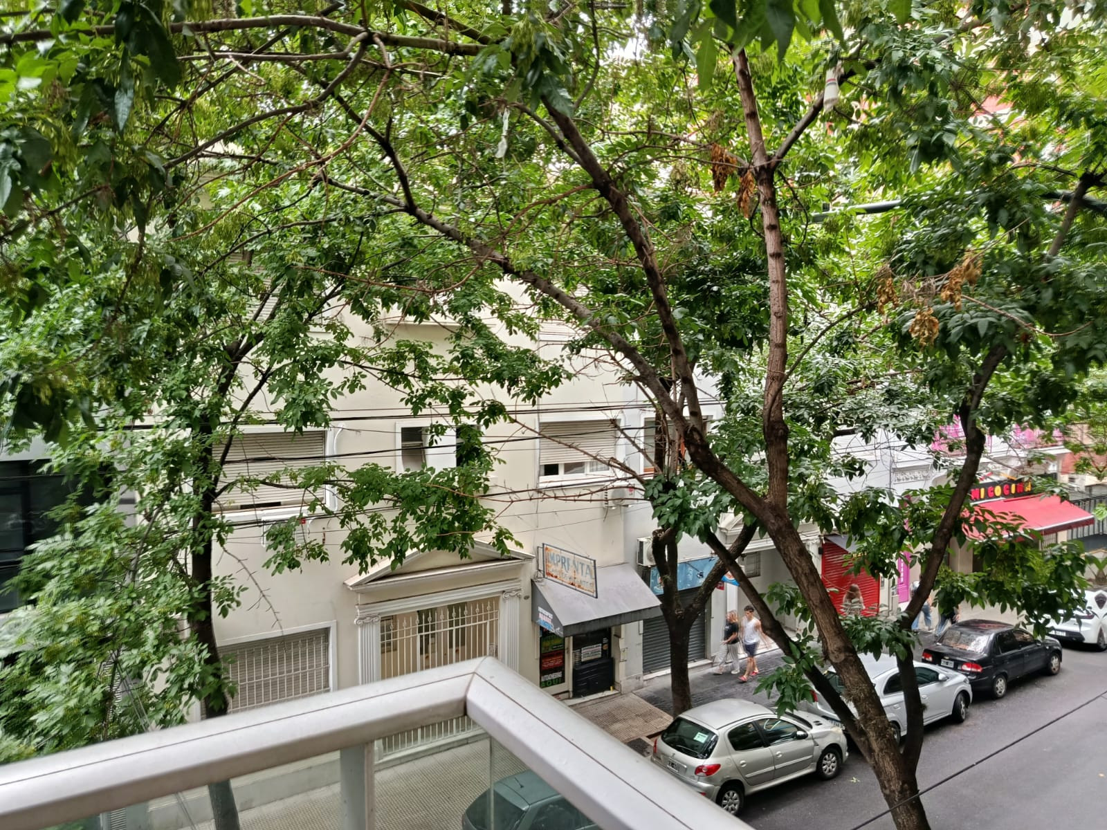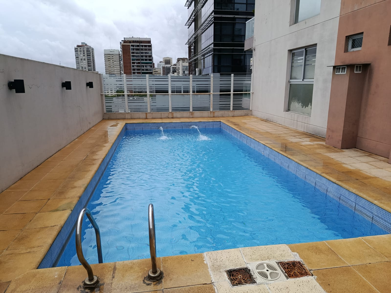 Studio apartment on the 2nd floor, street-facing with a balcony, in Belgrano. The layout includes an open-plan kitchen with 2 hotplates and a full bathroom. Includes an uncovered (not assigned) parking space and access to a building with outdoor pool, 24-hour security, gym, communal room (SUM) and solarium. Rental requires a rental guarantee (property or rental insurance bond) and proof of income.
