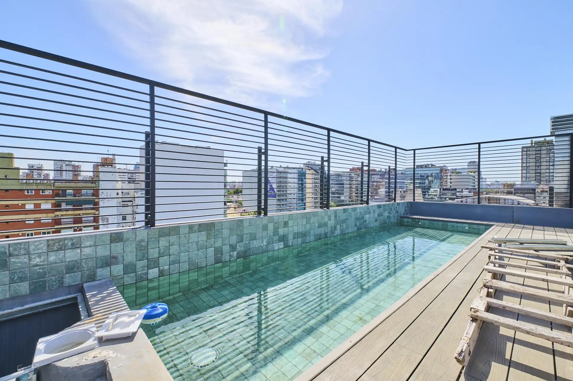 Two-room apartment on the 2nd floor, courtyard-facing. Project Aires Migueletes, scheduled for delivery in March 2026. The unit is delivered fully equipped, with a complete kitchen, fitted wardrobes, installed and operating air conditioning, electric floor heating and a digital lock for apartment access. The building has 9 habitable floors, a rooftop terrace with grills and a pool, a solarium, an uncovered grill area, a residents’ co-work space, a generator, and 6 assigned parking spaces in the