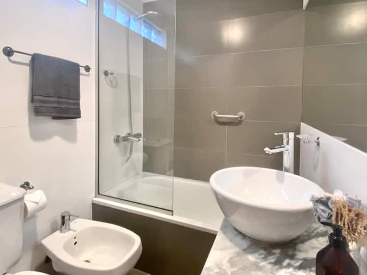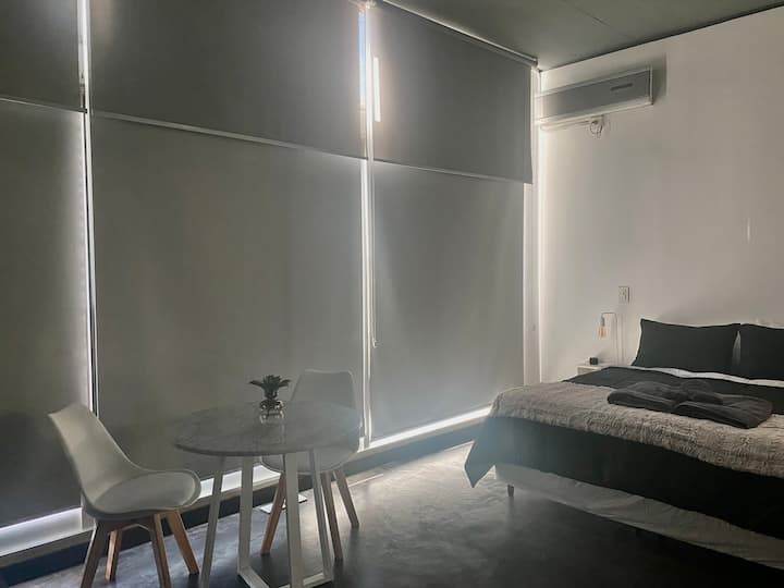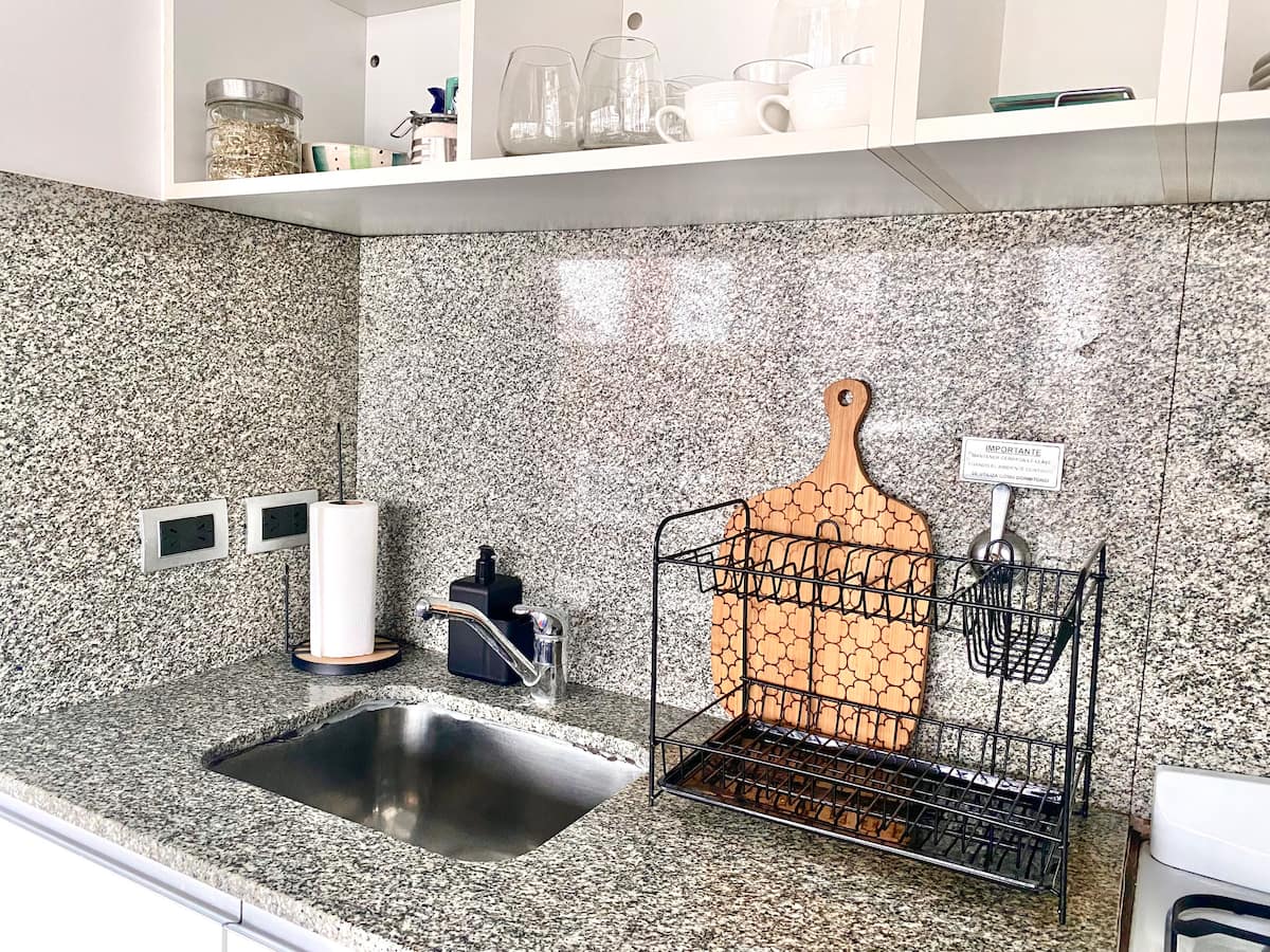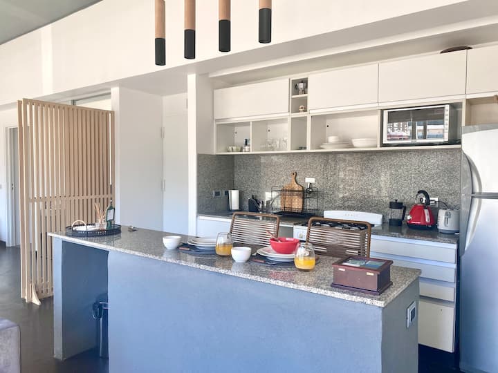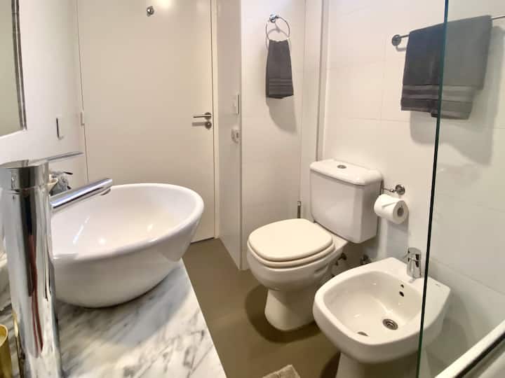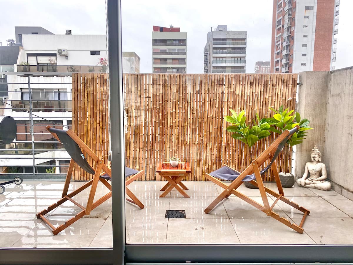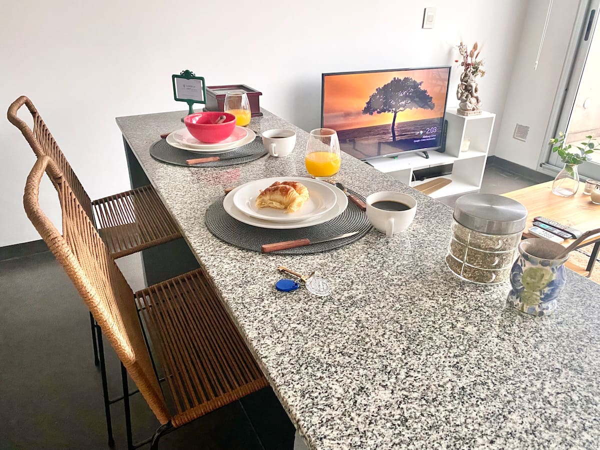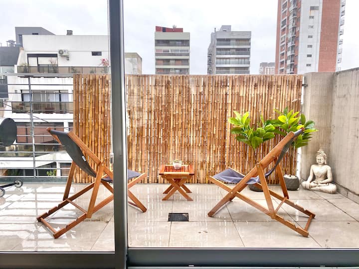 Studio apartment in Belgrano with several integrated areas and a large balcony. The unit is fully equipped for stays, with furnishings in the kitchen and main room. Access to the building’s common areas is included.