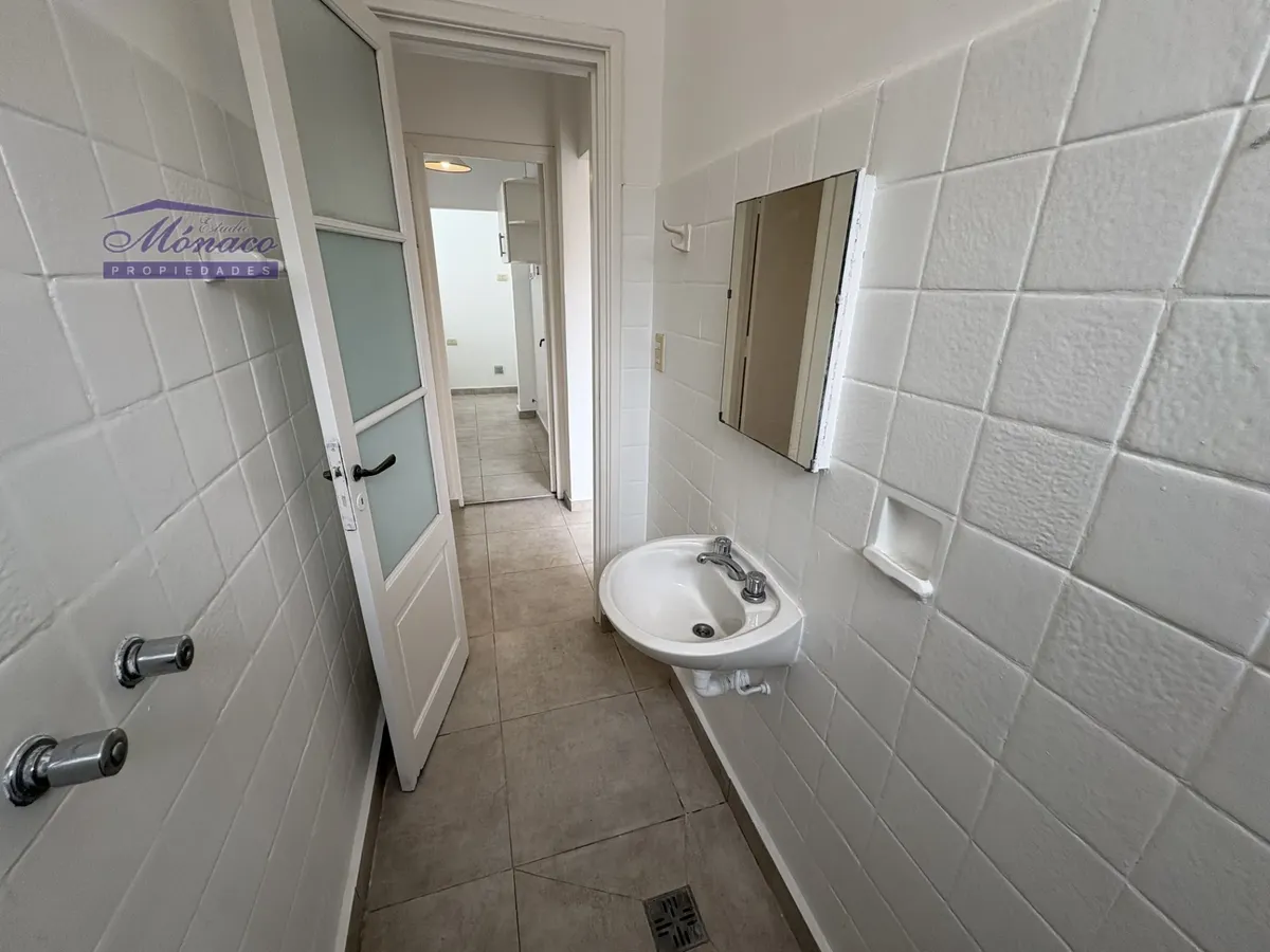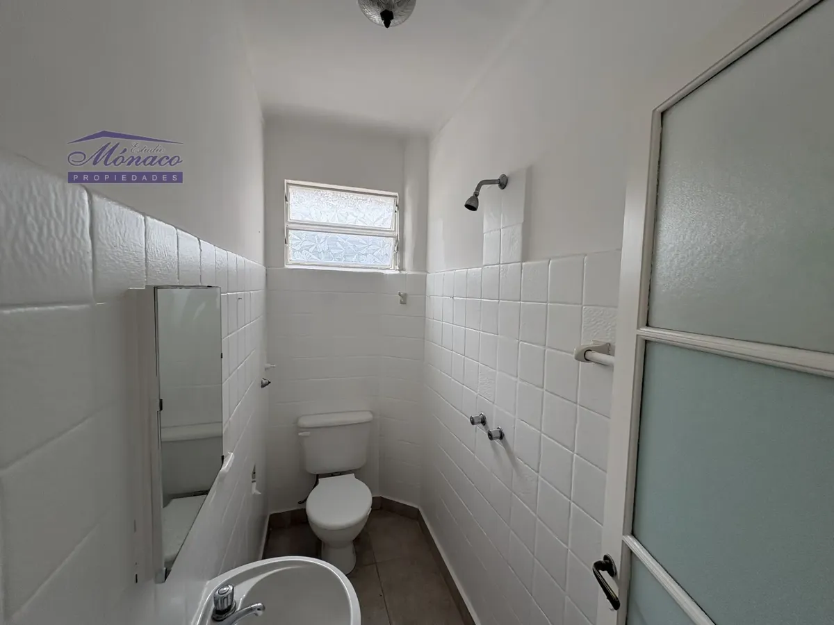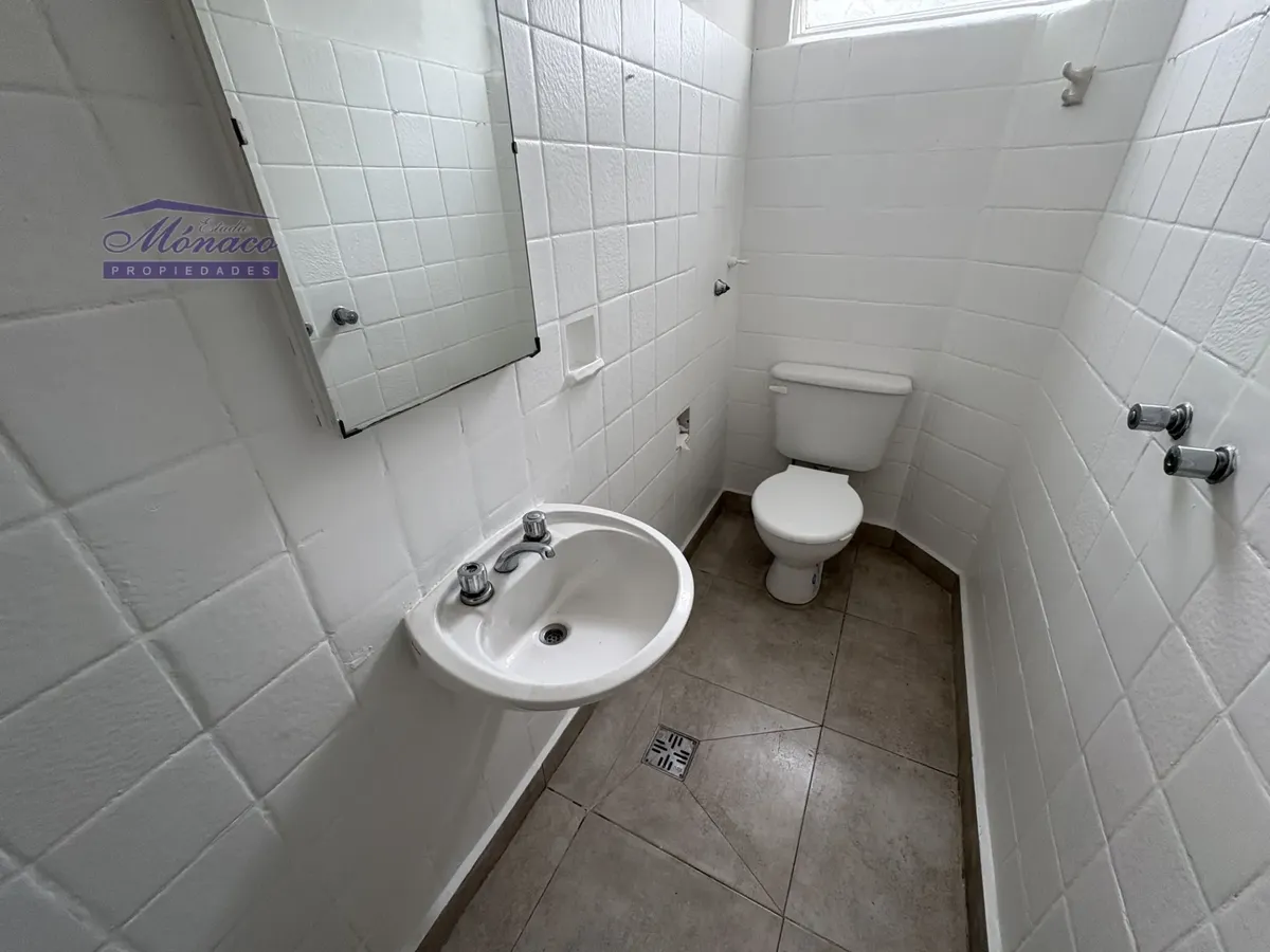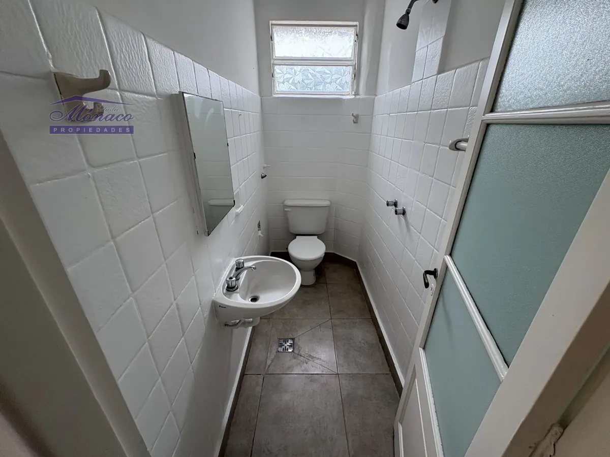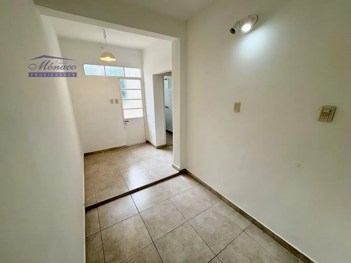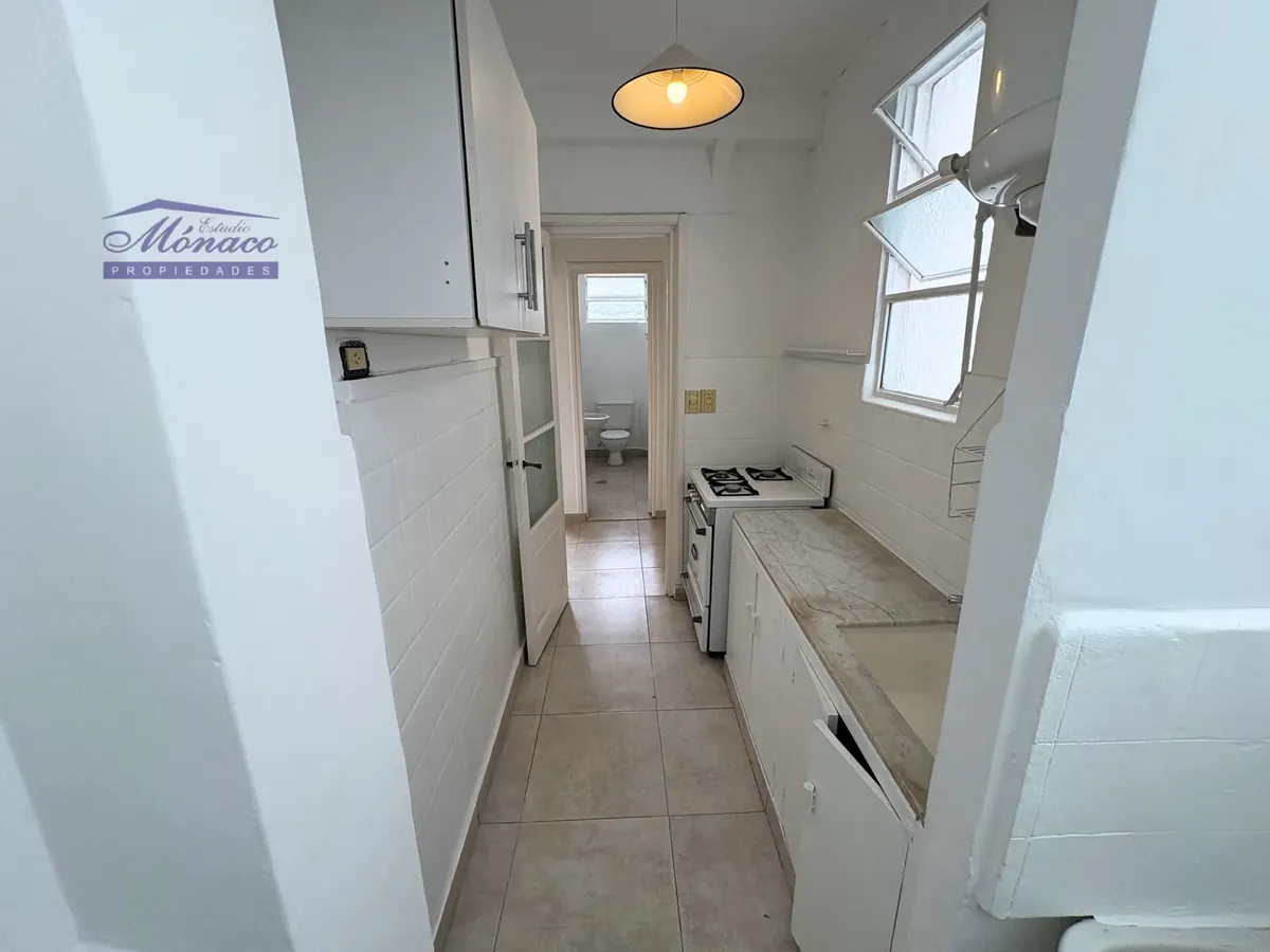Two-room apartment on the courtyard-facing side (contrafrente) in Belgrano, with exclusive use of a large private terrace. It has a small living-dining area, a separate kitchen with laundry area, and a bedroom with a fitted wardrobe. It is on the 3rd floor with stairs, and the listing notes proximity to Barrio Chino and Belgrano C station. Building fees are listed as approximately $115,000.