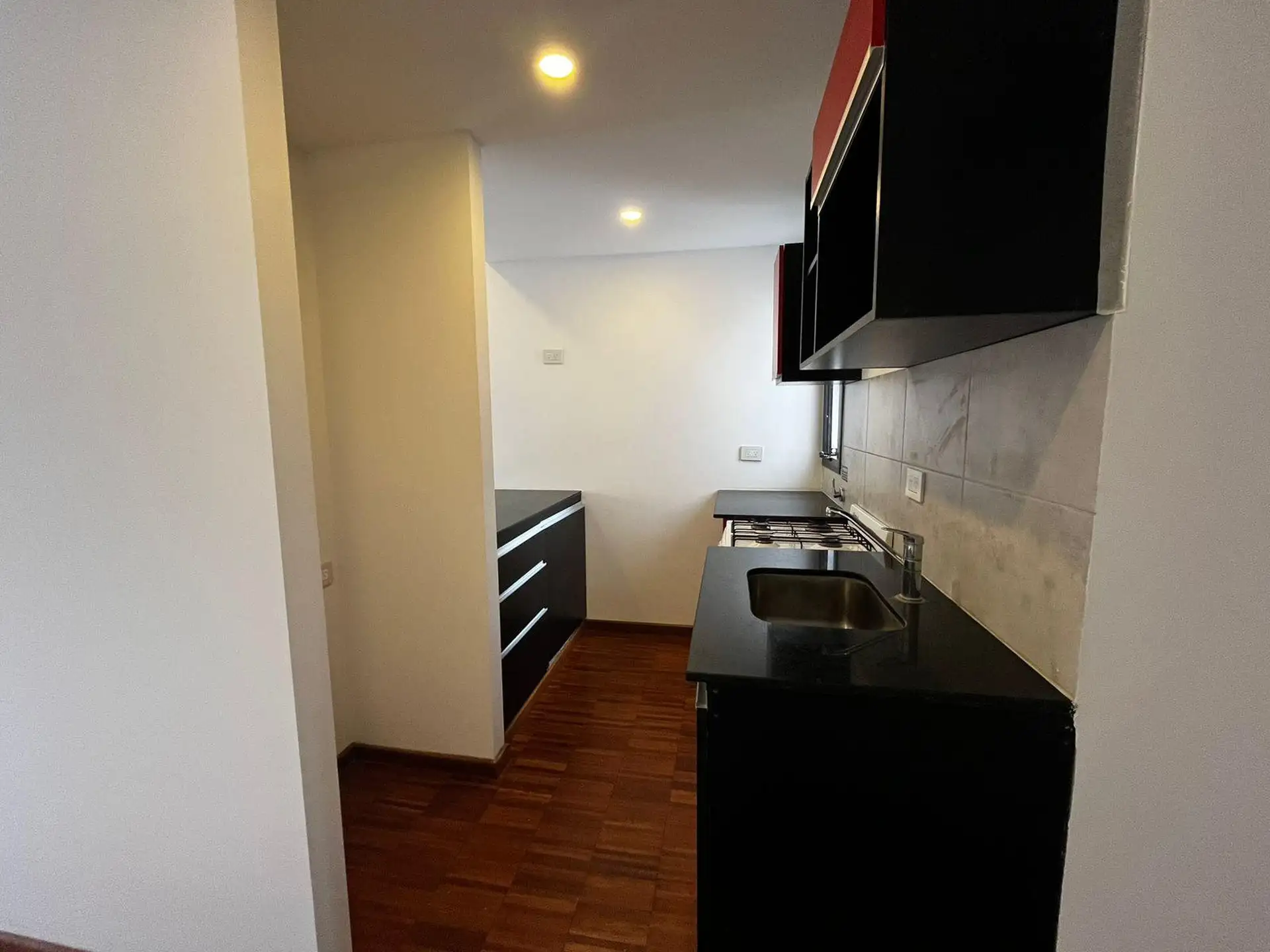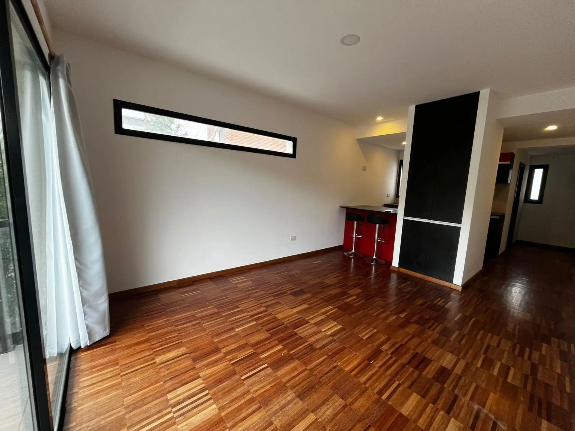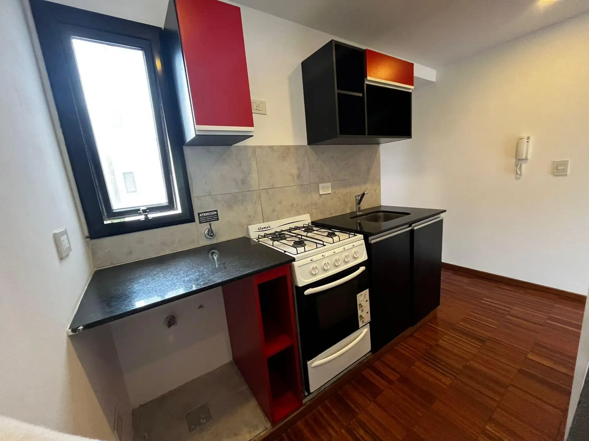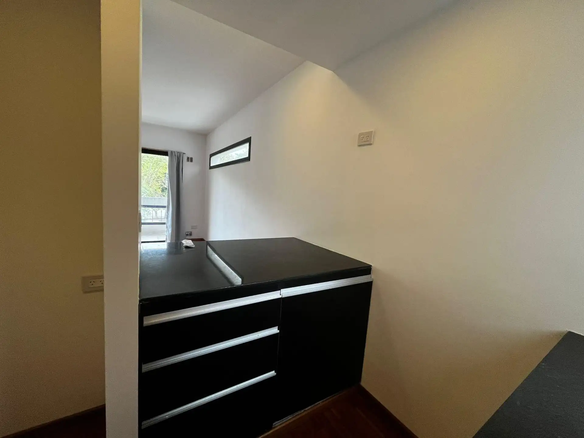 New studio apartment of 35 m². Wood flooring, built-in wardrobe, split air conditioning, and access to a balcony. Fully equipped kitchen with breakfast bar; full bathroom with ventilation; cross-ventilation.