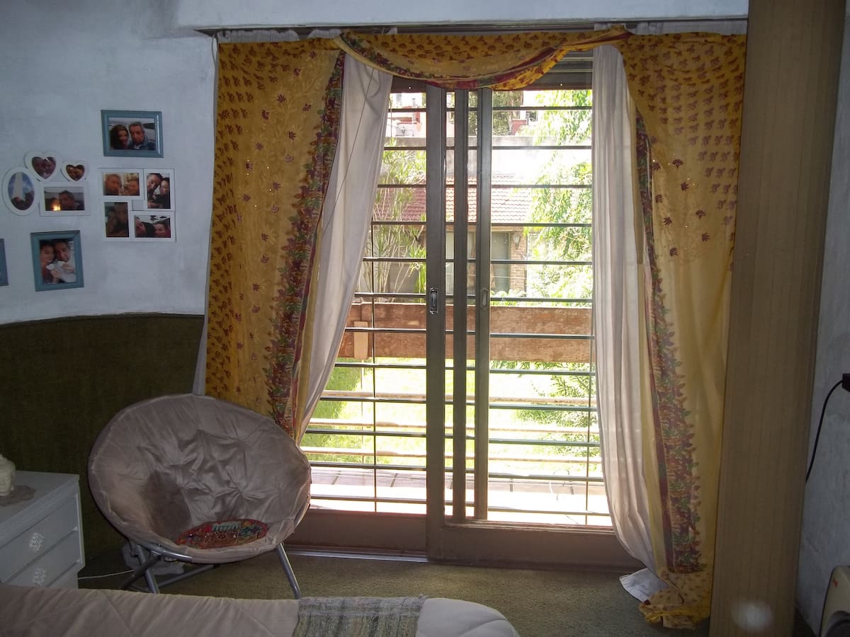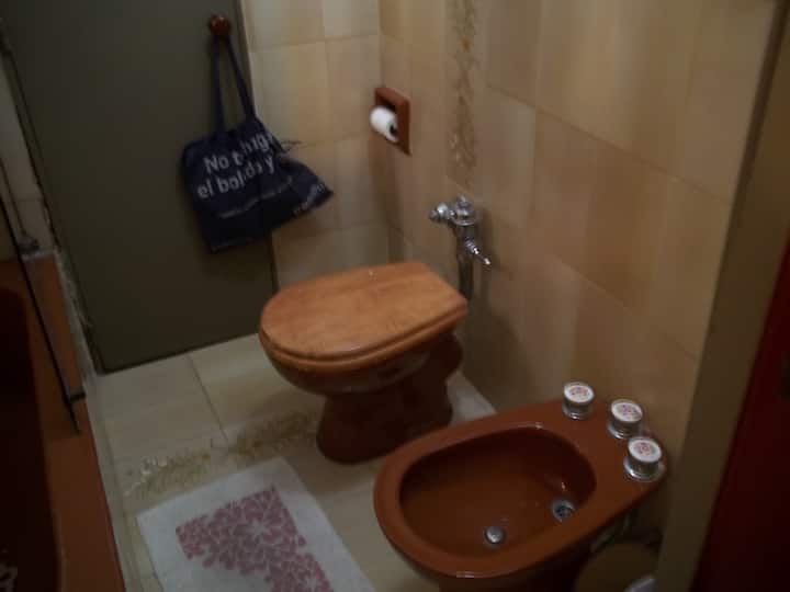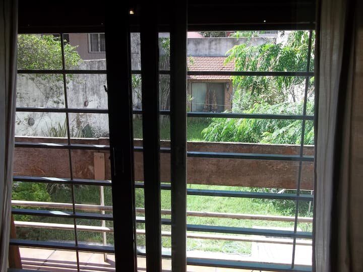 Apartment with 1 bedroom in Boedo. Access to the room is via stairs. The listing mentions a large park area, a grill, and reading spaces. It is described as being in central Buenos Aires, close to public transport and the Boedo shopping area, two blocks from Café Homero Manzi.