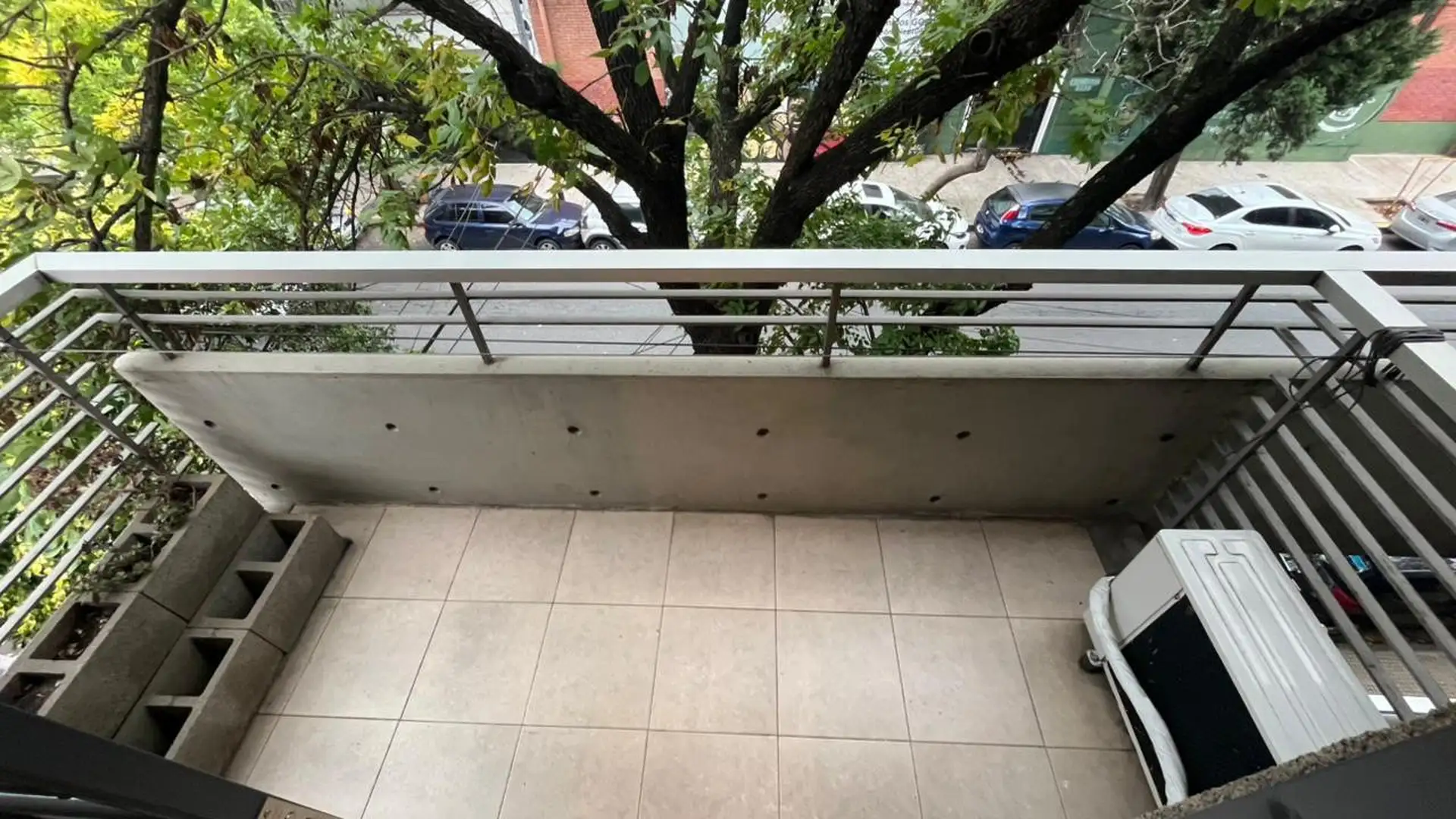 Studio apartment for rent in Boedo, Buenos Aires, in good condition. It has a street-facing balcony, a full bathroom, and built-in closet interiors. Equipped with air conditioning and a stove.