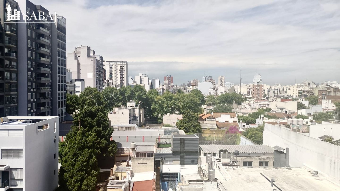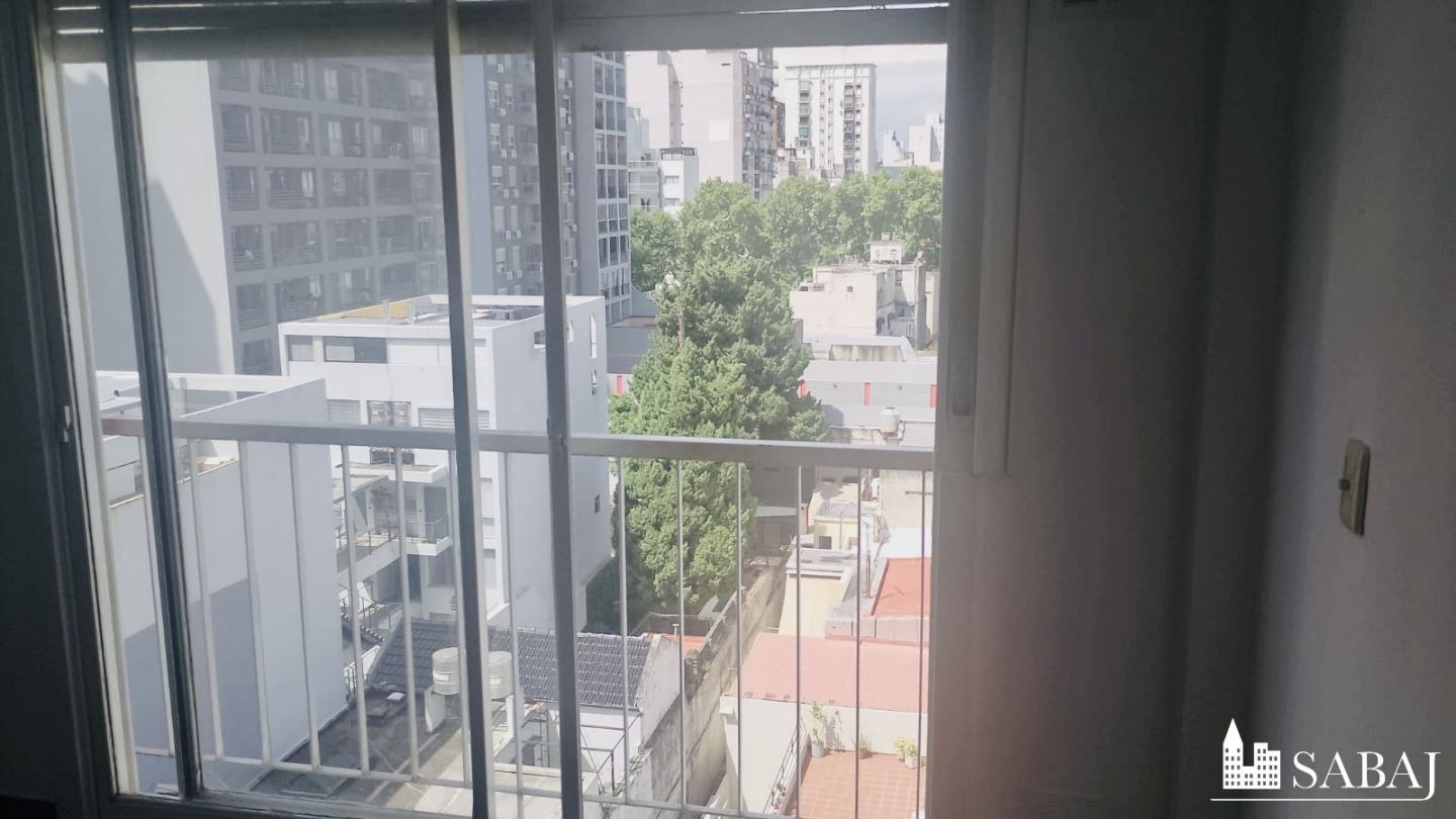 Two-room apartment with 51 m² covered area in Boedo, recently painted. It has a street-facing French balcony, open views, and split air conditioning (hot/cold). Separate kitchen with pass-through serving hatch, pantry, and lower cabinets, plus a separate laundry area. One full bathroom with natural light and a bedroom with a large fitted wardrobe. Includes an assigned parking space and a storage room (baulera). Building fees, taxes and utilities are not specified.