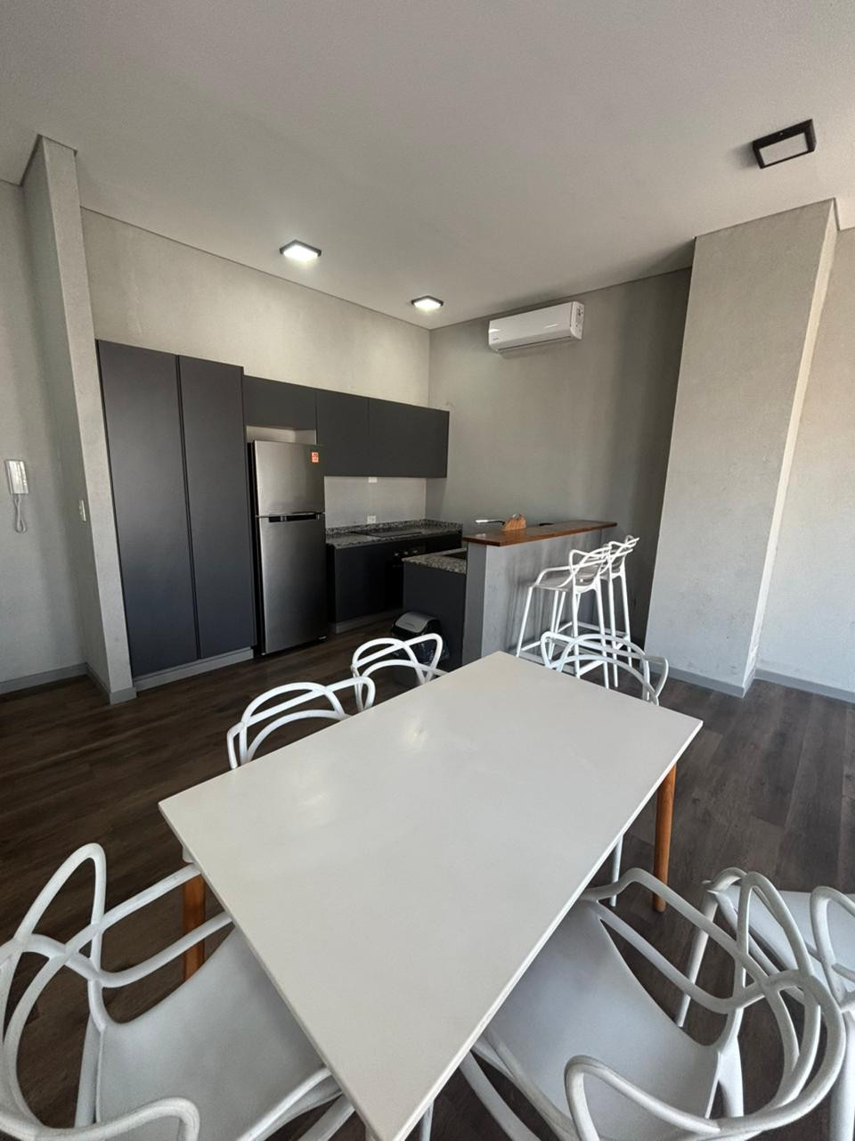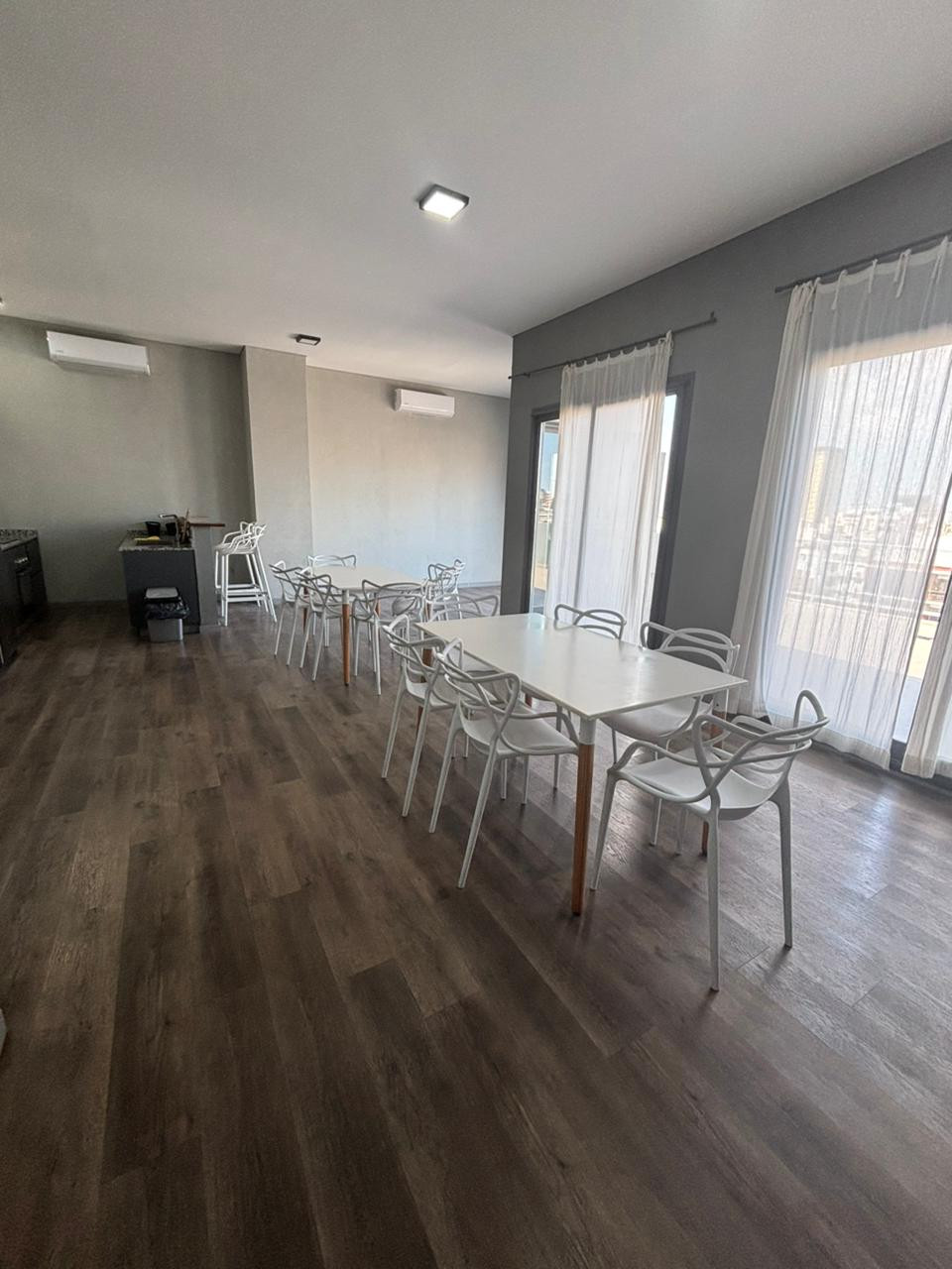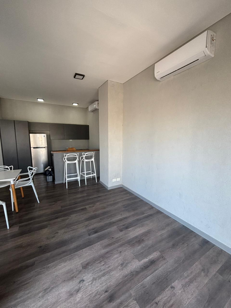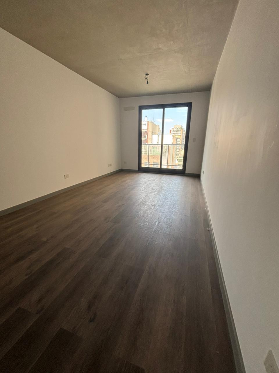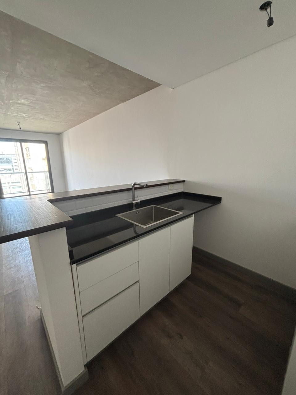 Studio apartment with a balcony in a new building. Integrated kitchen with bar and double sink, all-electric, central hot water, air conditioning, and floor radiant heating. Full bathroom and balcony. On the 10th floor there is a communal room, grill, solarium, and pool. Rental contract of 2 years; demonstrable income required, with a CABA guarantee or rental guarantee insurance.