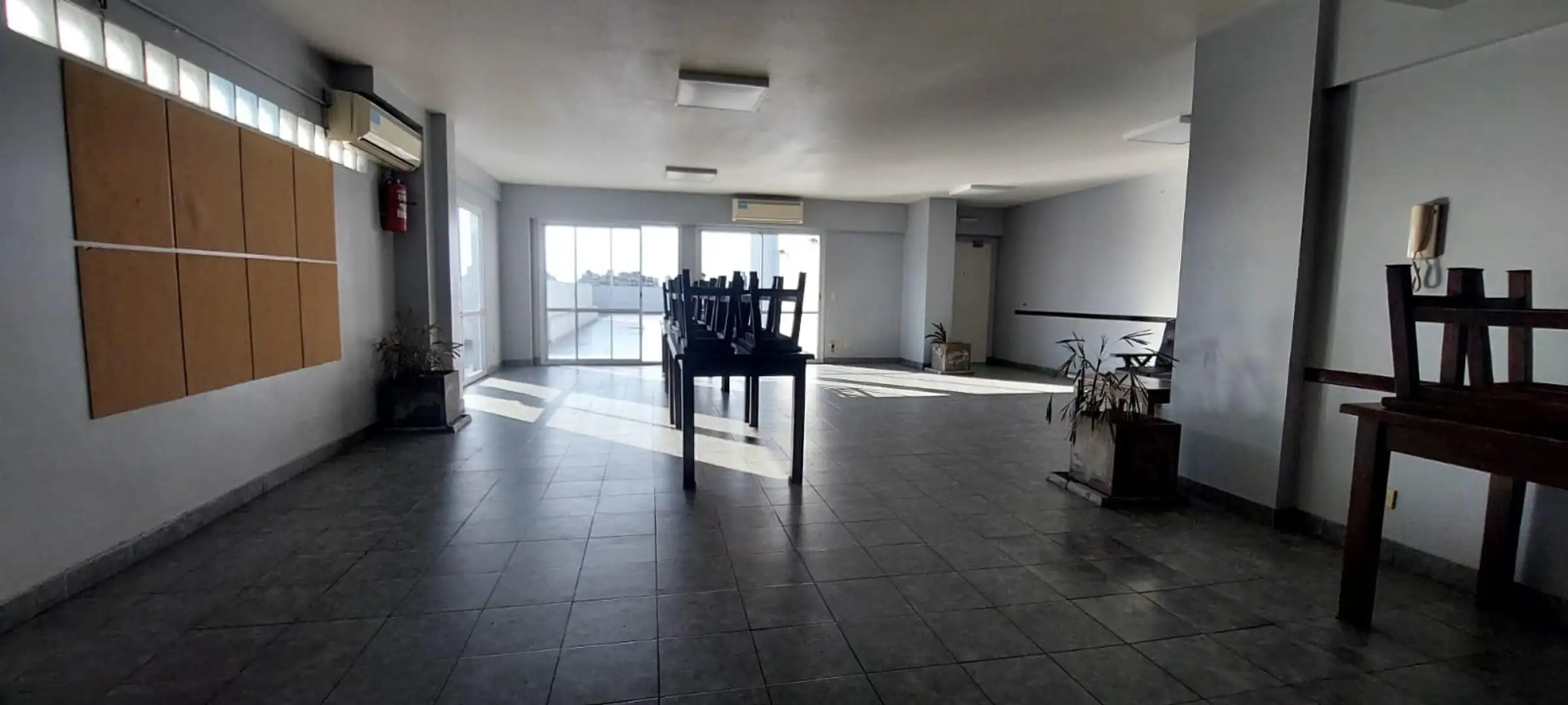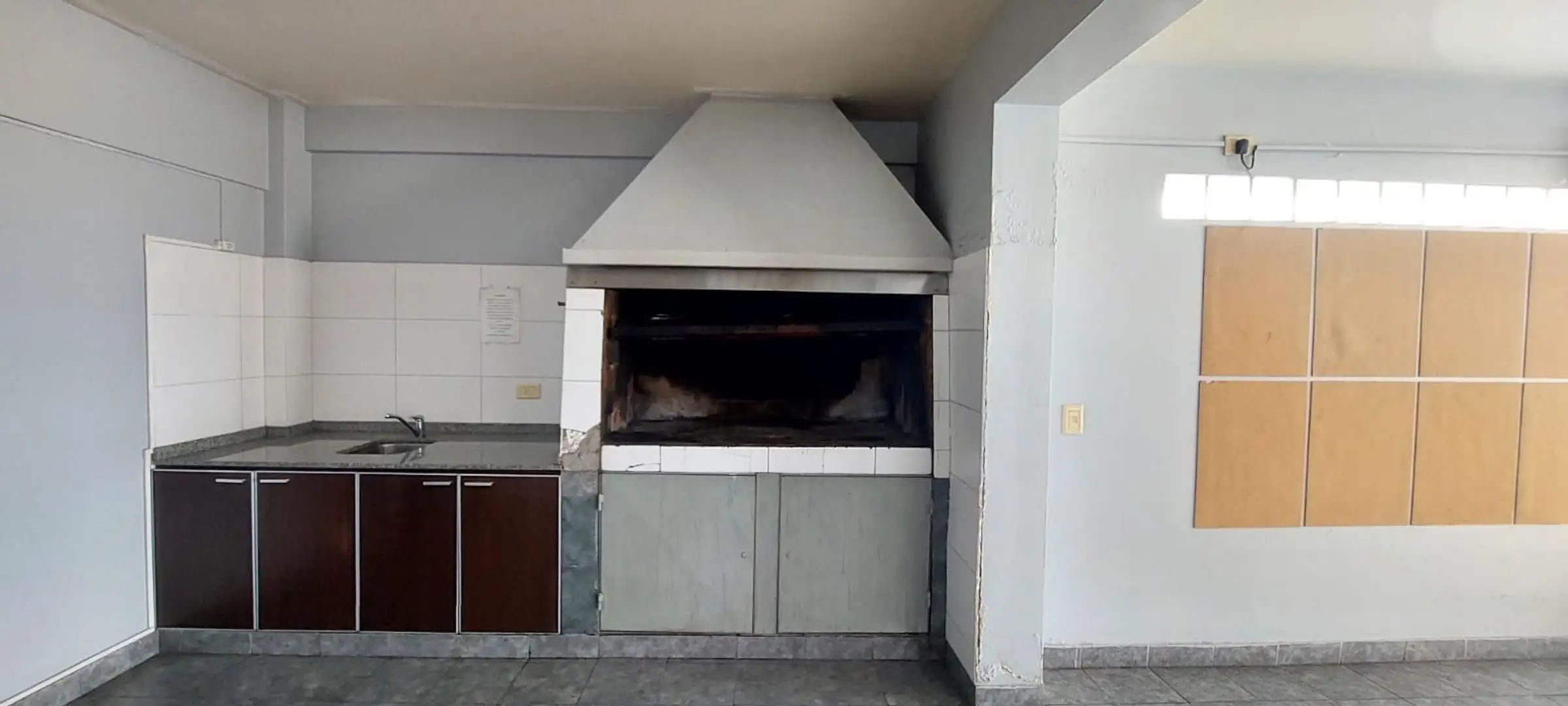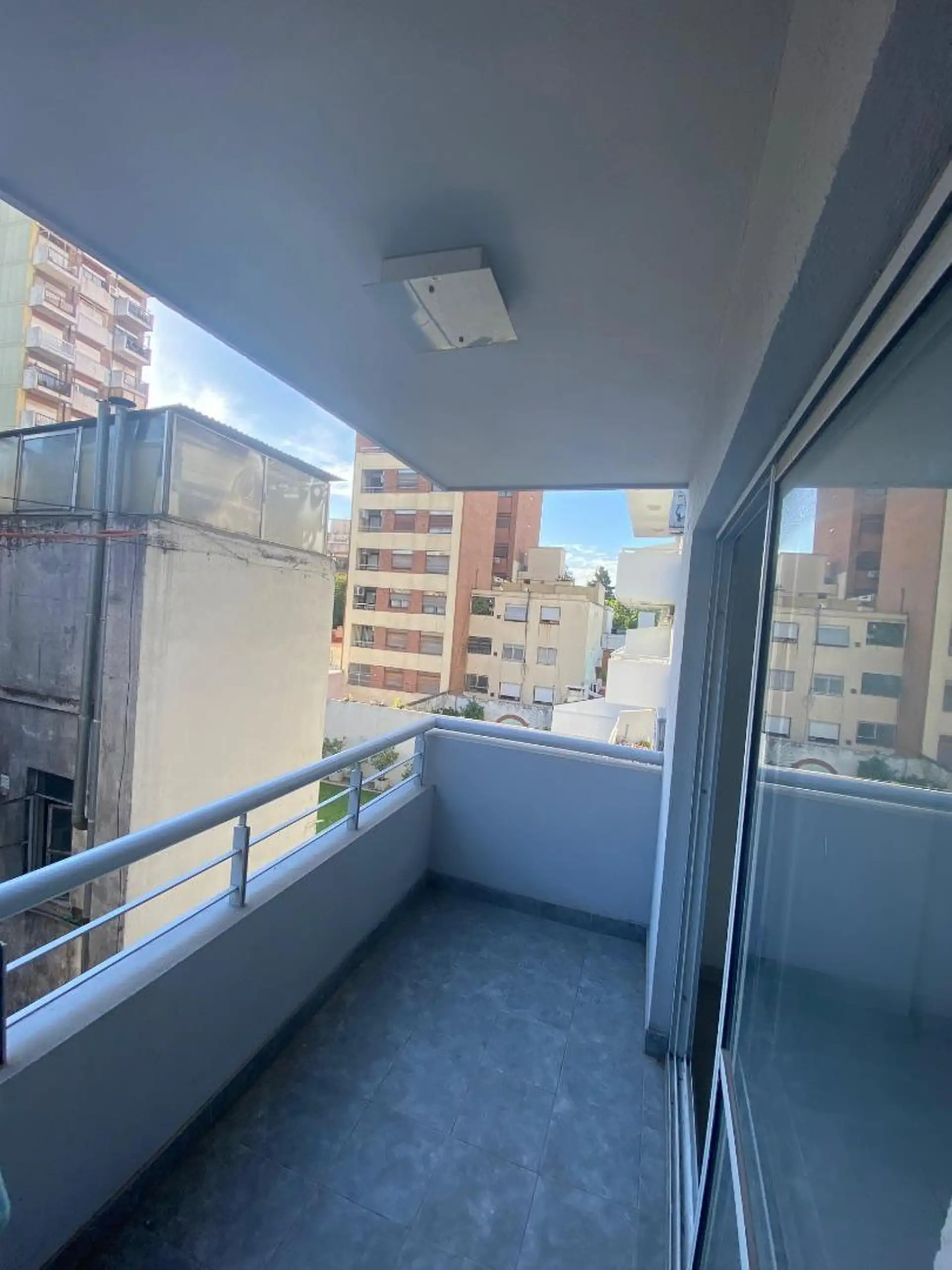 Studio apartment with 40 m² total area, 35 m² of covered space, courtyard-facing (contrafrente). Includes 1 bathroom and a balcony, plus a laundry area. The building has a lift, caretaker, laundry, grill, pool, quincho, communal room (SUM) and security, with internet/WiFi available.