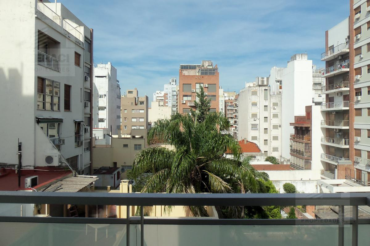 Apartment with 1 1/2 rooms, suitable for professional use, with a living area featuring a large window and access to a balcony measuring 2.50 x 1.10 m. The bedroom is semi-integrated, with floor-to-ceiling wardrobe interiors in the distribution hall. Separate kitchen with cooktop and electric oven, plus a breakfast bar; space for a washing machine. Full bathroom with bathtub; split air conditioning (hot and cold). Building amenities include a terrace, communal room (SUM) and a grill. Complies wi