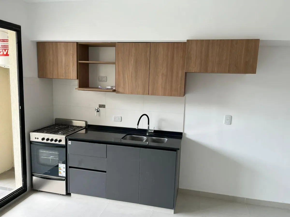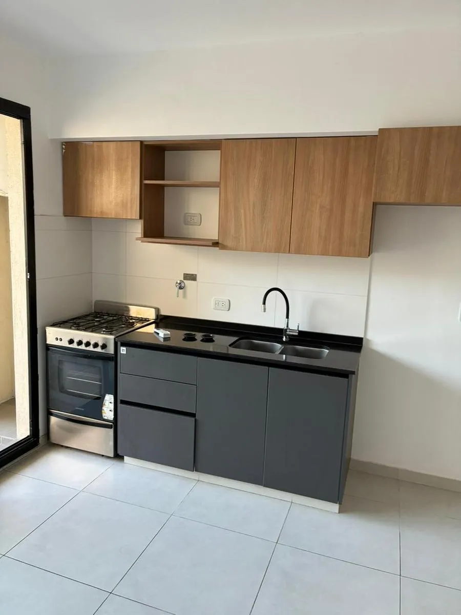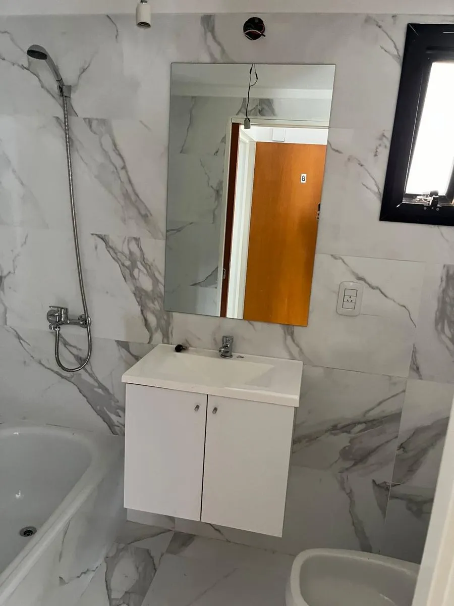 Two-room, one-bedroom apartment in Caballito, brand new. Courtyard-facing with a balcony, with a covered (assigned) parking space. Living-dining area with balcony access, integrated kitchen with fitted cabinets, bedroom with built-in wardrobe, full bathroom and connection for a washing machine, plus air conditioning. On the top floor there is a terrace with a grill. Building fees are $193.854 plus $31.478 for the parking, for a total of $225.332.