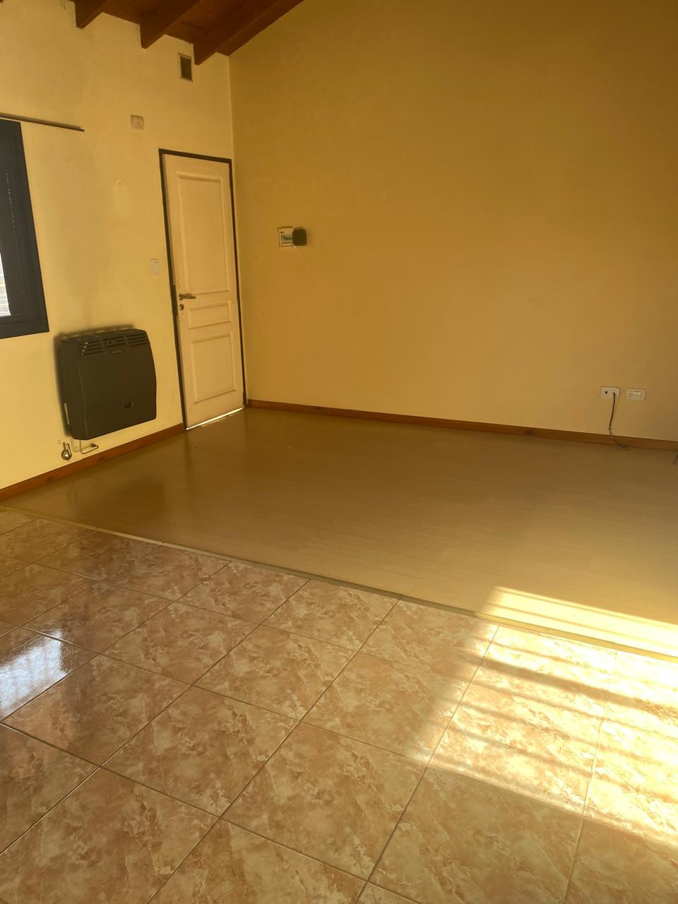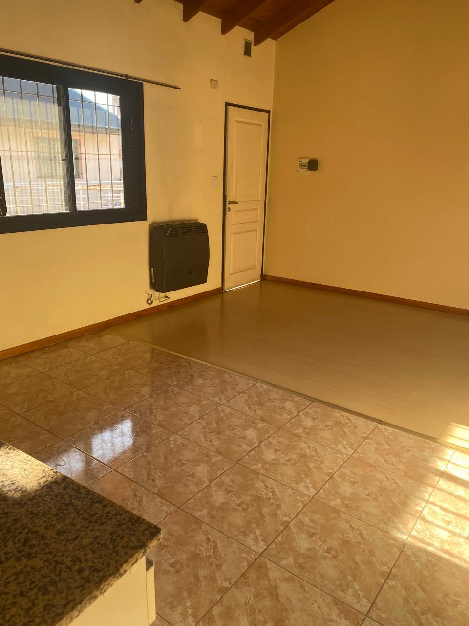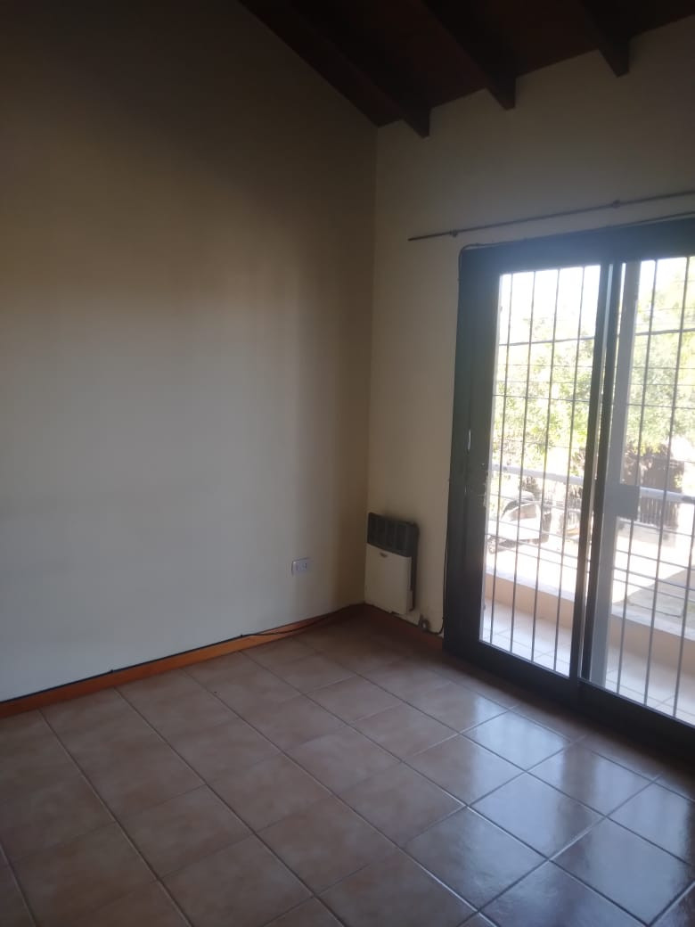 First-floor apartment with covered parking space. It has 1 bedroom with a built-in wardrobe, a full bathroom, a living-dining area, and an integrated kitchen with base cabinets, sink, overhead cabinets and a cooker. The unit has split air-conditioning and access is by stairs.